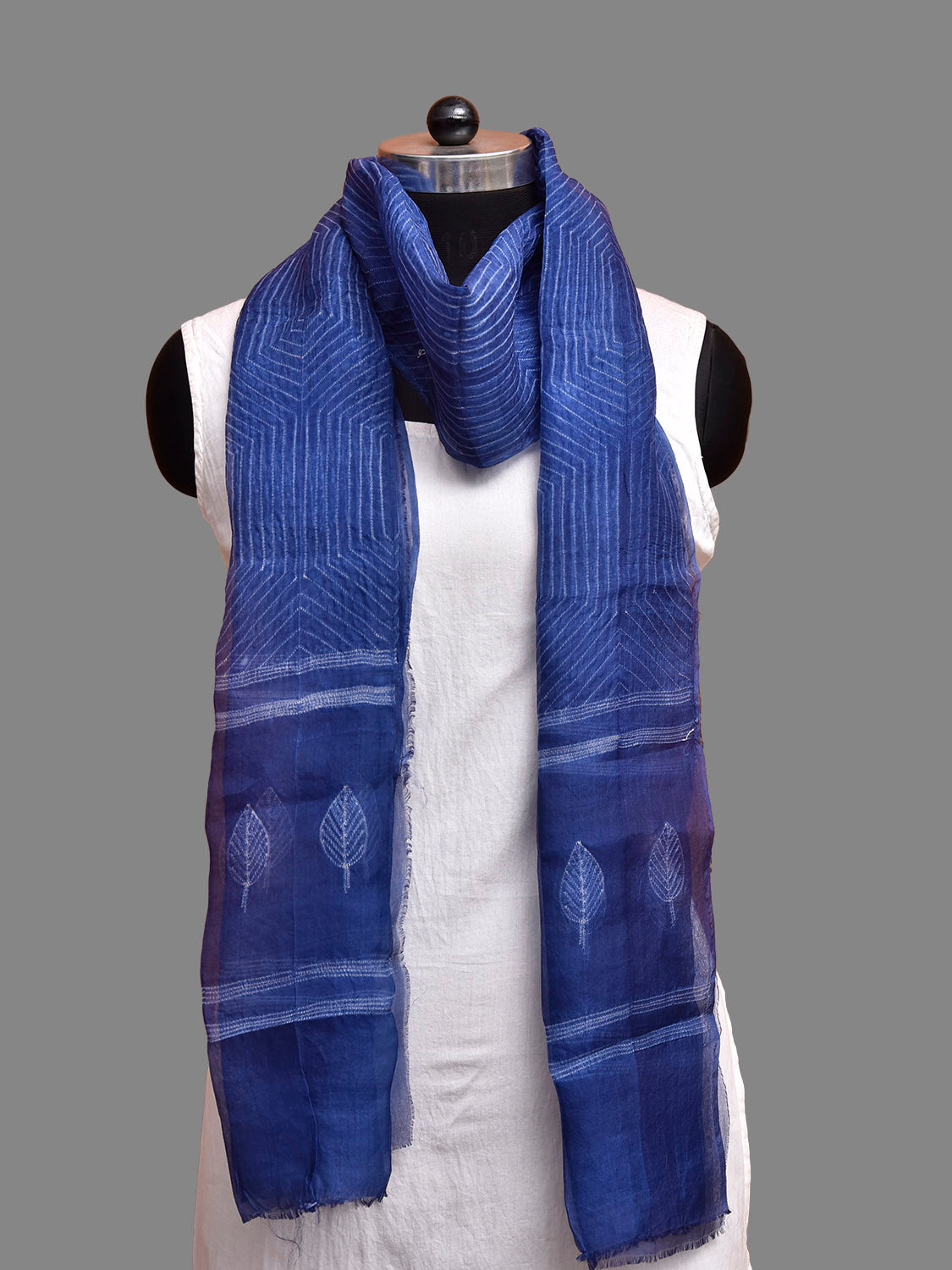 Blue Shibori Cotton Organza with Hexagonal Design. Shibori is Japanese a Technique of tie and dye, and resist some parts by clamping or stitching the fabric. The result produced are unique geometric patterns & any other eloborate design. For fabric care we advise dry clean.