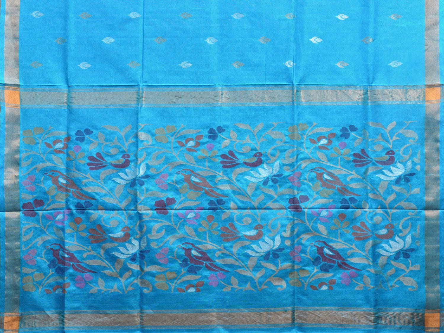 Blue Uppada Silk Handloom Saree with Floral Pallu Design. Uppada sarees are known for light weight sarees with jamdani weaving technique. With so many traditional designs it is considered for the very special occasion wear. We advice dry clean for fabric care.