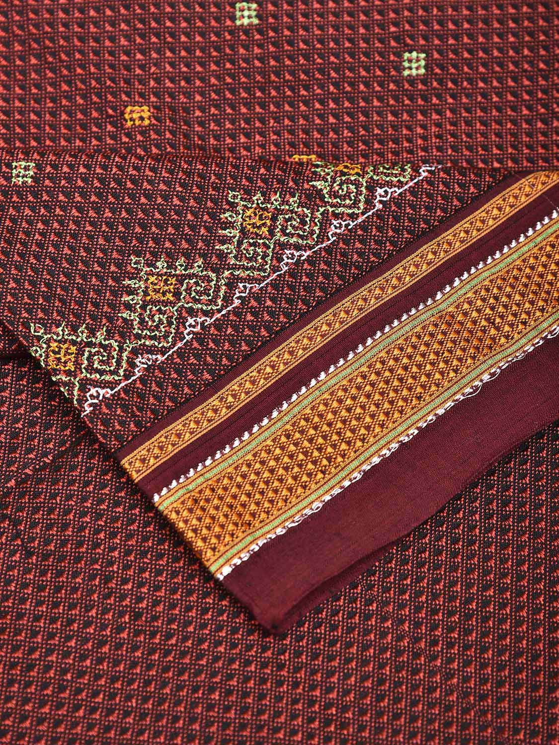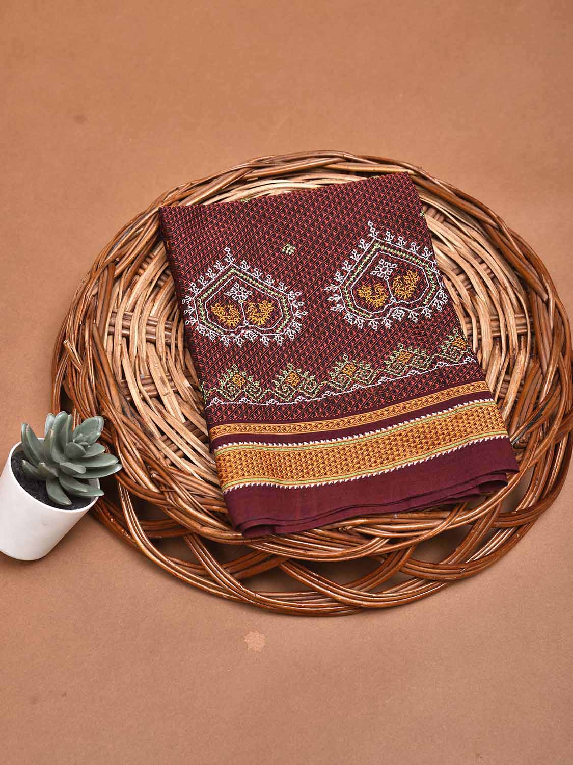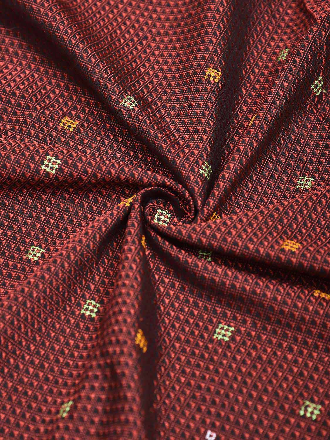 Brown and Dark Red Kasuti Jacquard Viscose Blouse with Peacocks Design Length 1mt Width 36 Inches. Beautiful Pattern Blouse Fabric and Easy to Match to Any Suitable Saree. We Advise Gentle Handwash for Fabric Care.