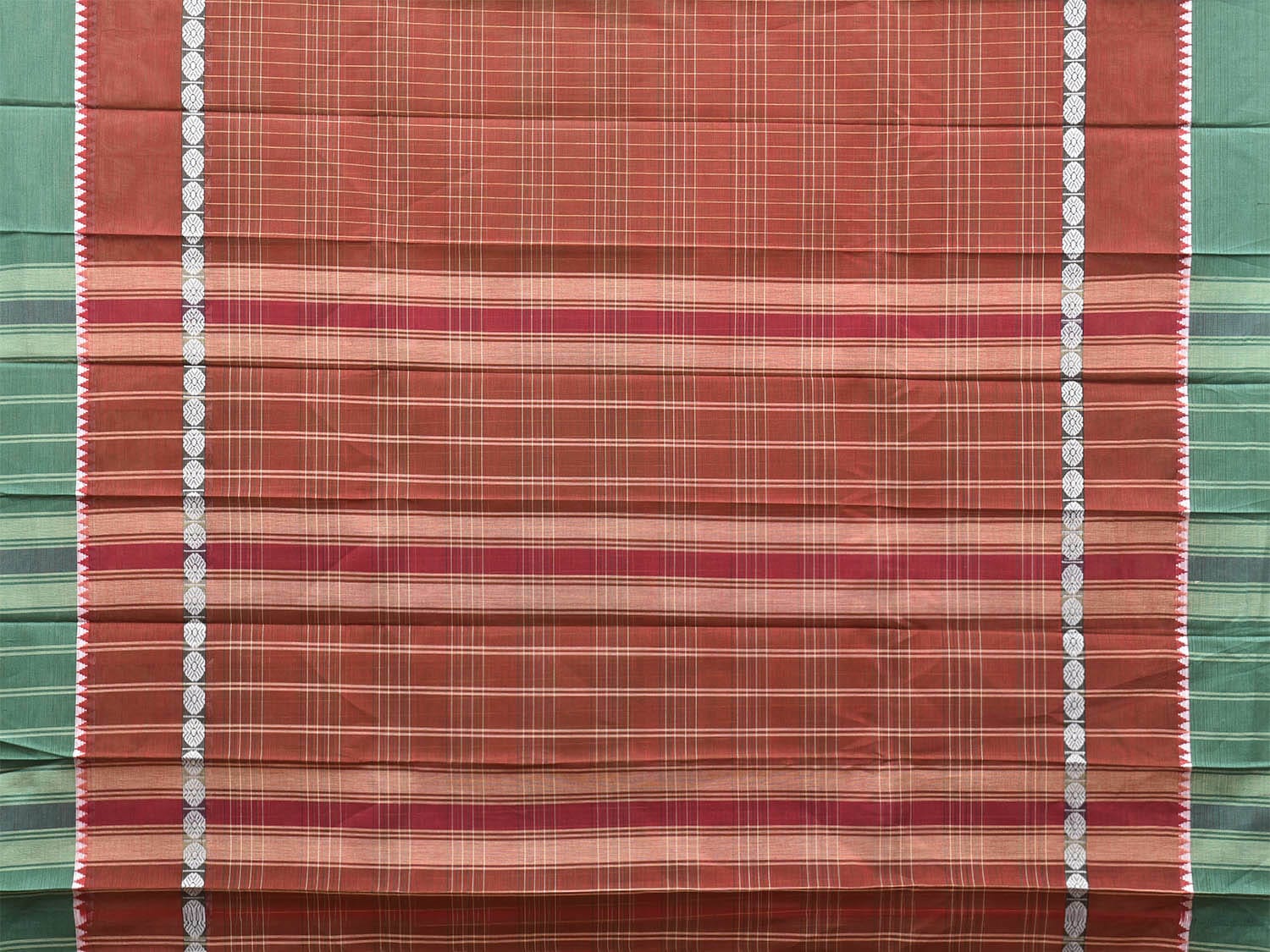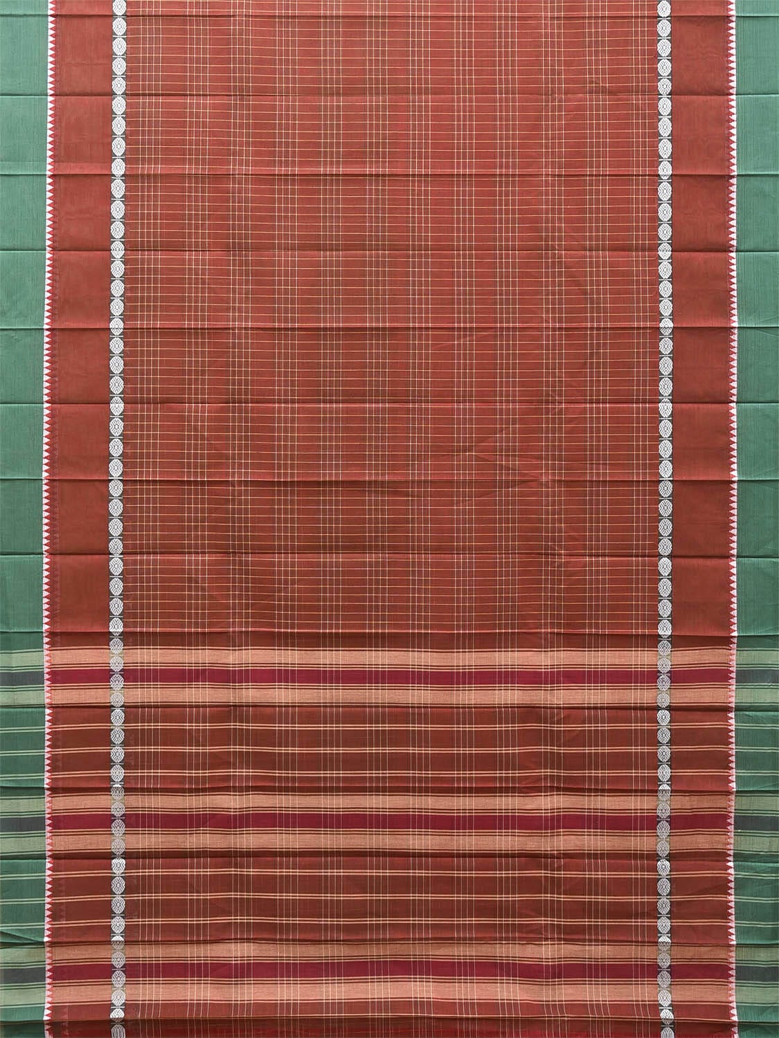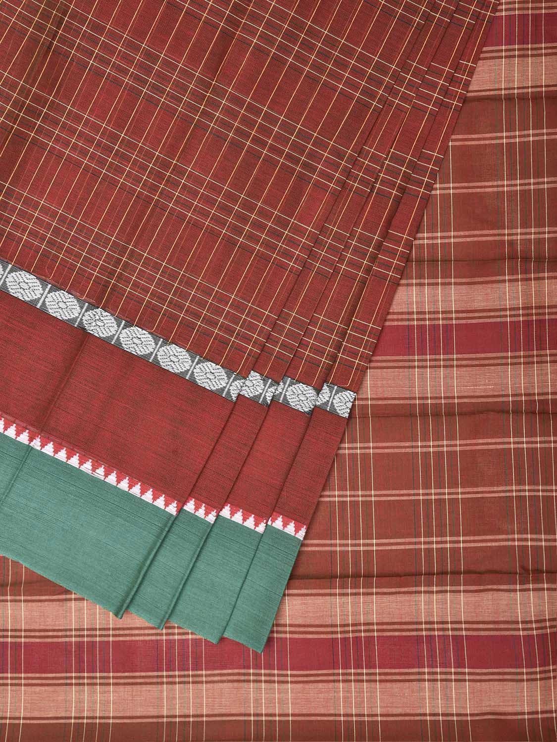 Brown and Green Narayanpet Cotton Saree with Checks and Big Border Design No Blouse. For fabric care we advise gentle handwash separately. This saree has no blouse.