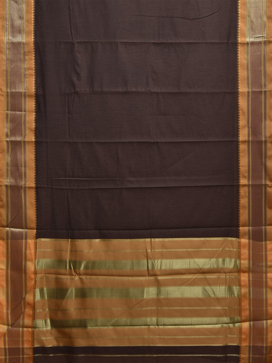 Brown and Mustard Bamboo Cotton Plain Saree with Contrast Pallu Design No Blouse bc0928
