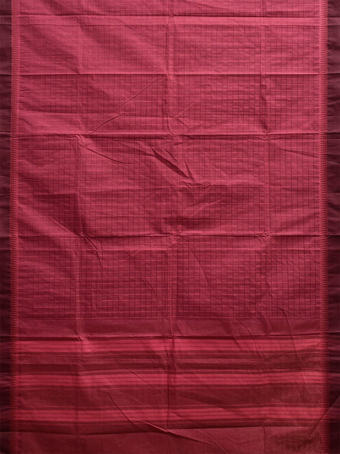 Burgundy and Maroon Kanchipuram Cotton Saree with Big Checks Design. Traditional Simple South Indian Attire Saree for any Casual Occasions. As it’s a cotton saree we advice gentle handwash separately for fabric care.