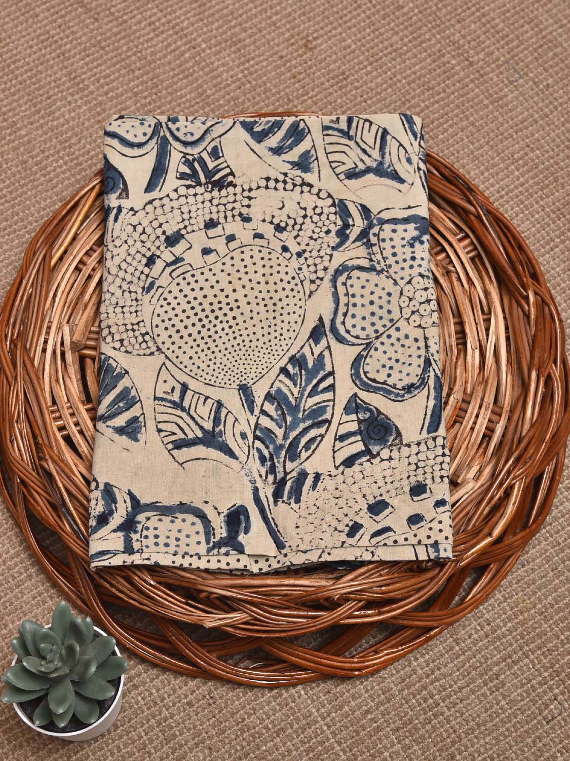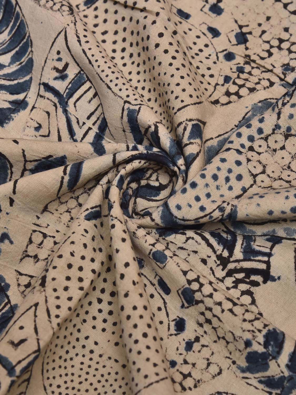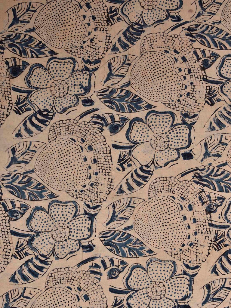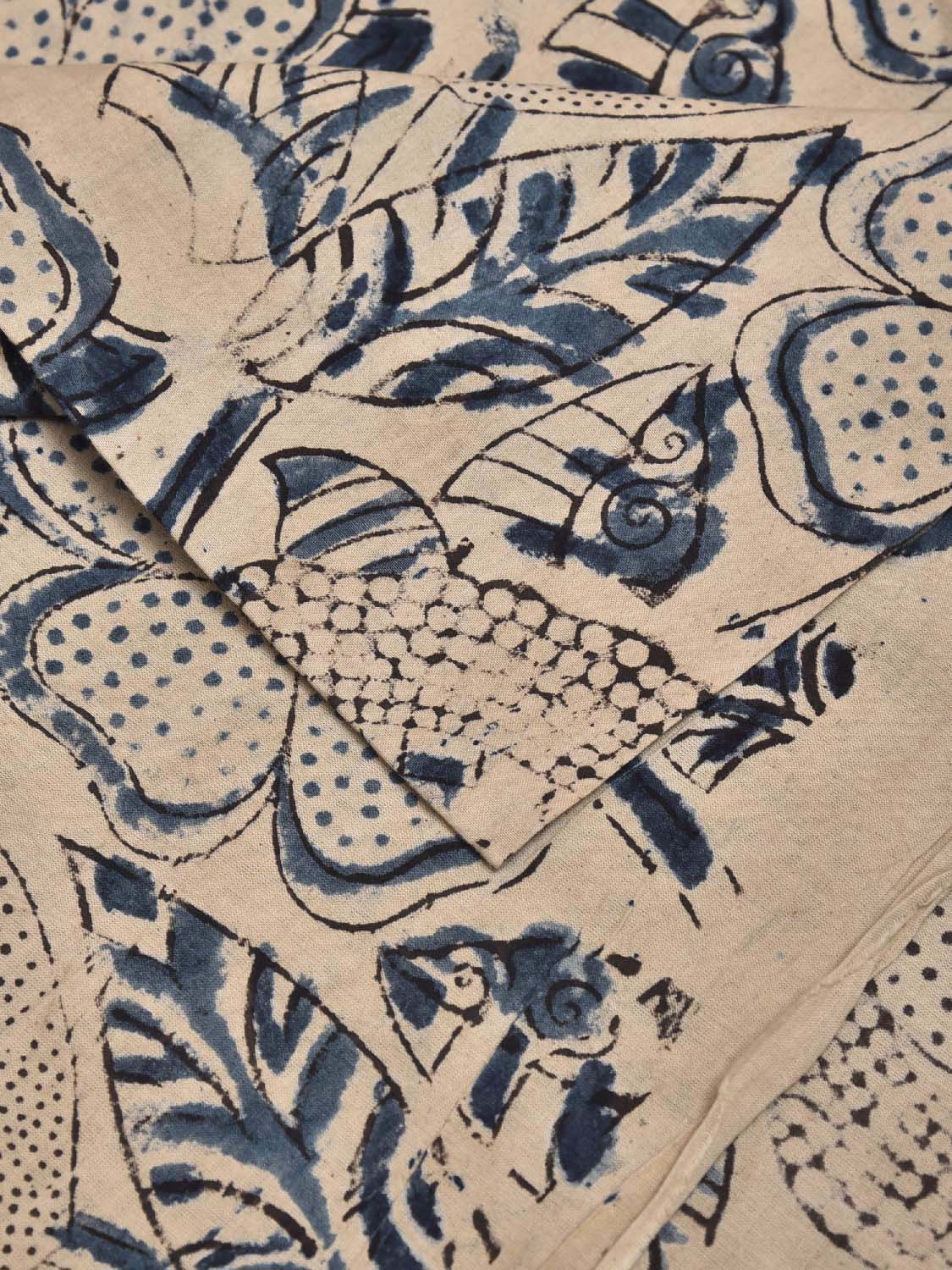 Cream and Blue Kalamkari Block Print Cotton Blouse with Floral Design Length 1mt Width 44 Inches. Beautiful Pattern Blouse Fabric and Easy to Match to Any Suitable Saree. For fabric care we advise gentle handwash separately as they may bleed in the initial wash.