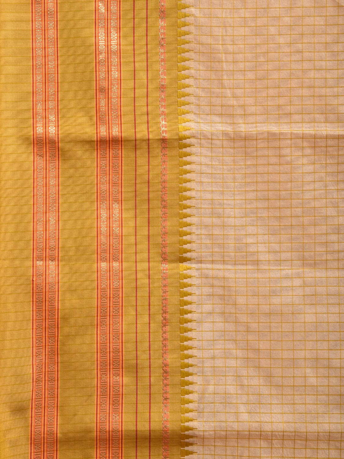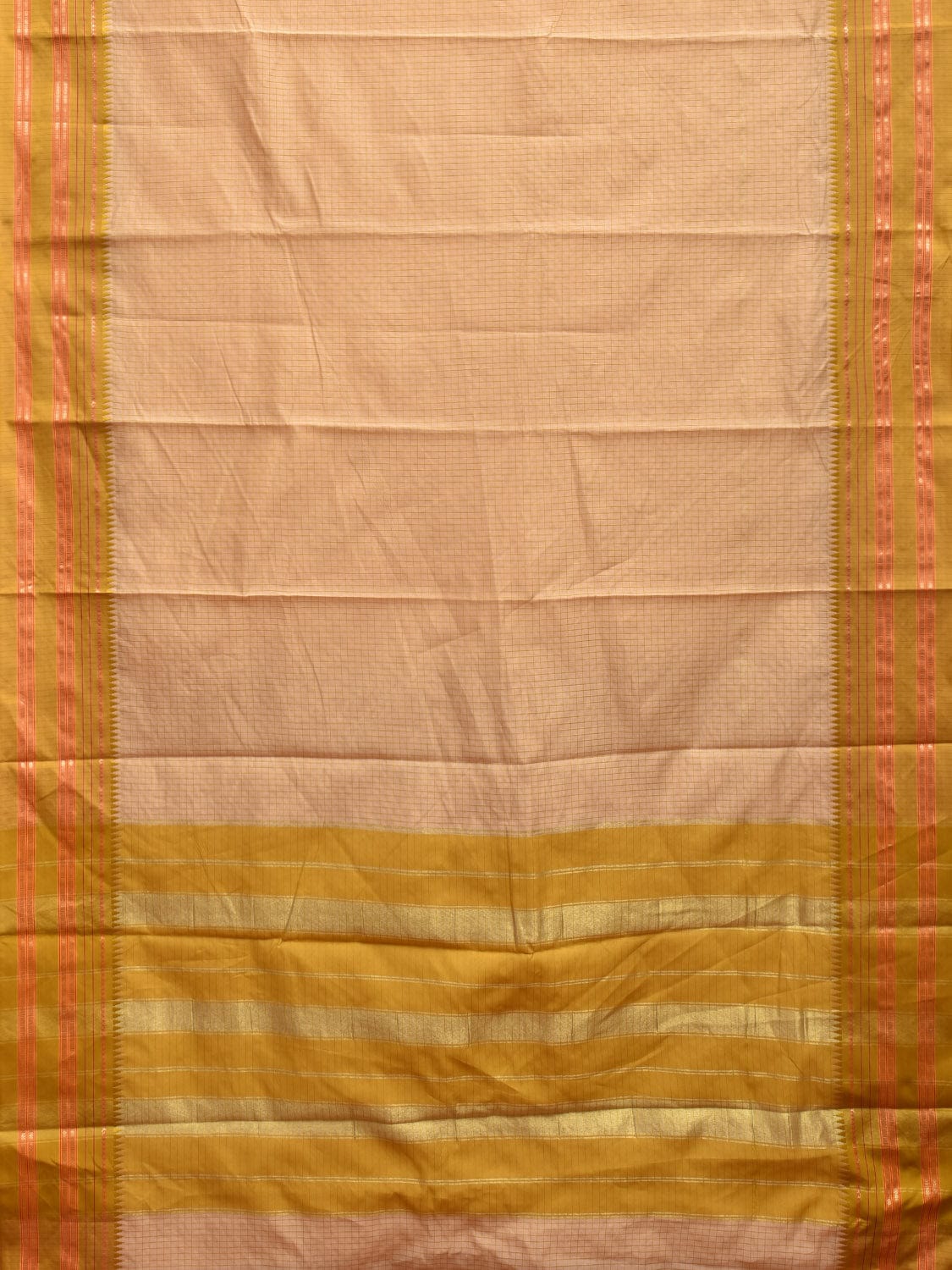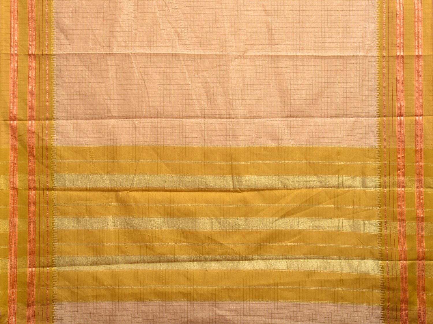 Cream and Green Bamboo Cotton Viscose Silk Saree with Checks Design No Blouse. This is a blend of bamboo and cotton fibers along with viscose silk, they have characteristics of both bamboo and cotton combined into one fabric. We Advise Gentle Handwash for Fabric Care. This saree has no blouse.