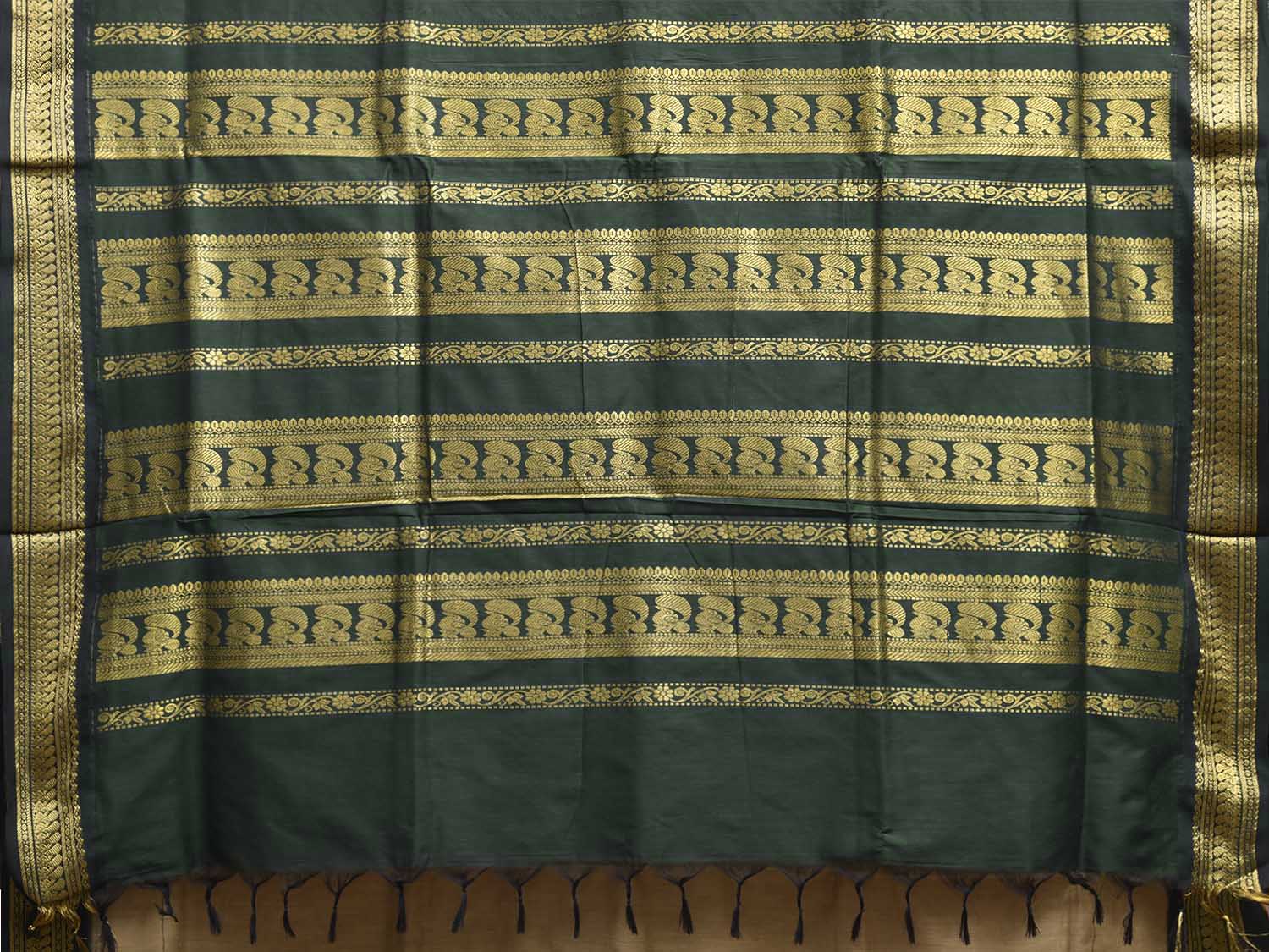 Cream and Green Gadwal Cotton Viscose Saree with Border and Pallu Design. Gadwal Sarees are known for their traditional design of border and pallu made of silk and body being either cotton or silk. They are known as Sico sarees for border and pallu being silk and body being cotton. We advice dry clean for fabric care.