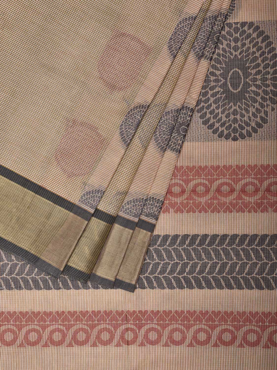 Cream and Green Venkatagiri Cotton Saree with Body Buta and Pallu Design. Venkatagiri sarees are known for very fine cotton hand woven cotton saree. They are light weight and are traditional saree made in Andhra Pradesh. For fabric care we advice gentle handwash separately.