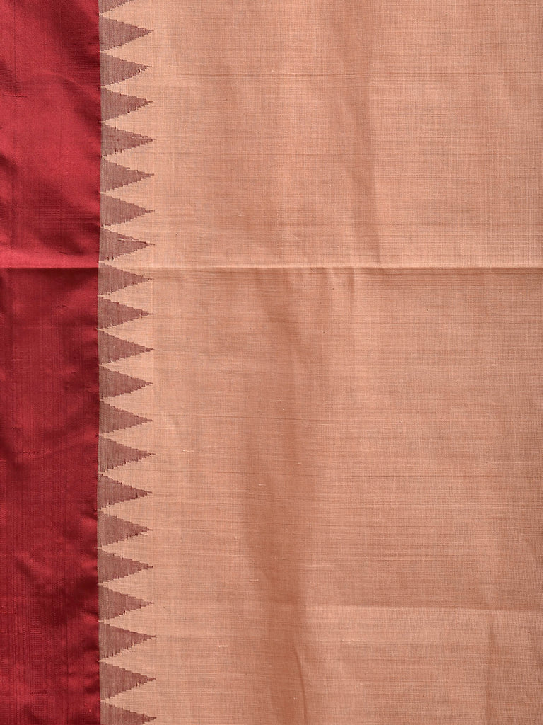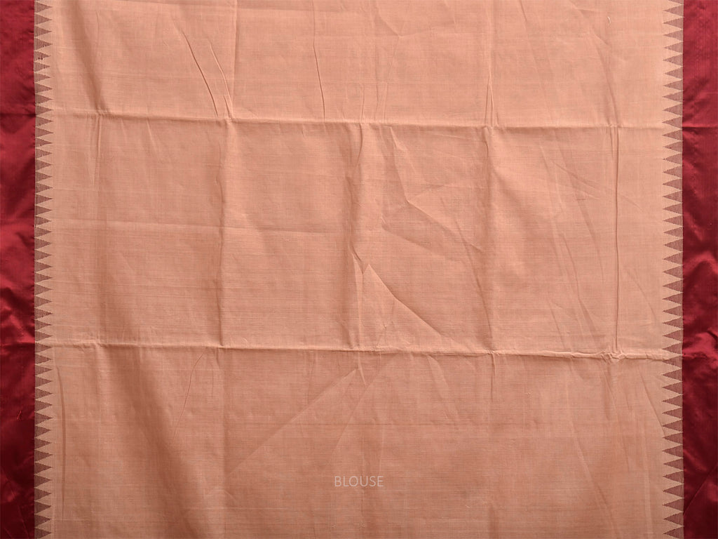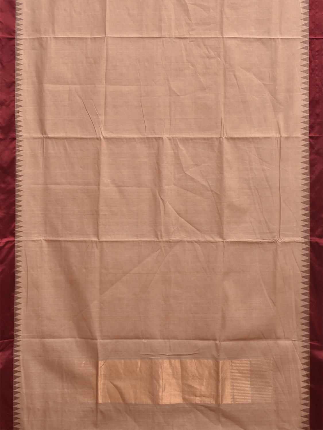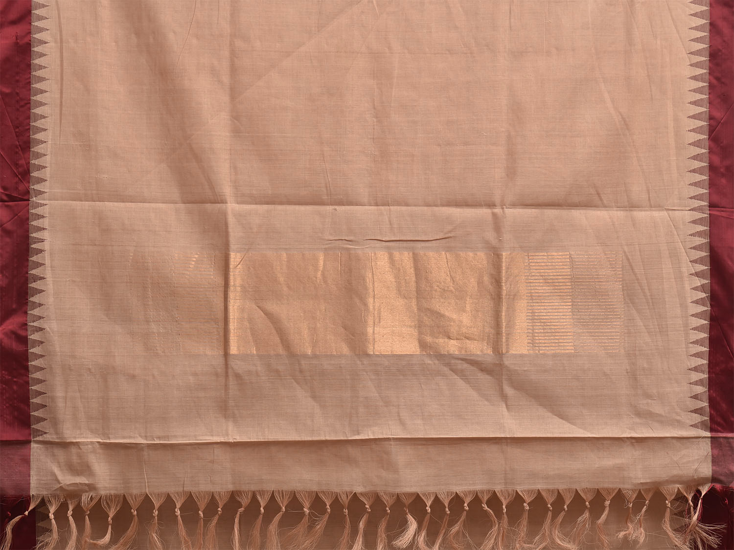 Cream and Maroon Khadi Cotton Handloom Palin Saree with Small Temple Border Design kh0732