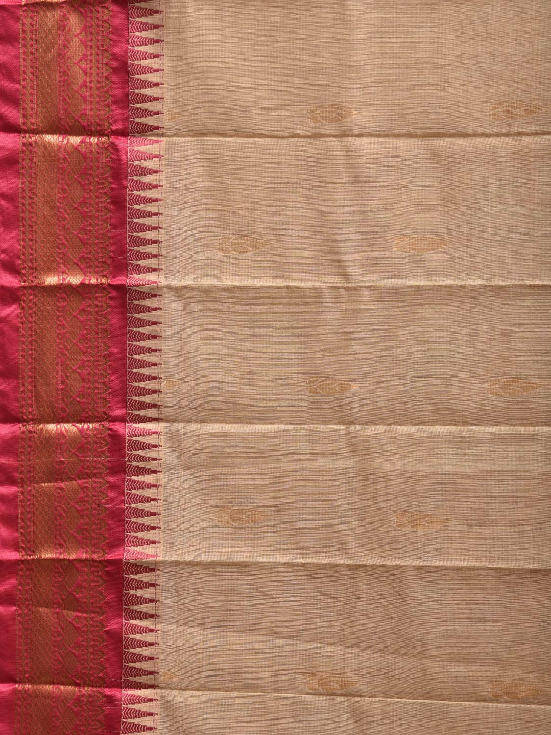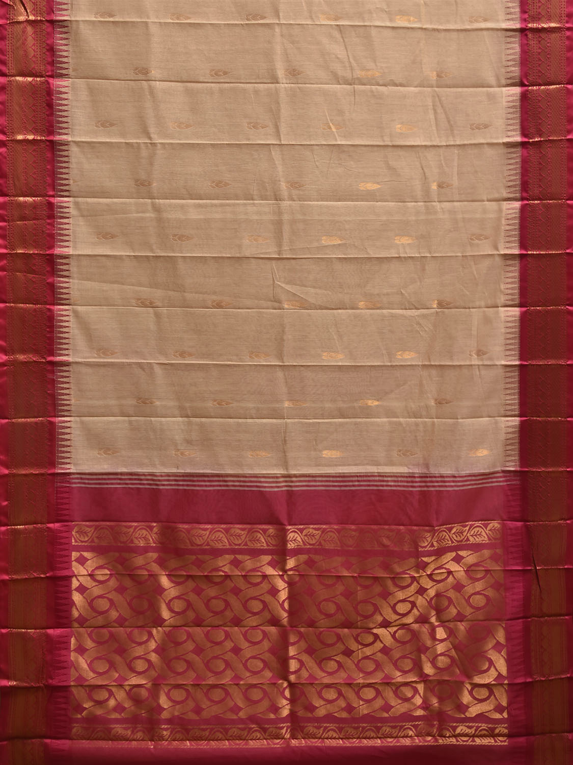 Cream and Pink Gadwal Cotton Body Saree with Checks and Viscose Border and Pallu Design No Blouse. Gadwal Sarees are known for their traditional design of border and pallu made of silk and body being either cotton or silk. They are known as Sico sarees for border and pallu being silk and body being cotton. We advice dry clean for fabric care. This saree has no blouse.