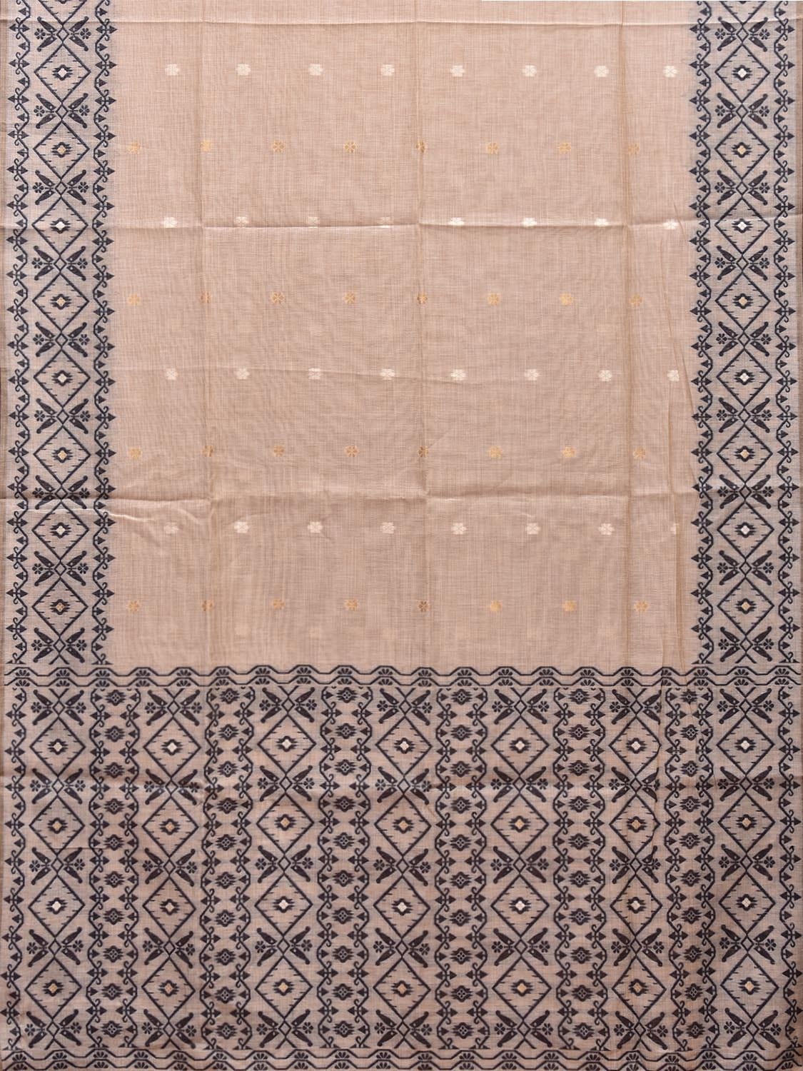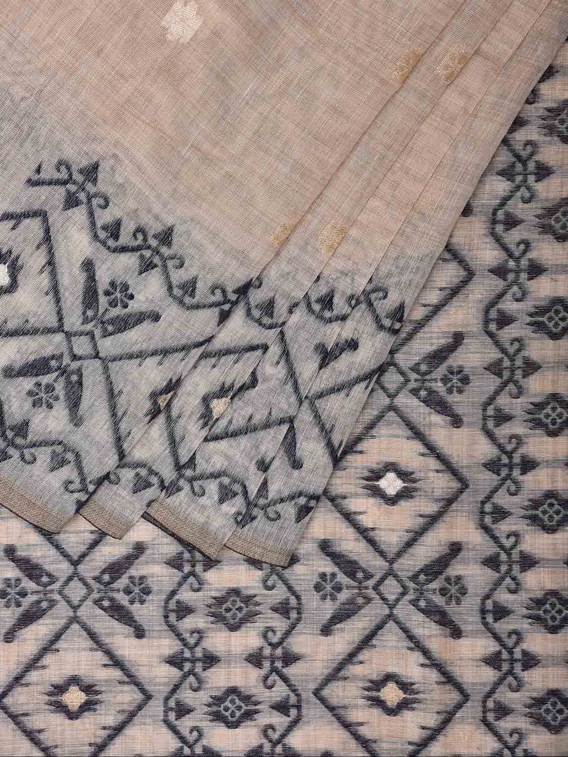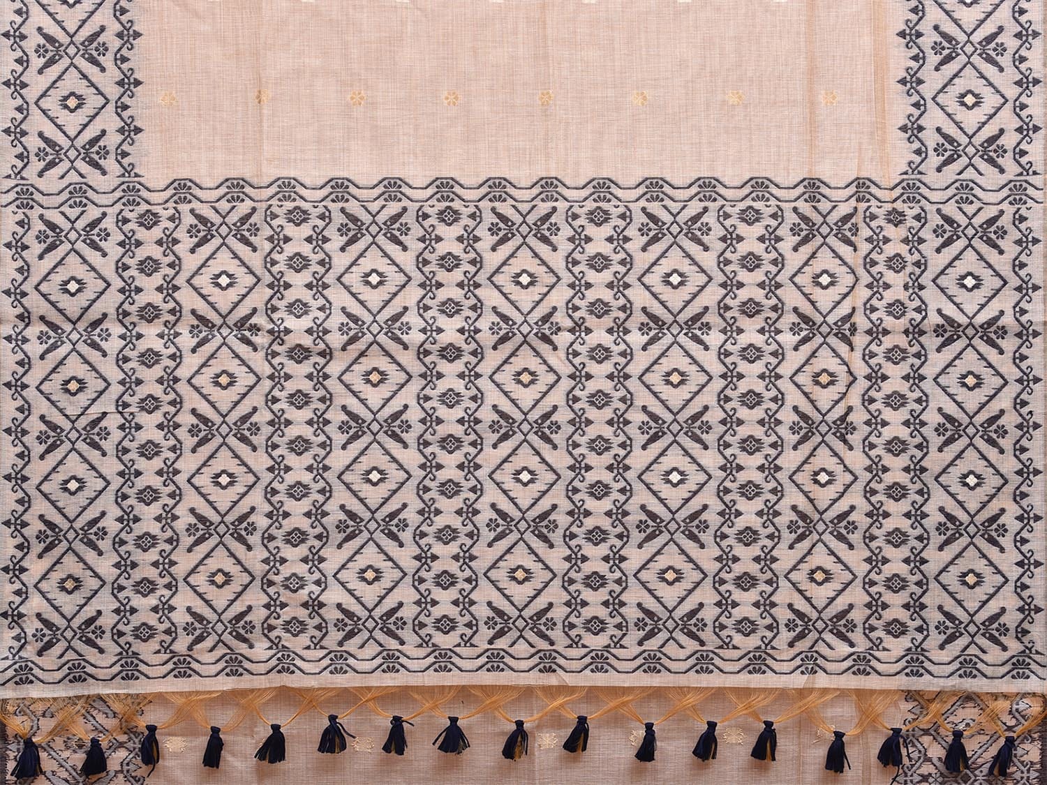 Cream Dhakai Jamdani Cotton Viscose Saree with Geometric Pallu and Border Design dj0028