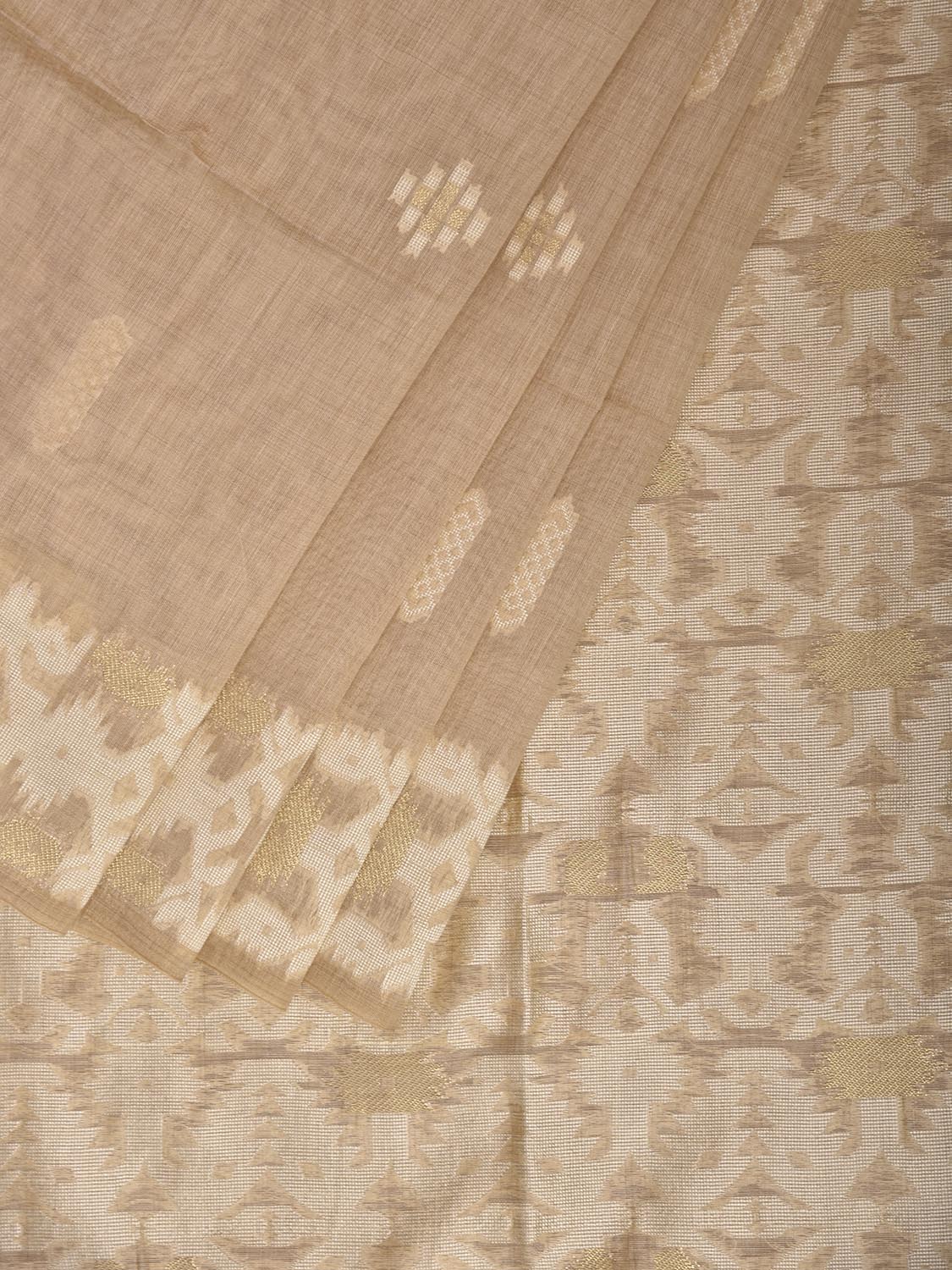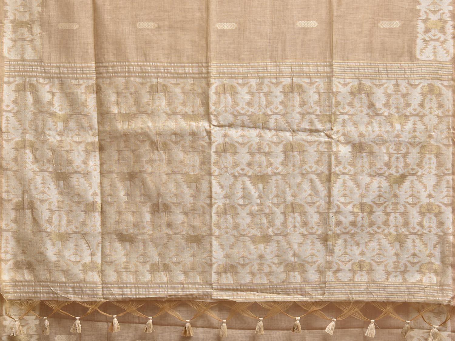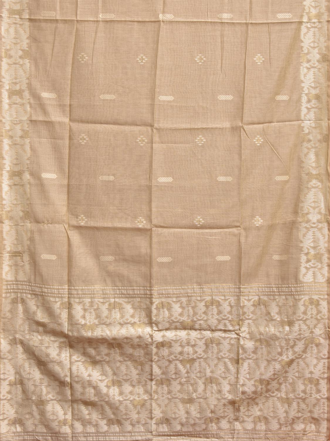 Cream Dhakai Jamdani Cotton Viscose Saree with Geometric Pallu and Border Design. These are some of the traditional Dhakai Jamdani designs, these sarees have geometric designs and sometimes floral or combination of both. We advice gentle handwash separately for fabric care.