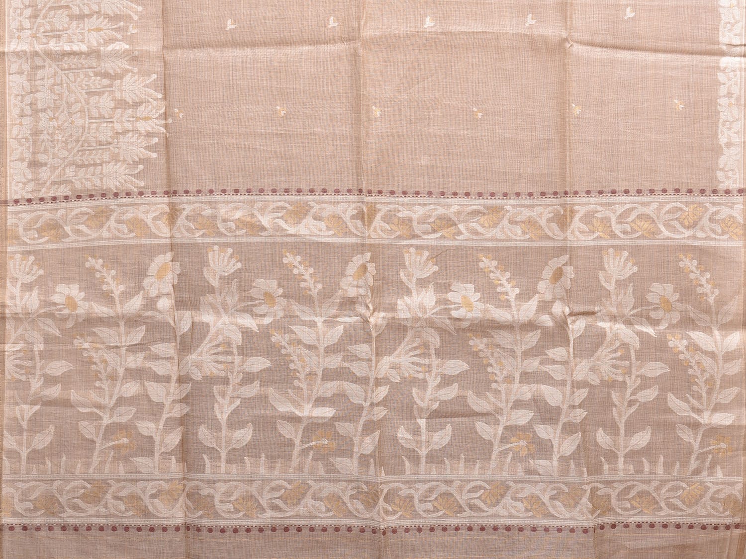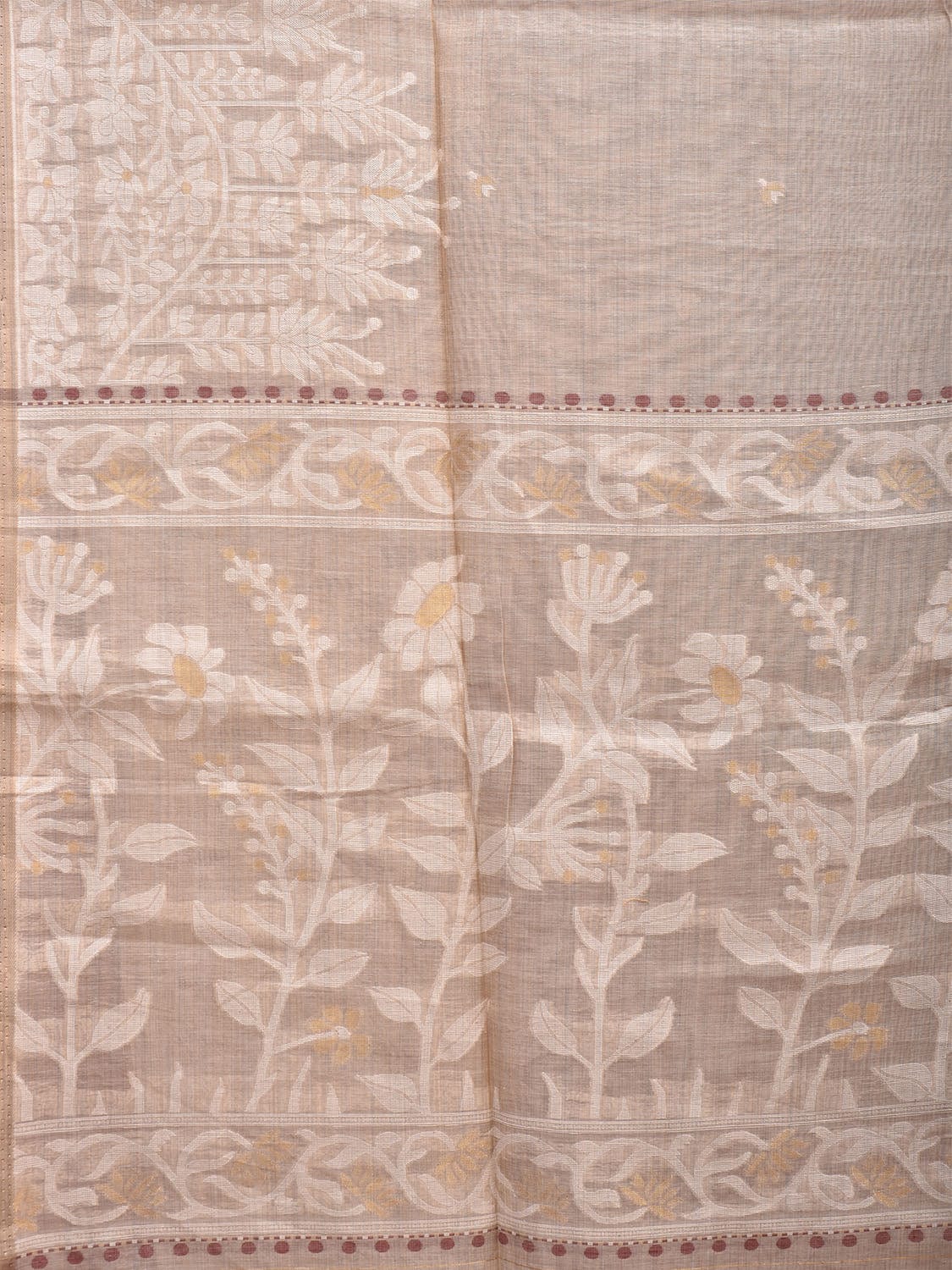 Cream Dhakai Jamdani Cotton Viscose Saree with Pallu and One Side Big Border Design. These are some of the traditional Dhakai Jamdani designs, these sarees have geometric designs and sometimes floral or combination of both. We advice dry clean for fabric care.