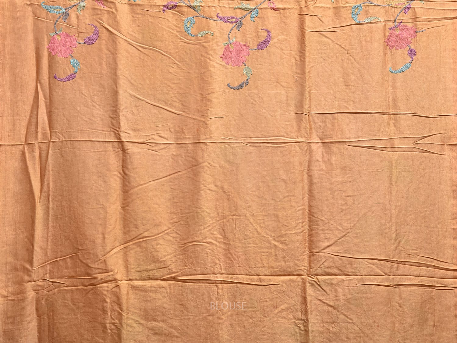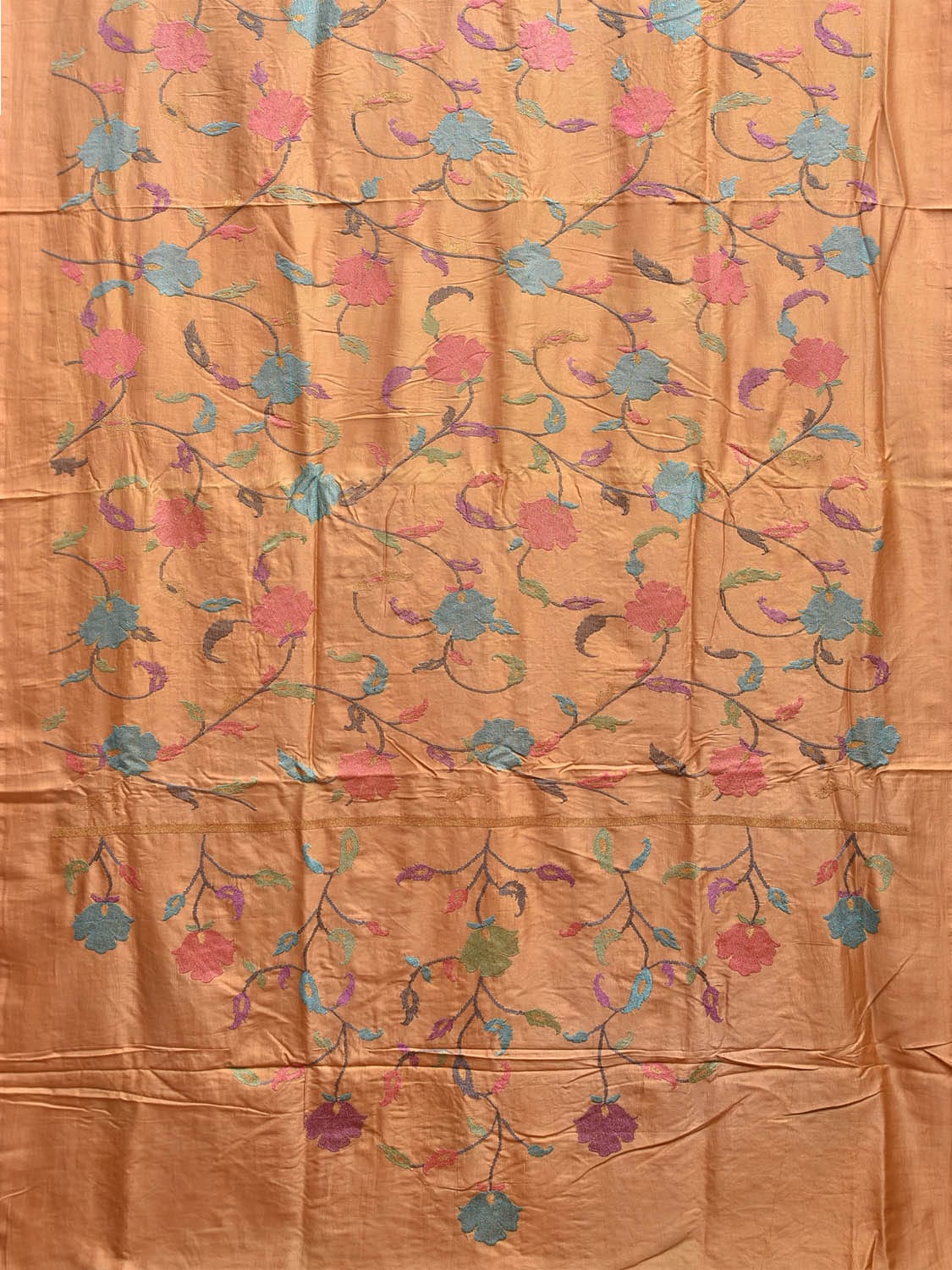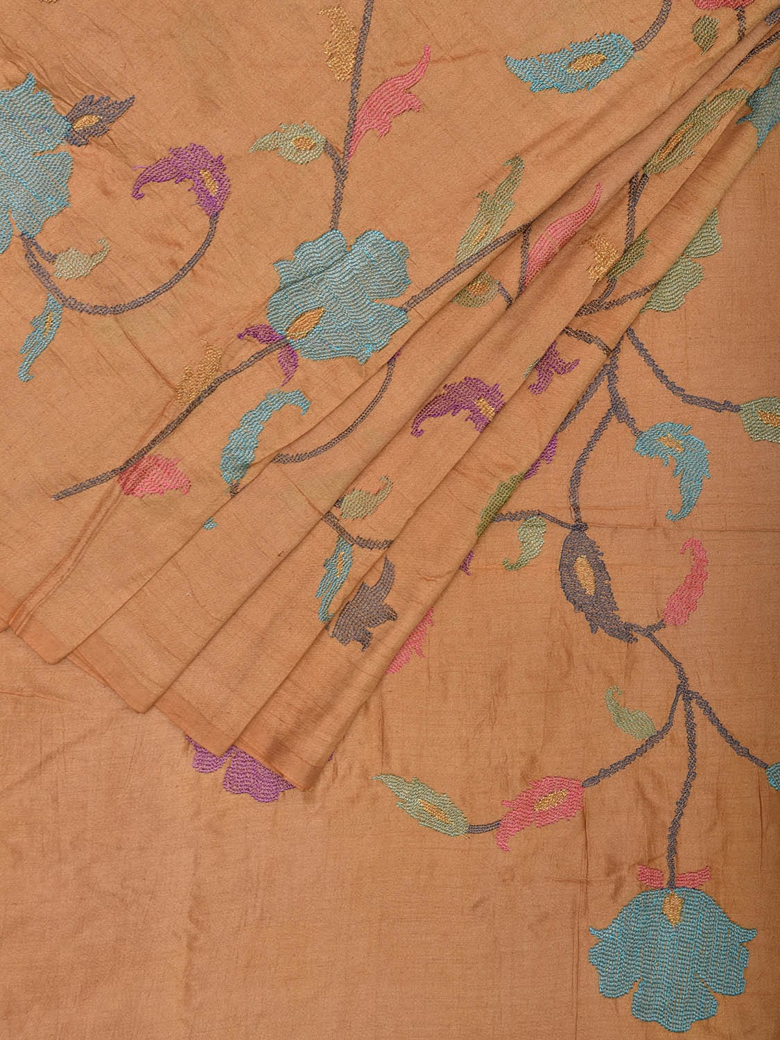 Cream Heavy Silk Handloom Saree with Floral Embroidary Work Design. We advice dry clean for fabric care.