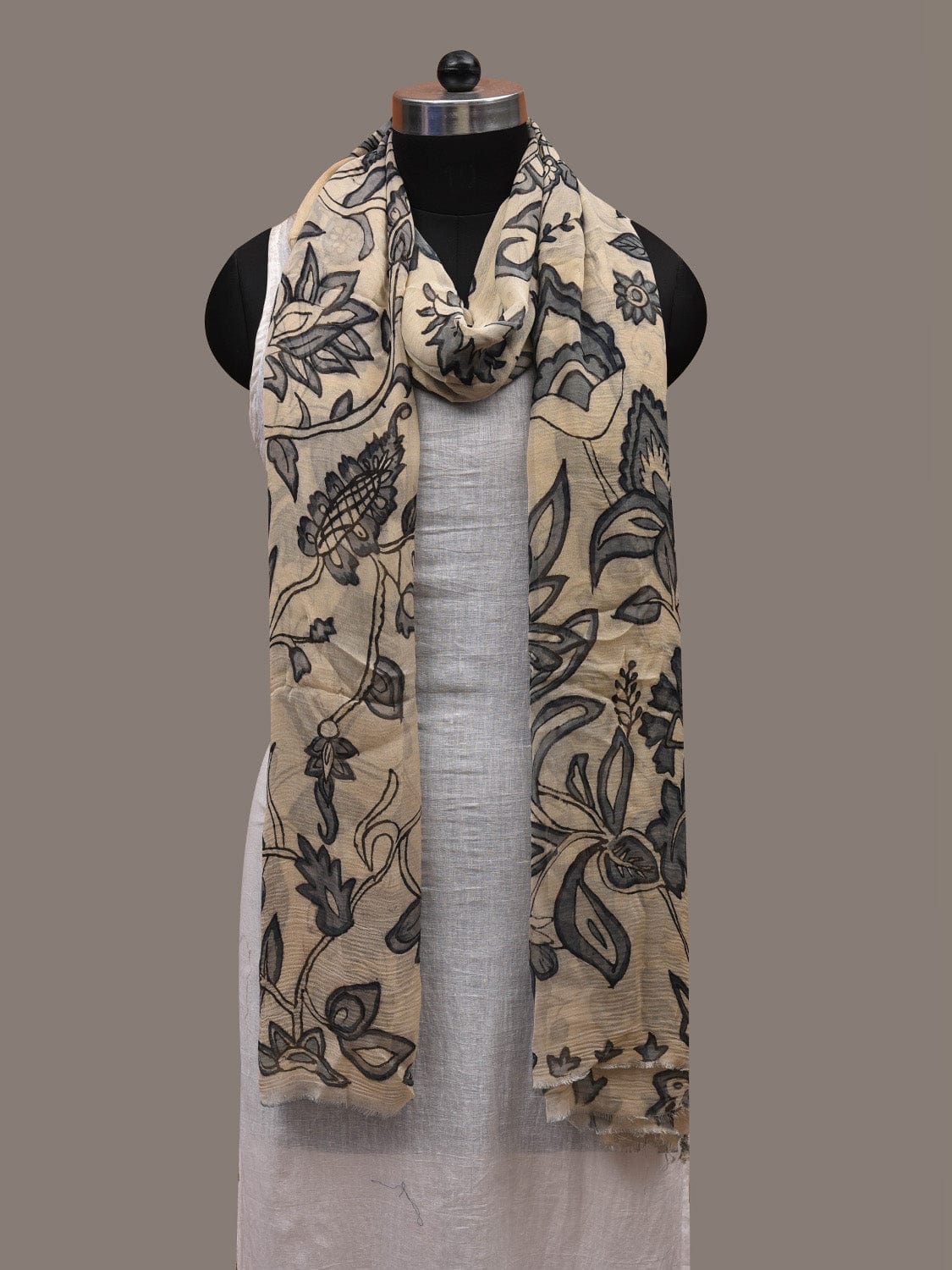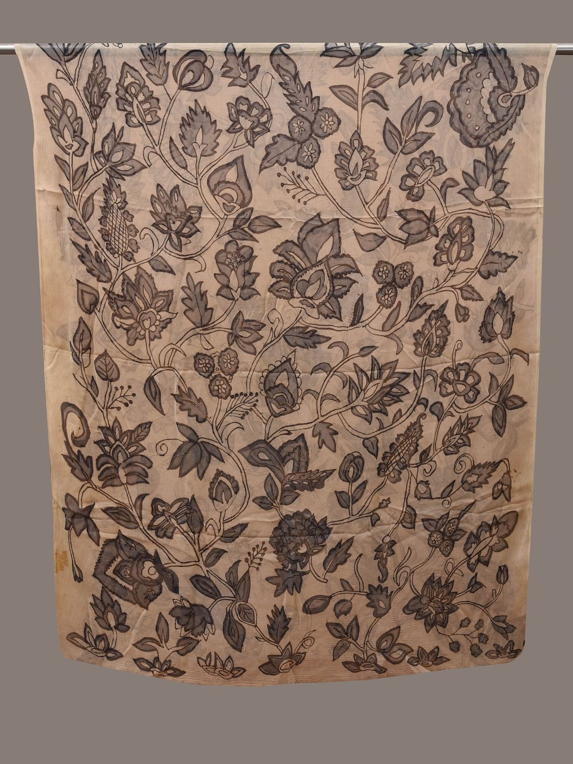 Cream Kalamkari Hand Painted Chiffon Dupatta with Floral Design. This hand painted kalamkari is done using natural dyes. As they are natural colors they bleed with initial washes, so we suggest Dry clean.