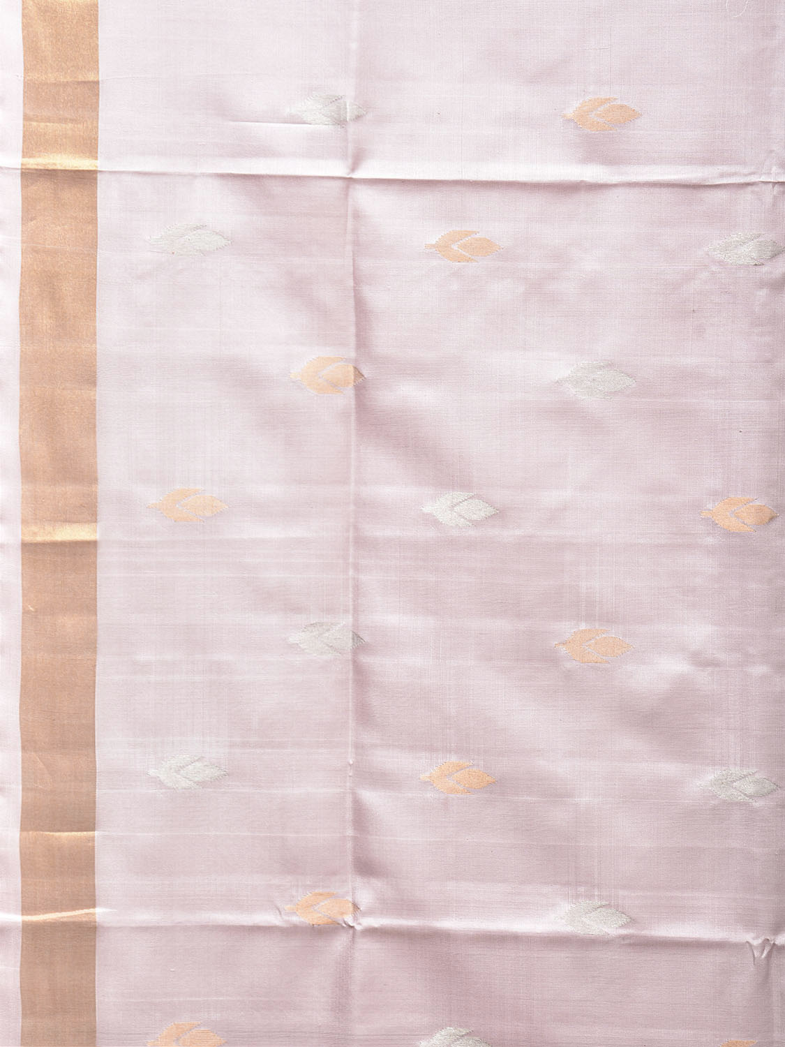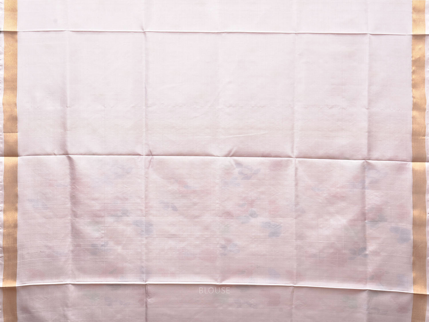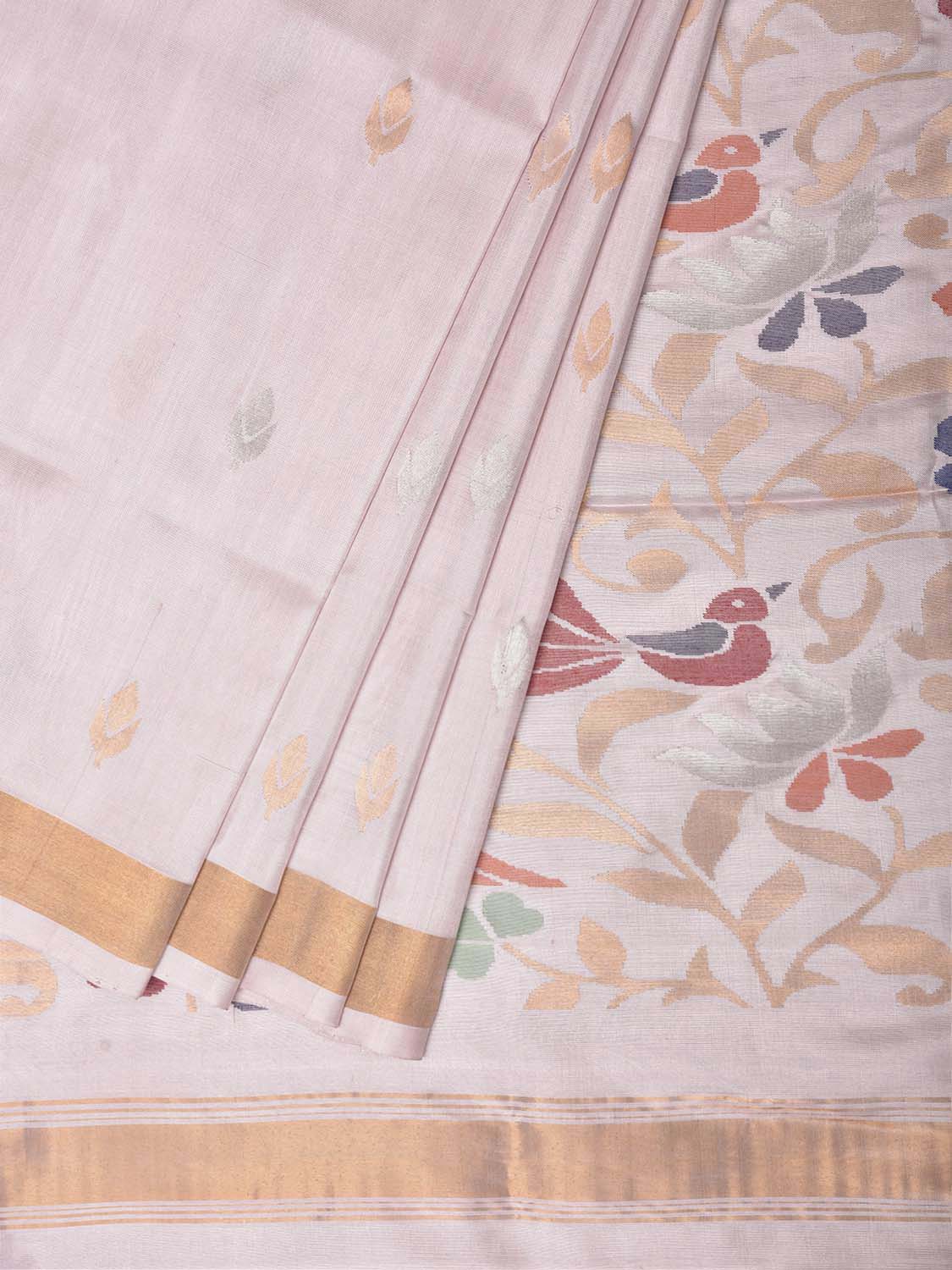 Cream Pink Uppada Pure Silk Handloom Saree with Floral and Birds Pallu Design