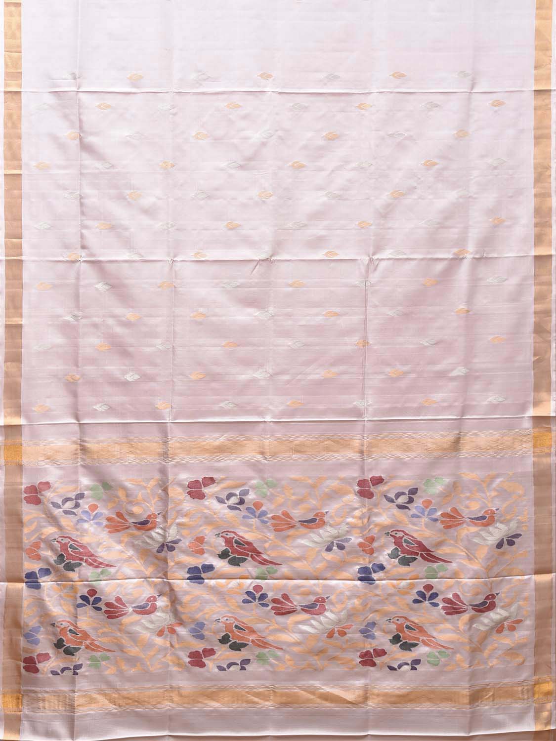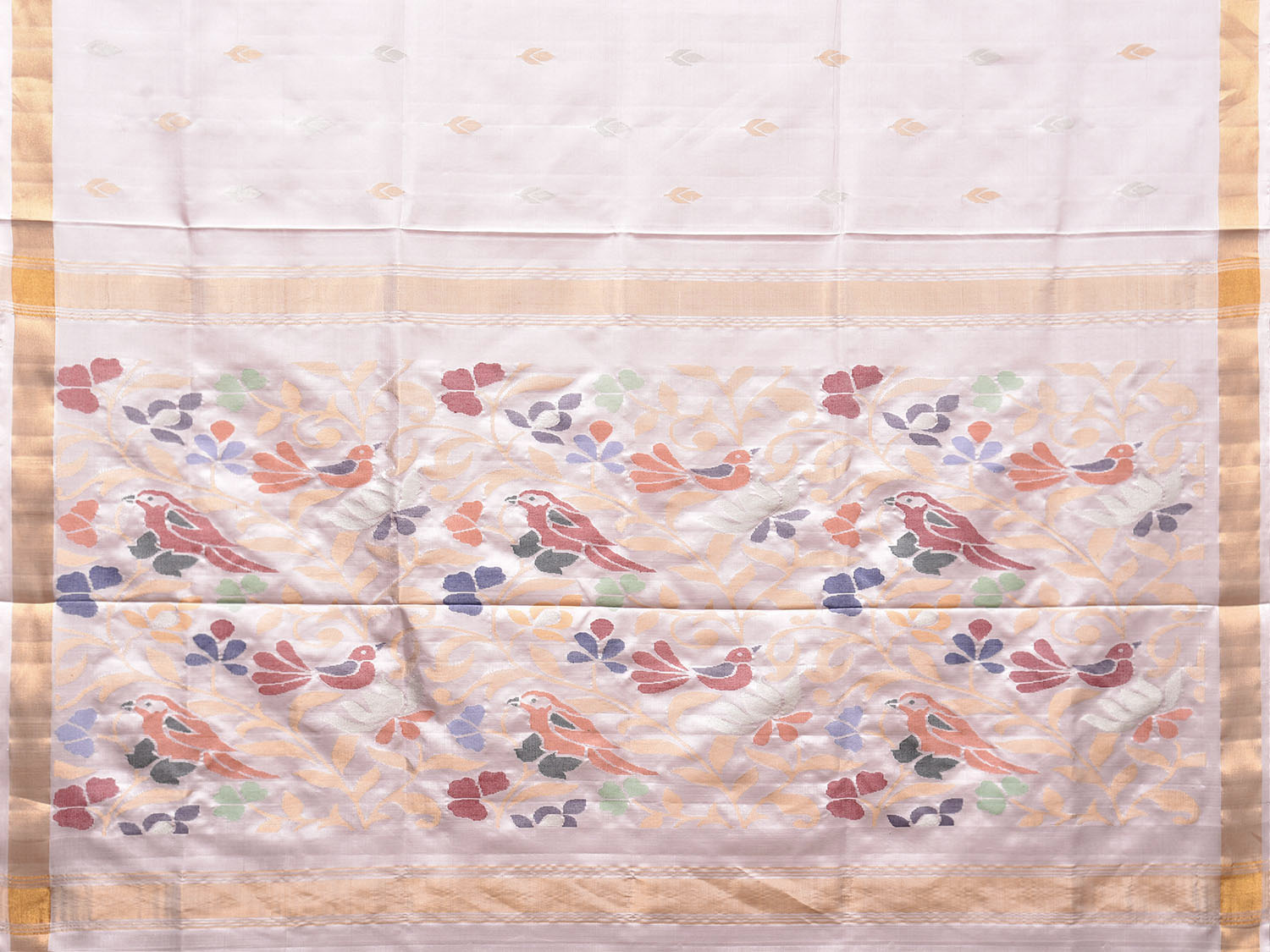 Cream Pink Uppada Pure Silk Handloom Saree with Floral and Birds Pallu Design u2575