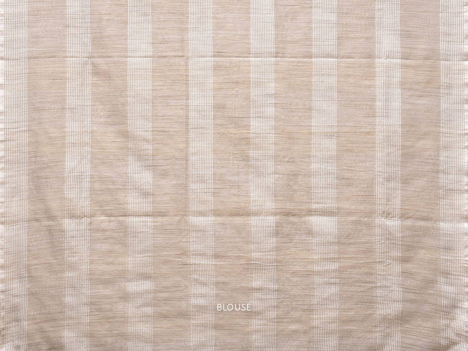 Cream Tussar Viscose Saree with Strips Body and Pallu Design o0764