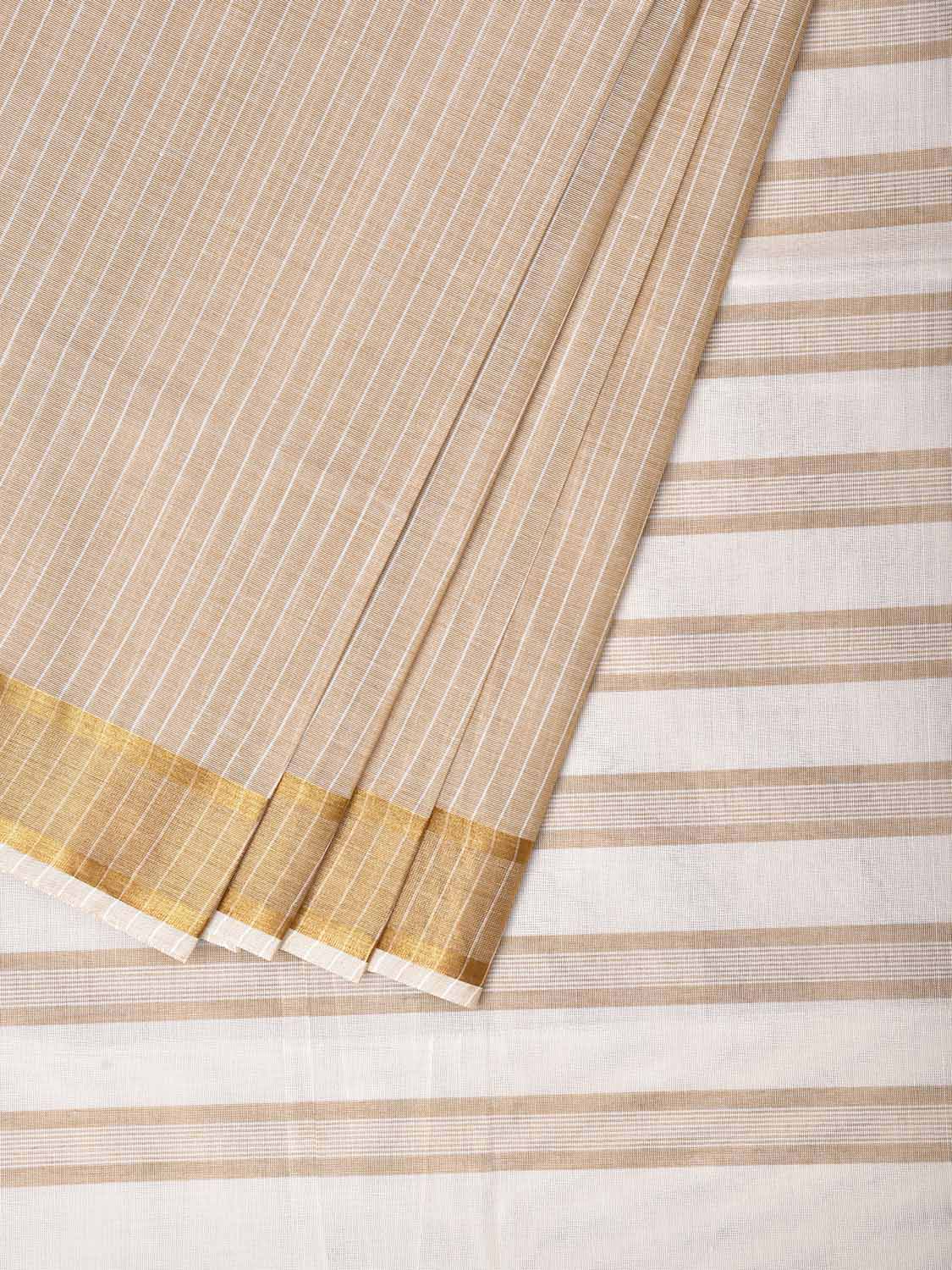 Cream Venkatagiri Cotton Saree with Strips Body and Pallu Design. Venkatagiri sarees are known for very fine cotton hand woven cotton saree. They are light weight and are traditional saree made in Andhra Pradesh. For fabric care we advice gentle handwash separately.