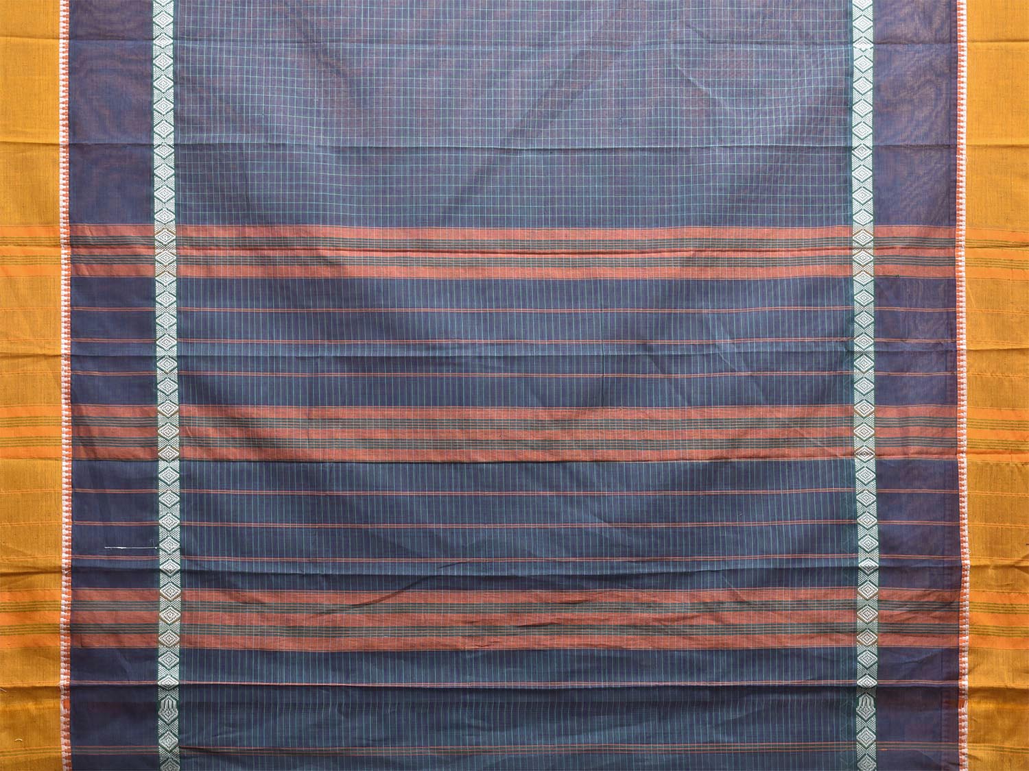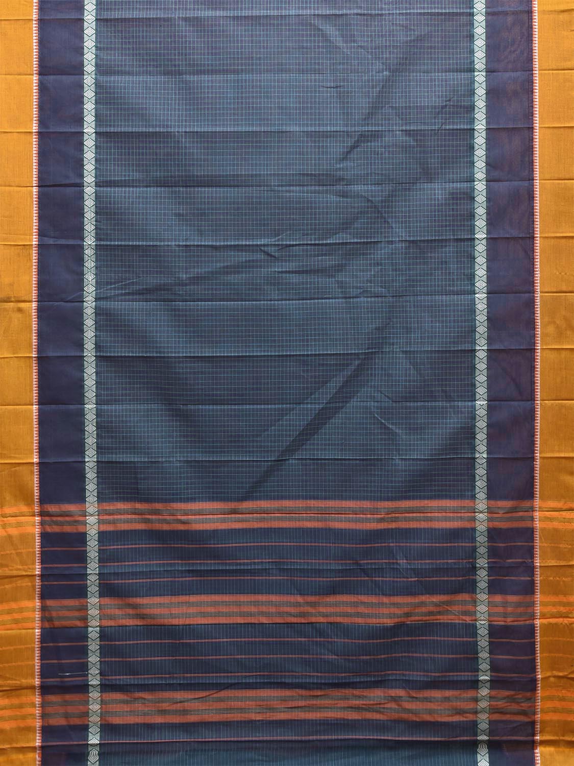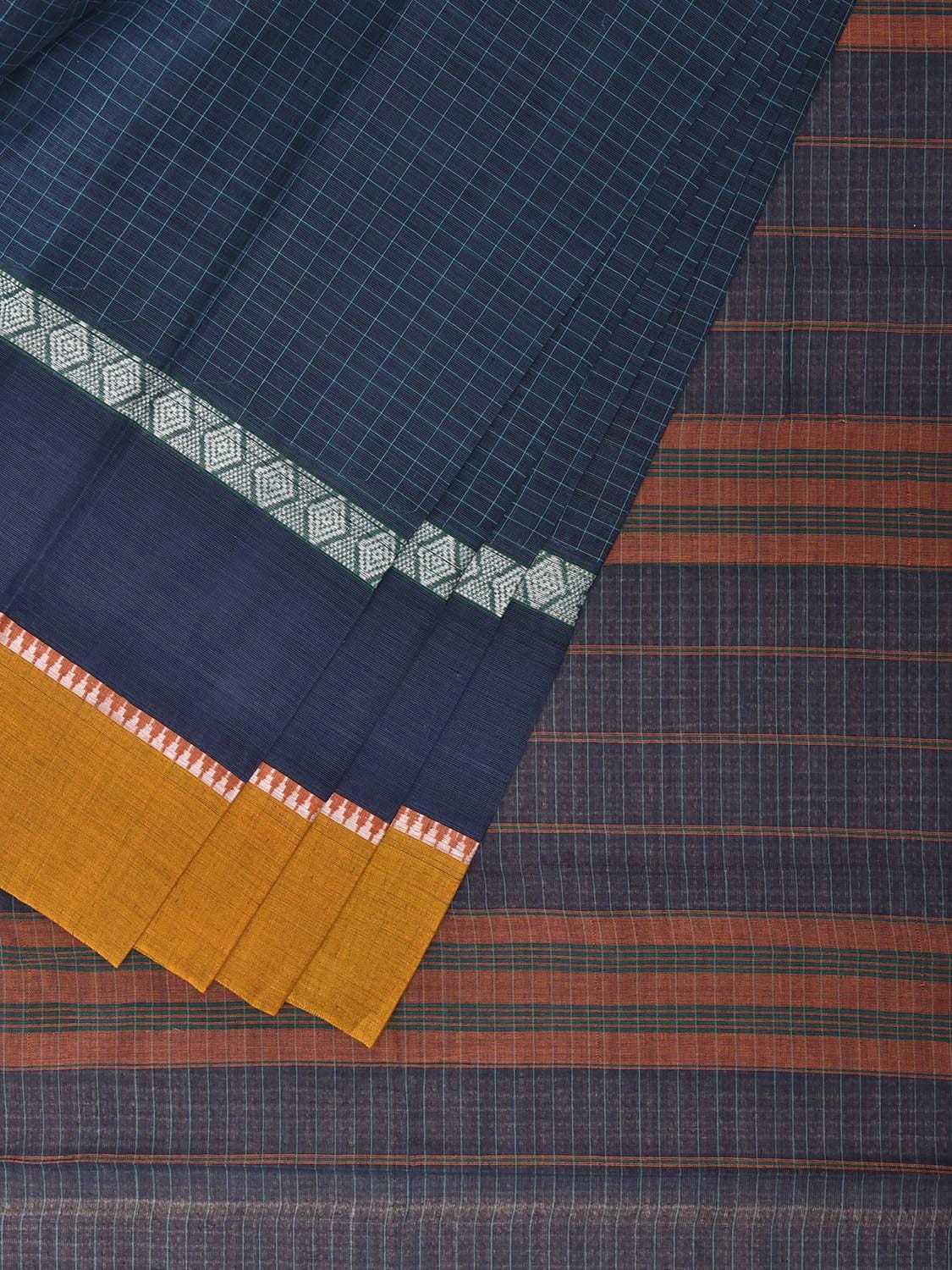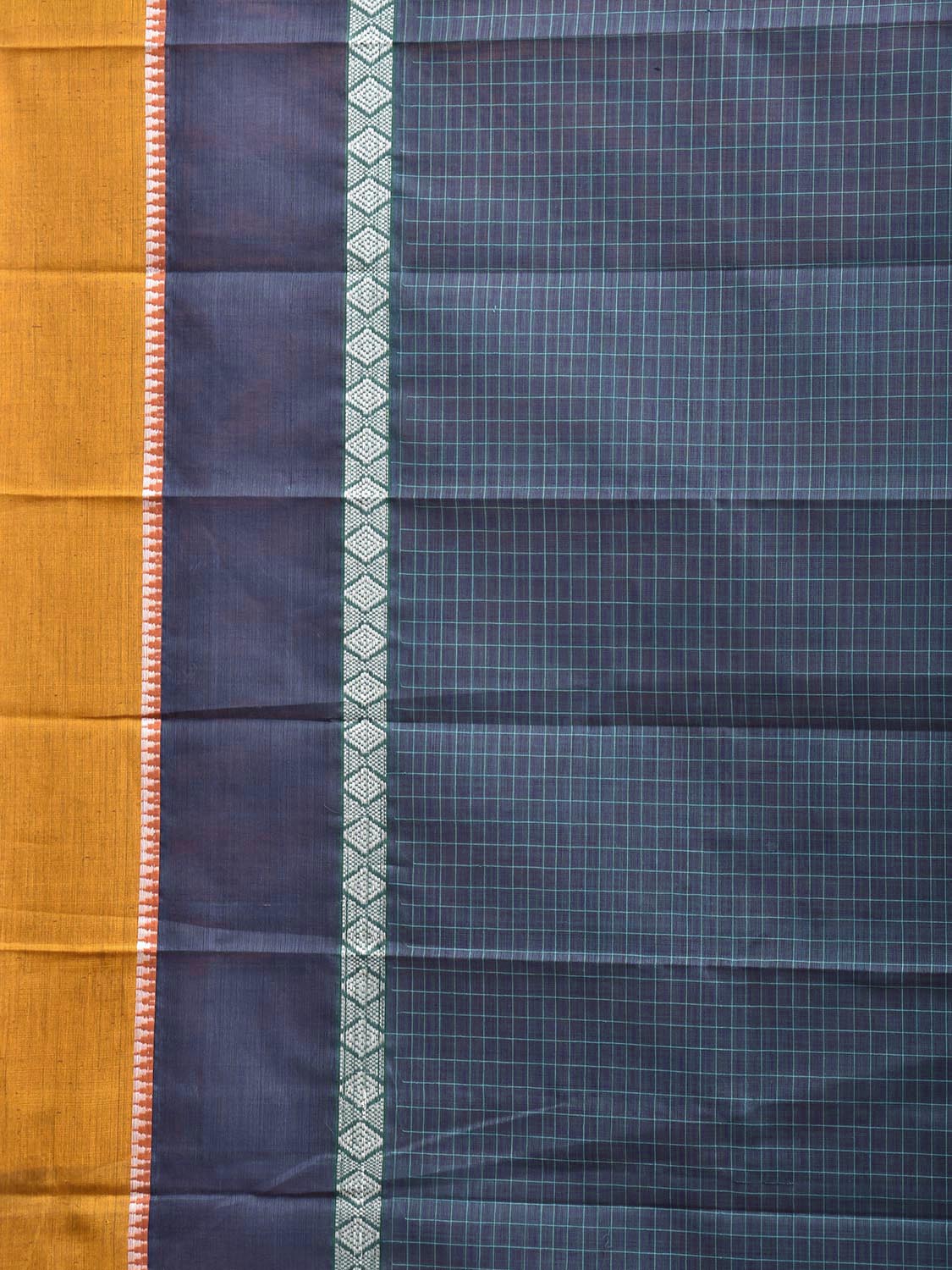 Dark Blue and Yellow Narayanpet Cotton Handloom Saree with Big Border Design No Blouse.