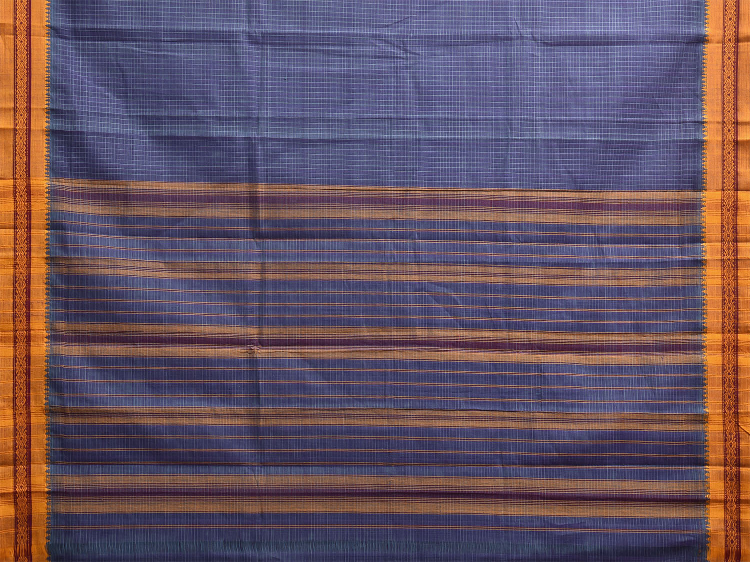 Dark Blue and Yellow Narayanpet Cotton Handloom Saree with Checks Design No Blouse. This saree has no blouse.