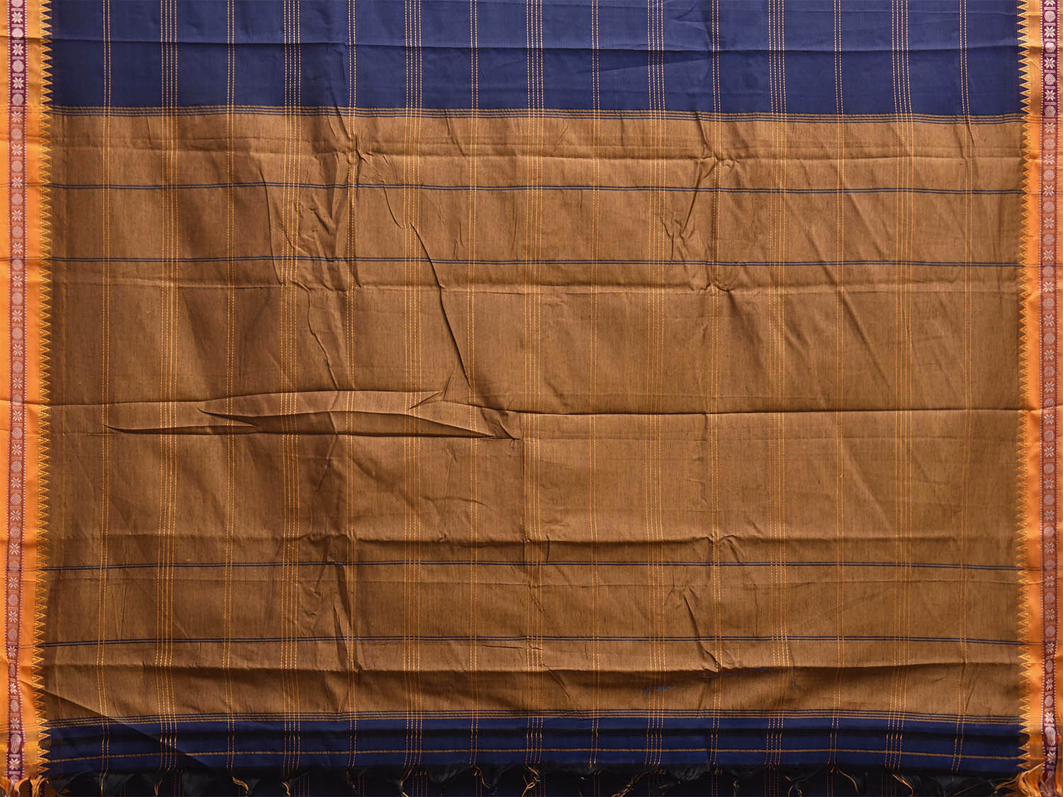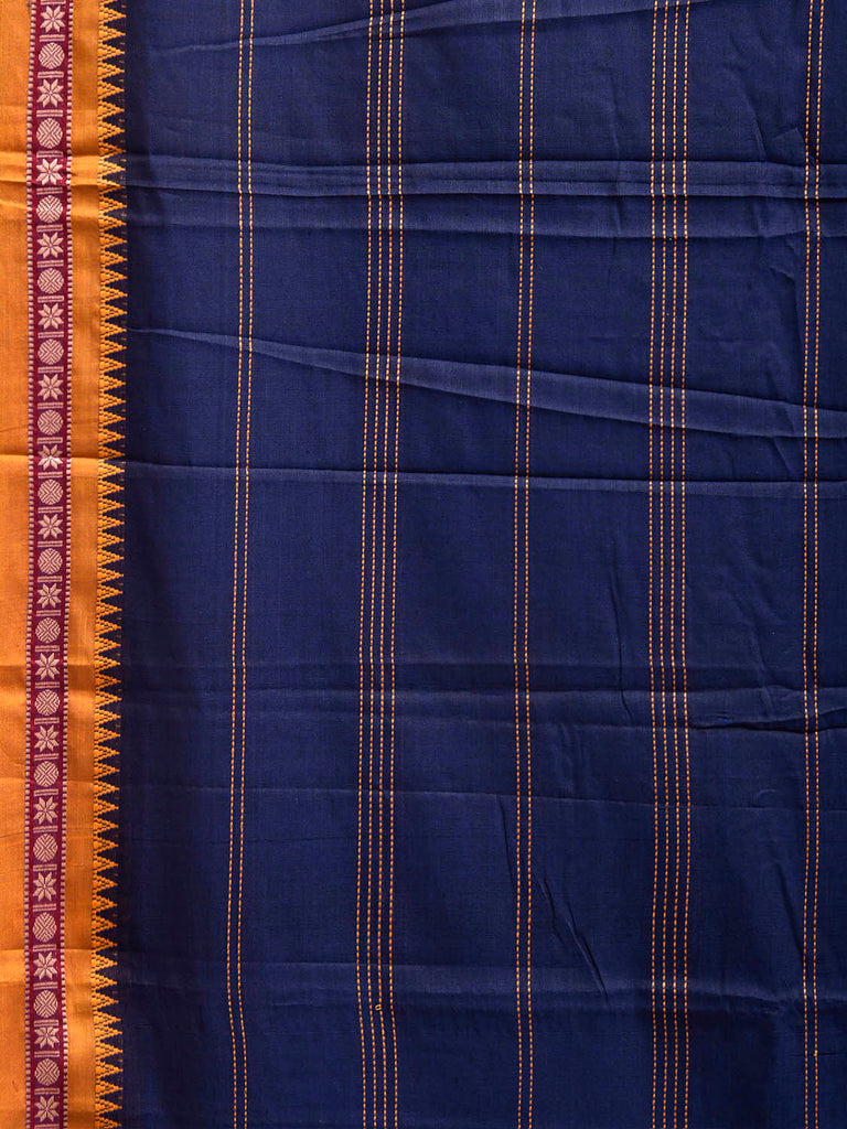 Dark Blue and Yellow Narayanpet Cotton Saree with Strips Body Design No Blouse