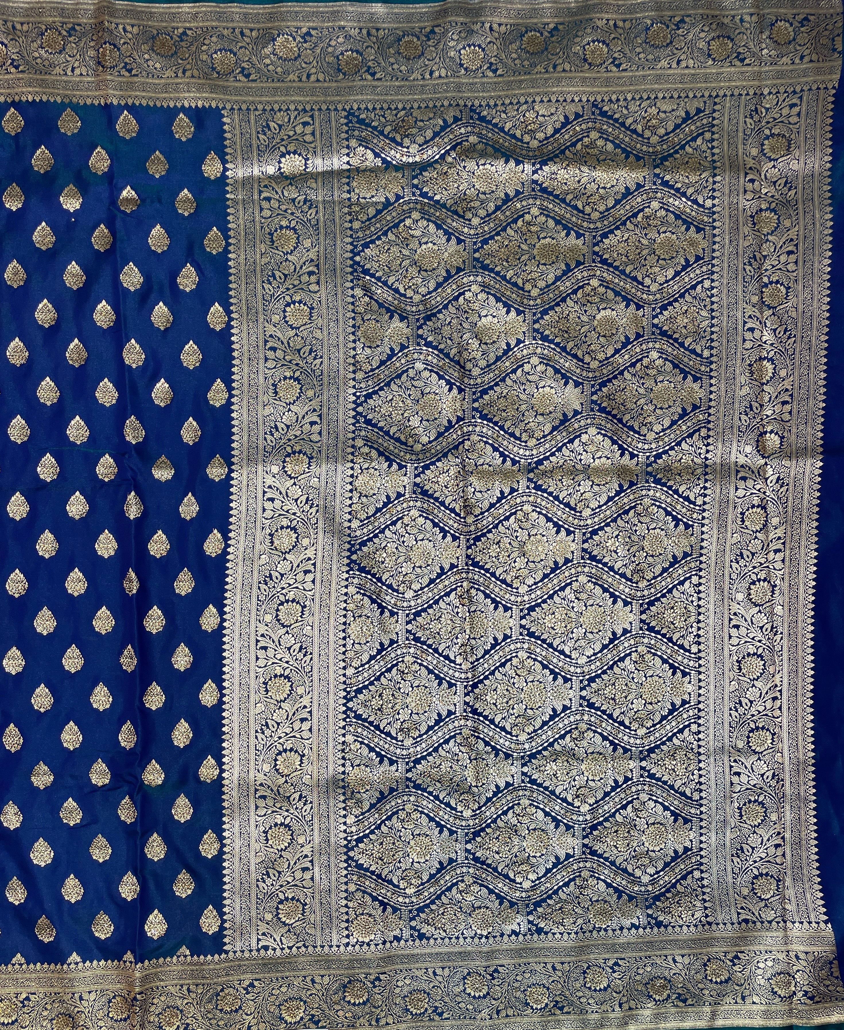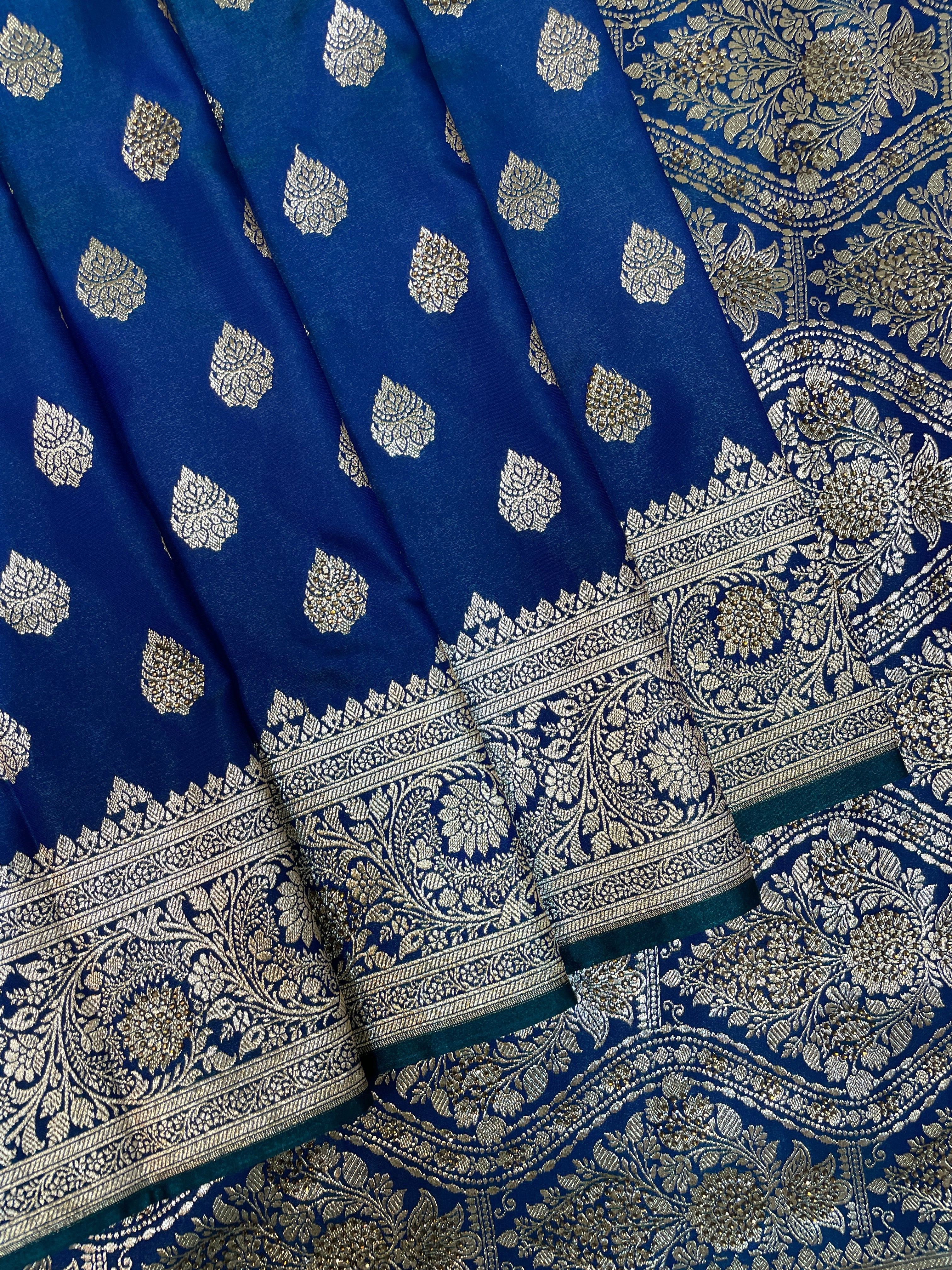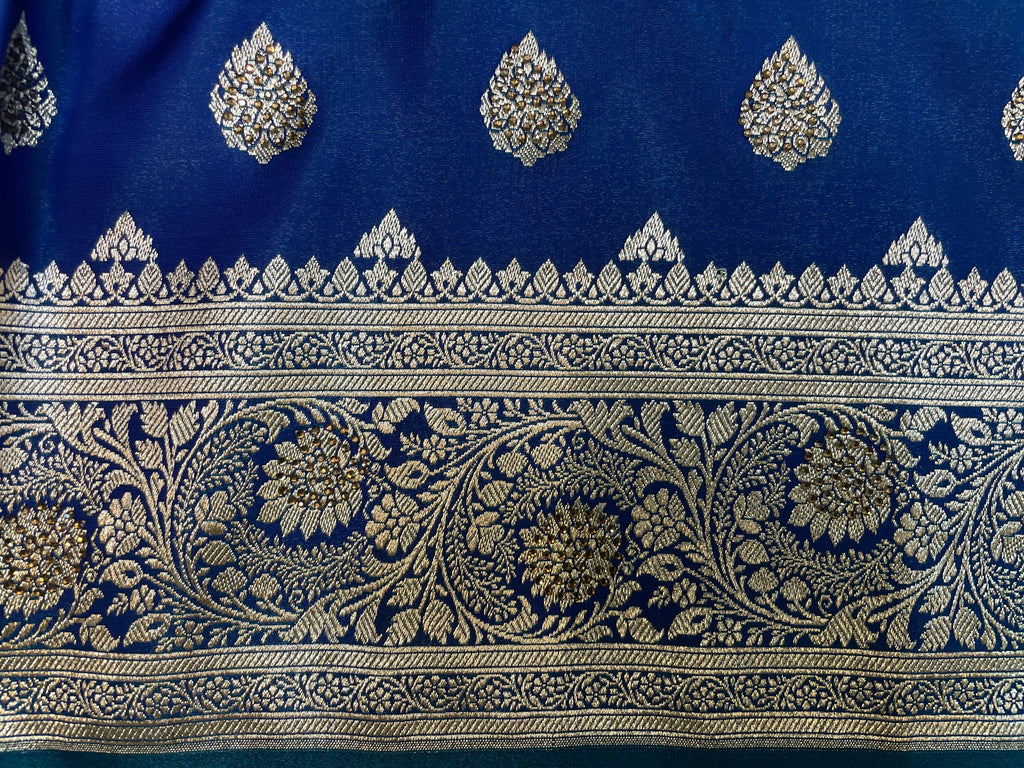 Dark Blue Katan Banarasi Saree with Silver Zari Floral Weaving And Grand Pallu B0613ds
