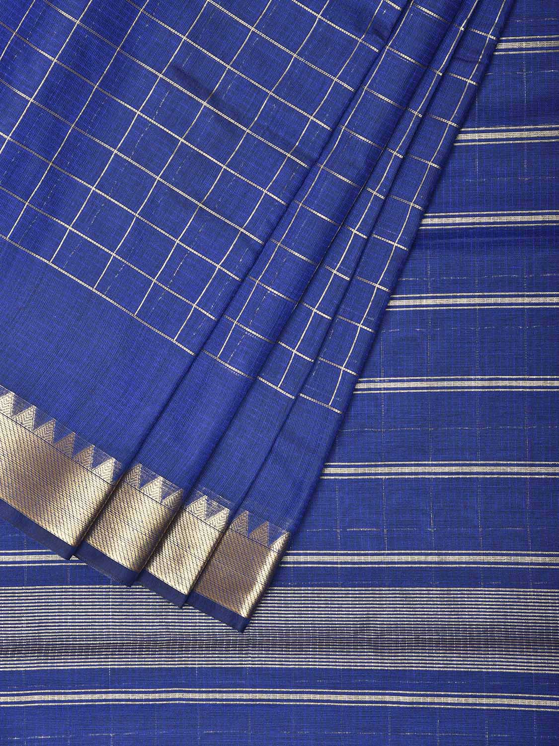 Dark Blue Mangalgiri Cotton Viscose Saree with Big Checks Design. These are Simple and Traditional Andhra Pradesh Sarees, being soft cotton they are comfortable to wear. For fabric care we advise gentle handwash it separately.