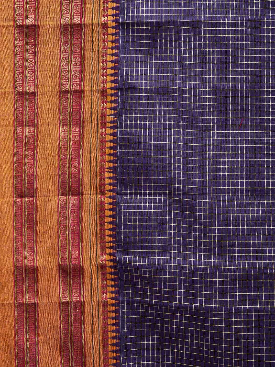 Dark Blue Narayanpet Cotton Handloom Saree with Checks Design No Blouse. These are Traditional Narayanpet Design Sarees. For fabric care we advise dry clean. This Saree has no Blouse.