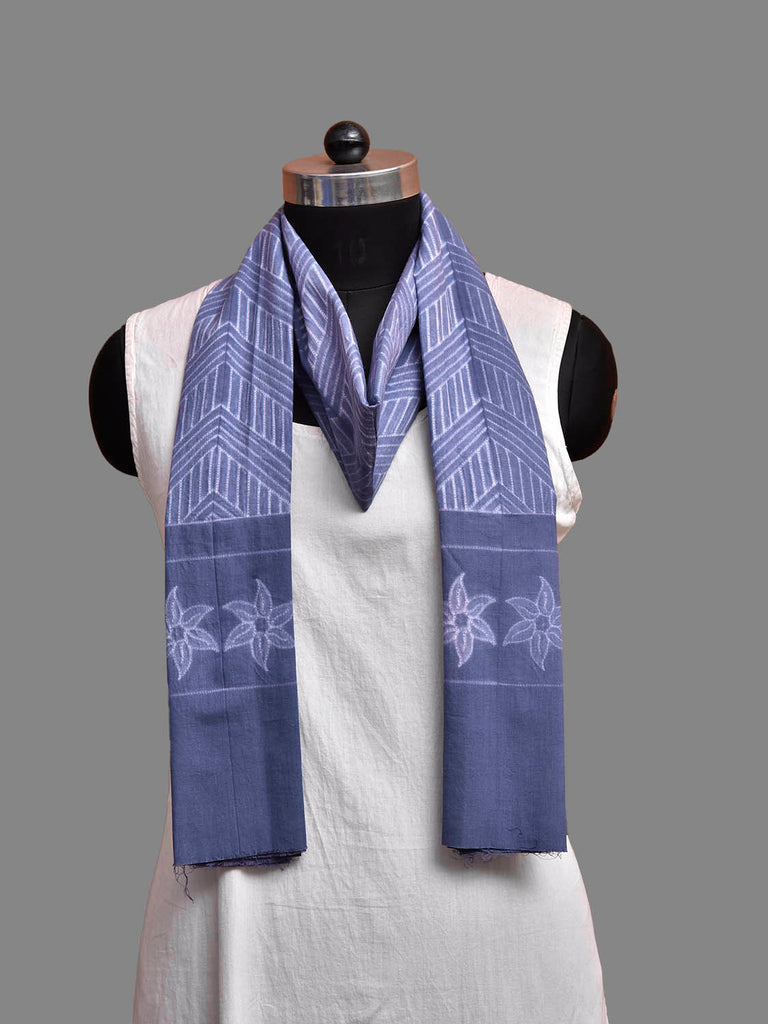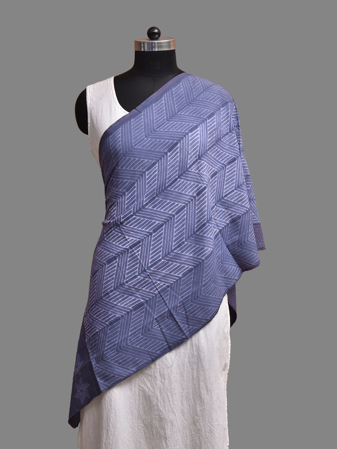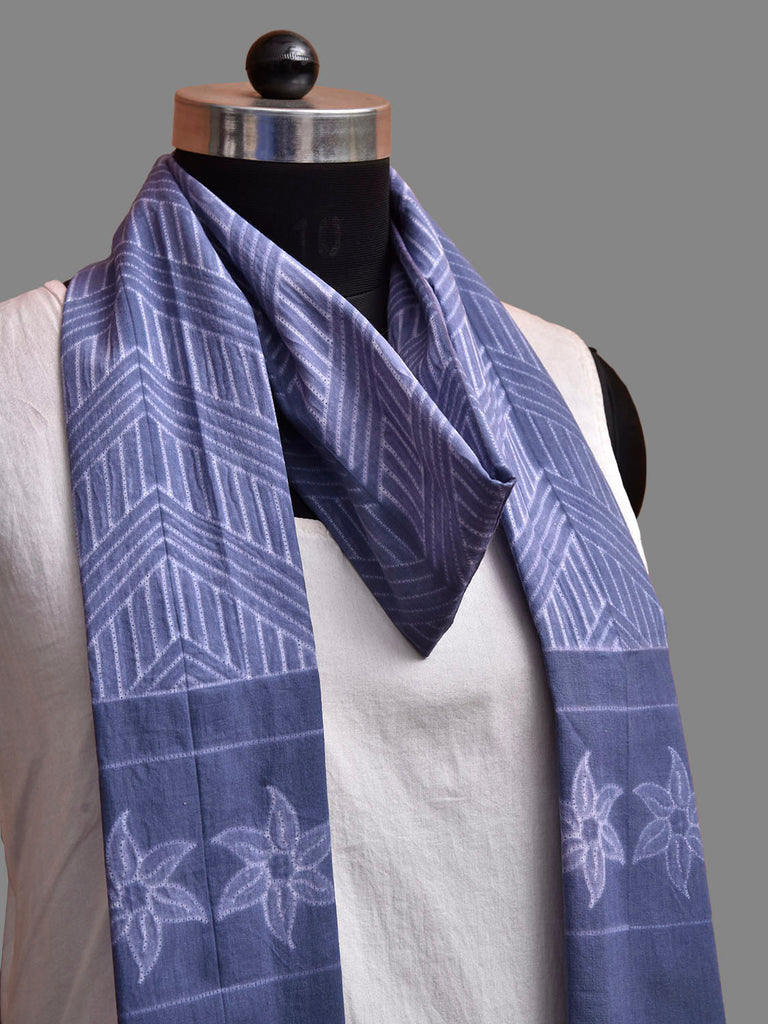 Dark Blue Shibori Cotton Stole with Zig-Zag and Floral Design. Shibori is Japanese a Technique of tie and dye, and resist some parts by clamping or stitching the fabric. The result produced are unique geometric patterns & any other eloborate design. For fabric care we advise gentle handwash separately.