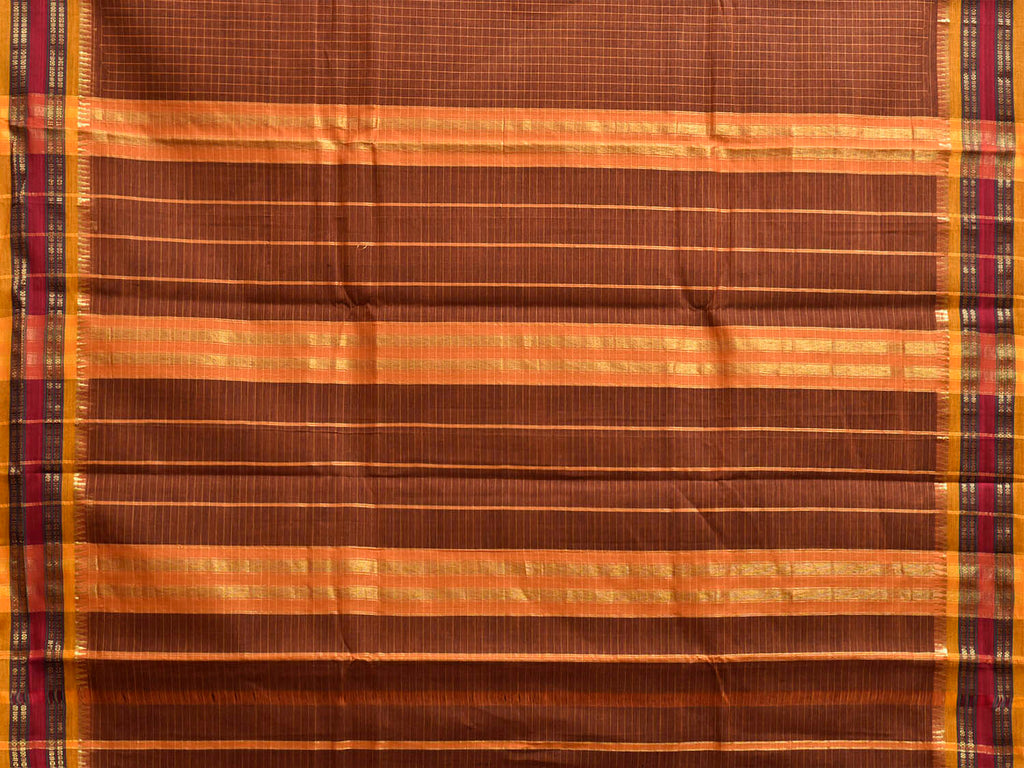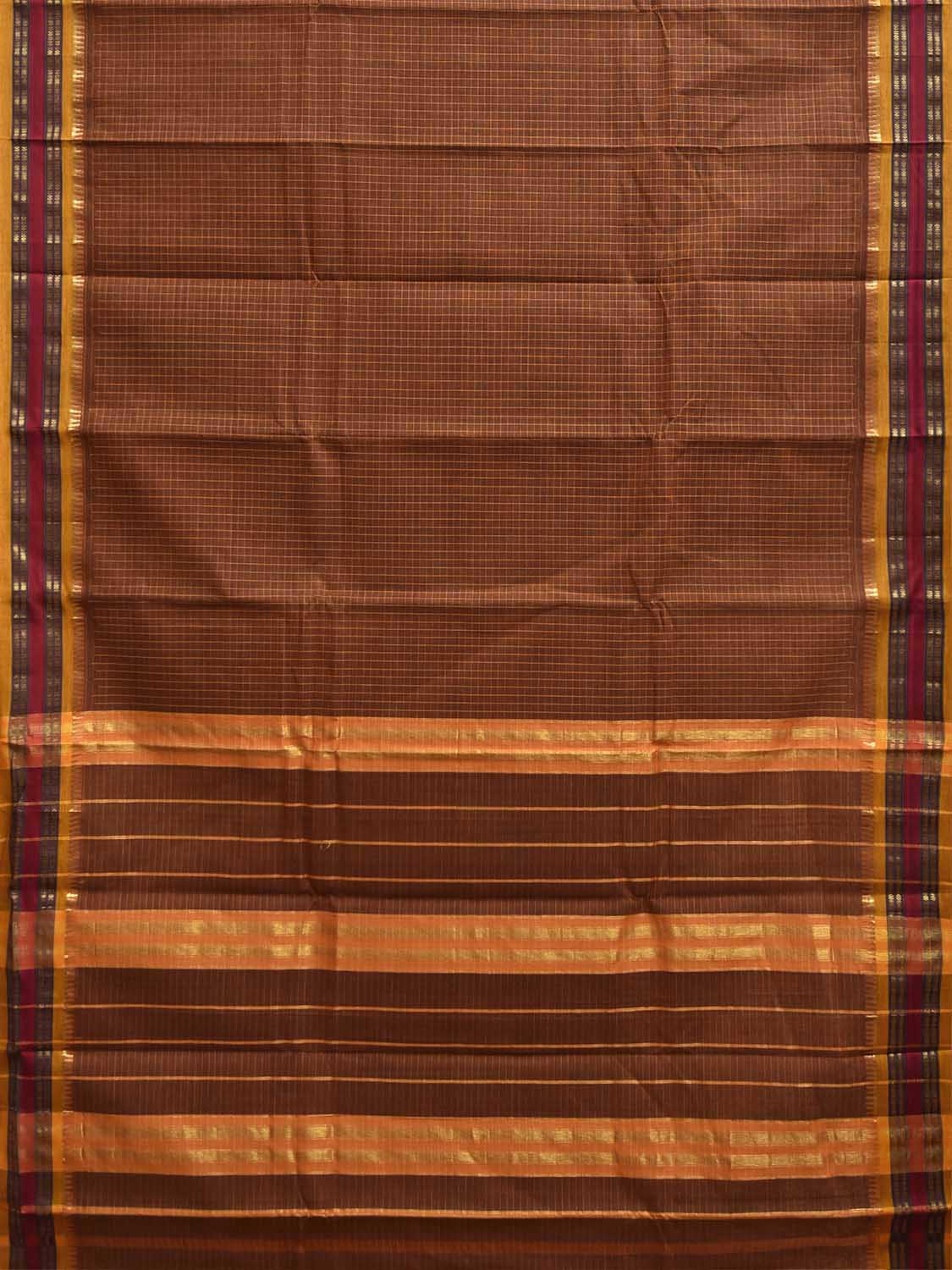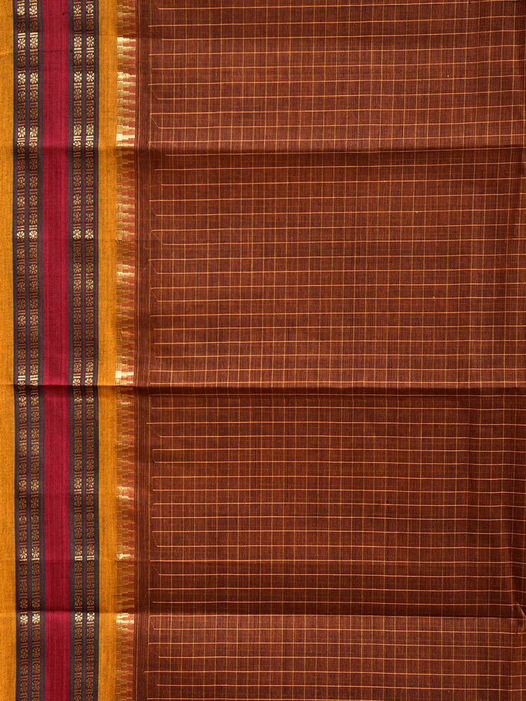 Dark Fawn and Yellow Narayanpet Cotton Handloom Saree with Checks Design No Blouse. This saree has no blouse.