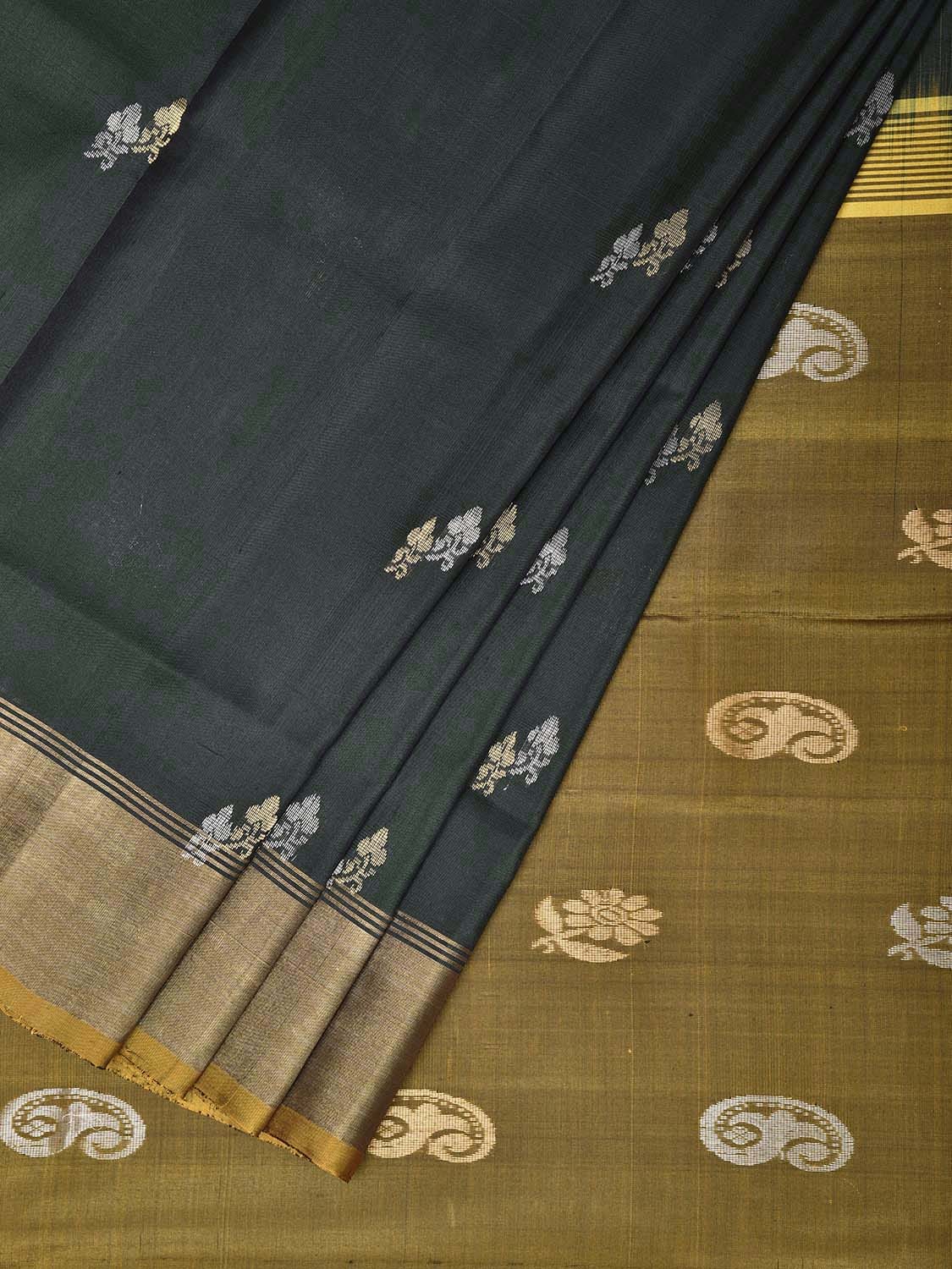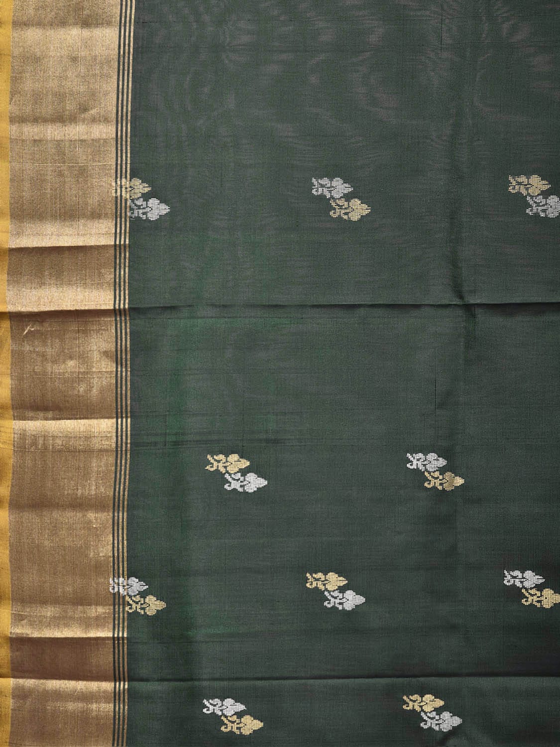 Dark Green and Olive Uppada Silk Handloom Saree with Body Buta Design