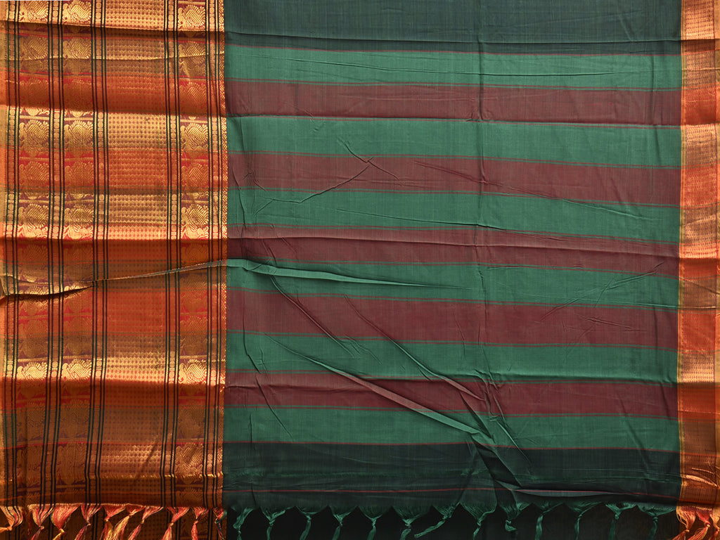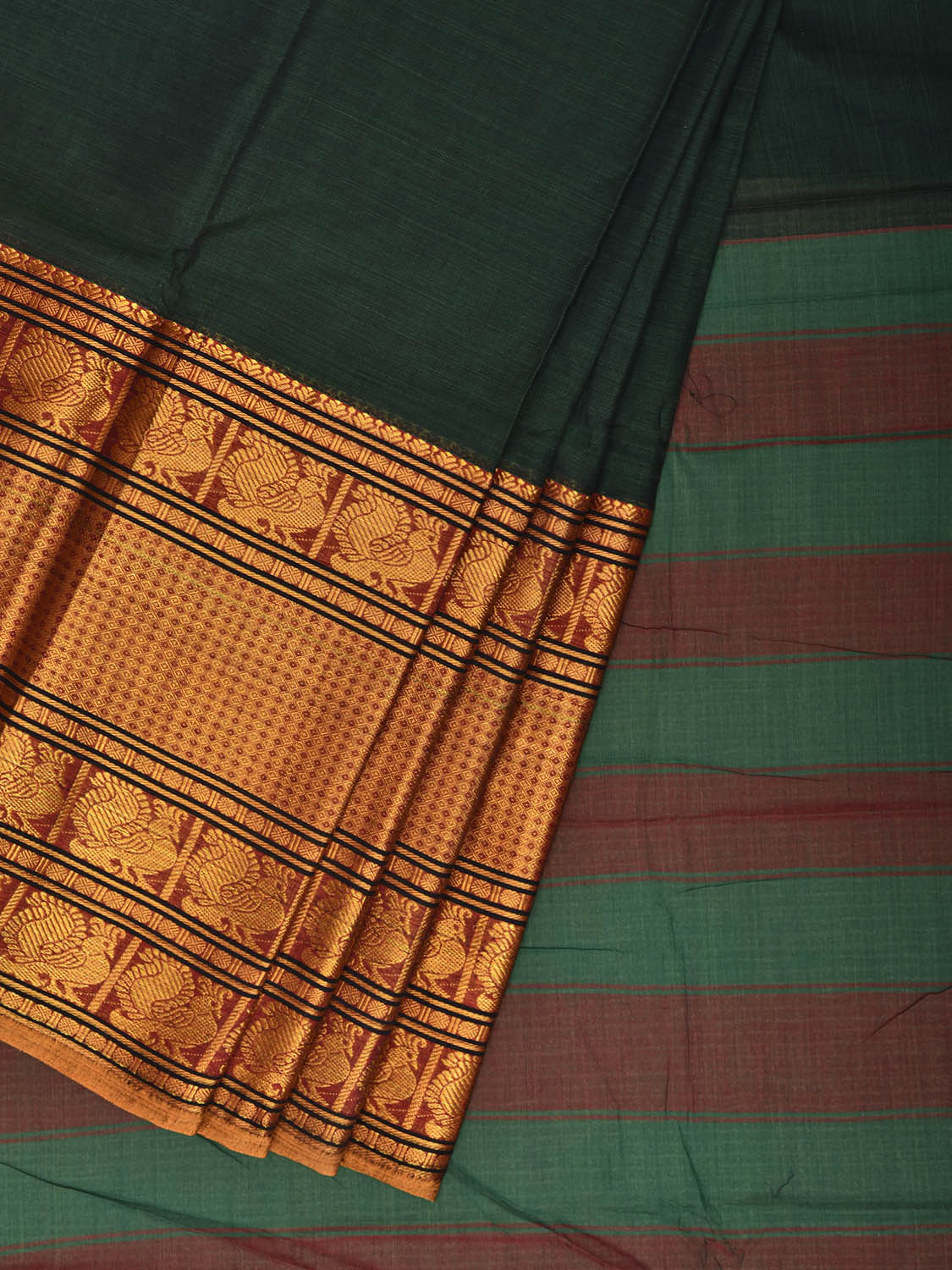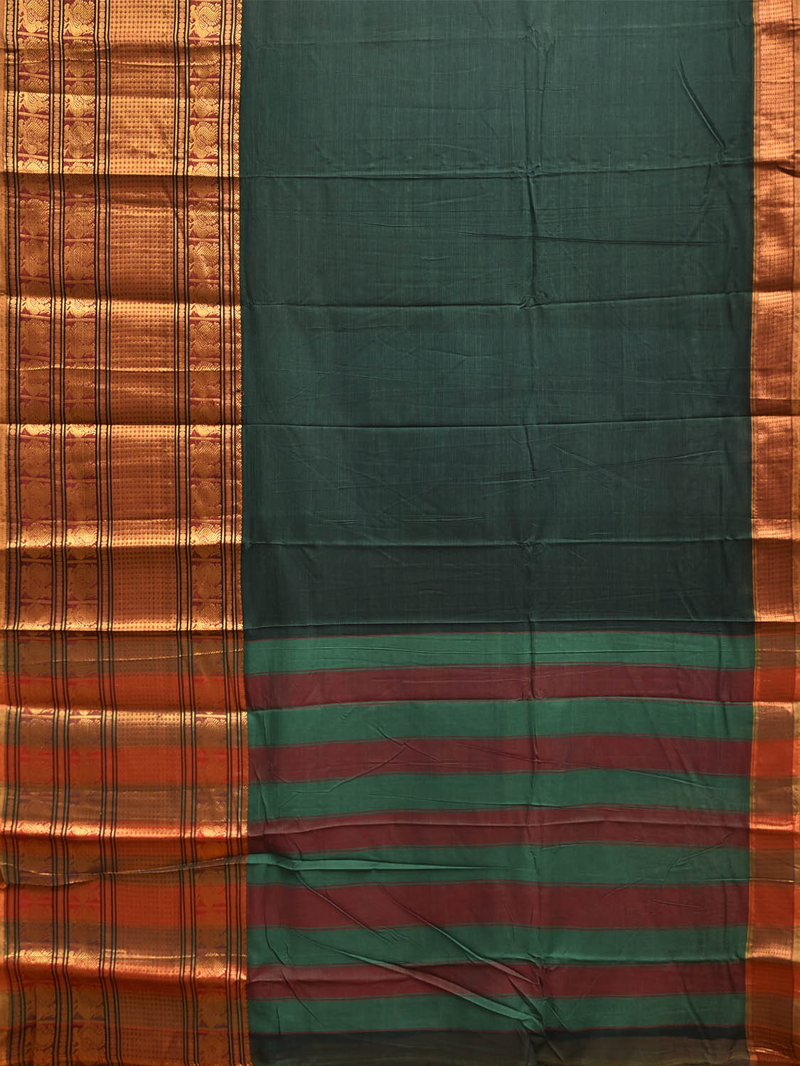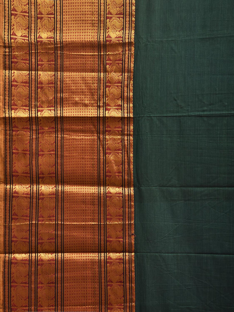 Dark Green Madurai Cotton Plain Saree with Kanchipuram Border Design No Blouse k1019