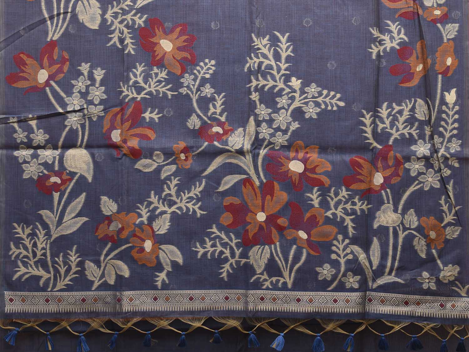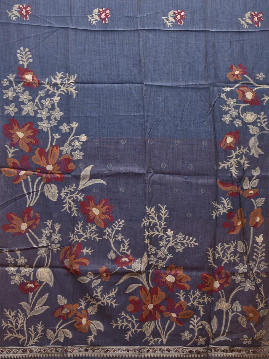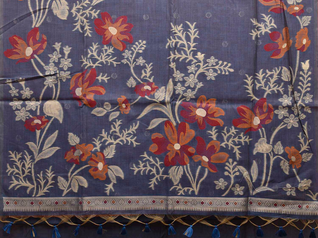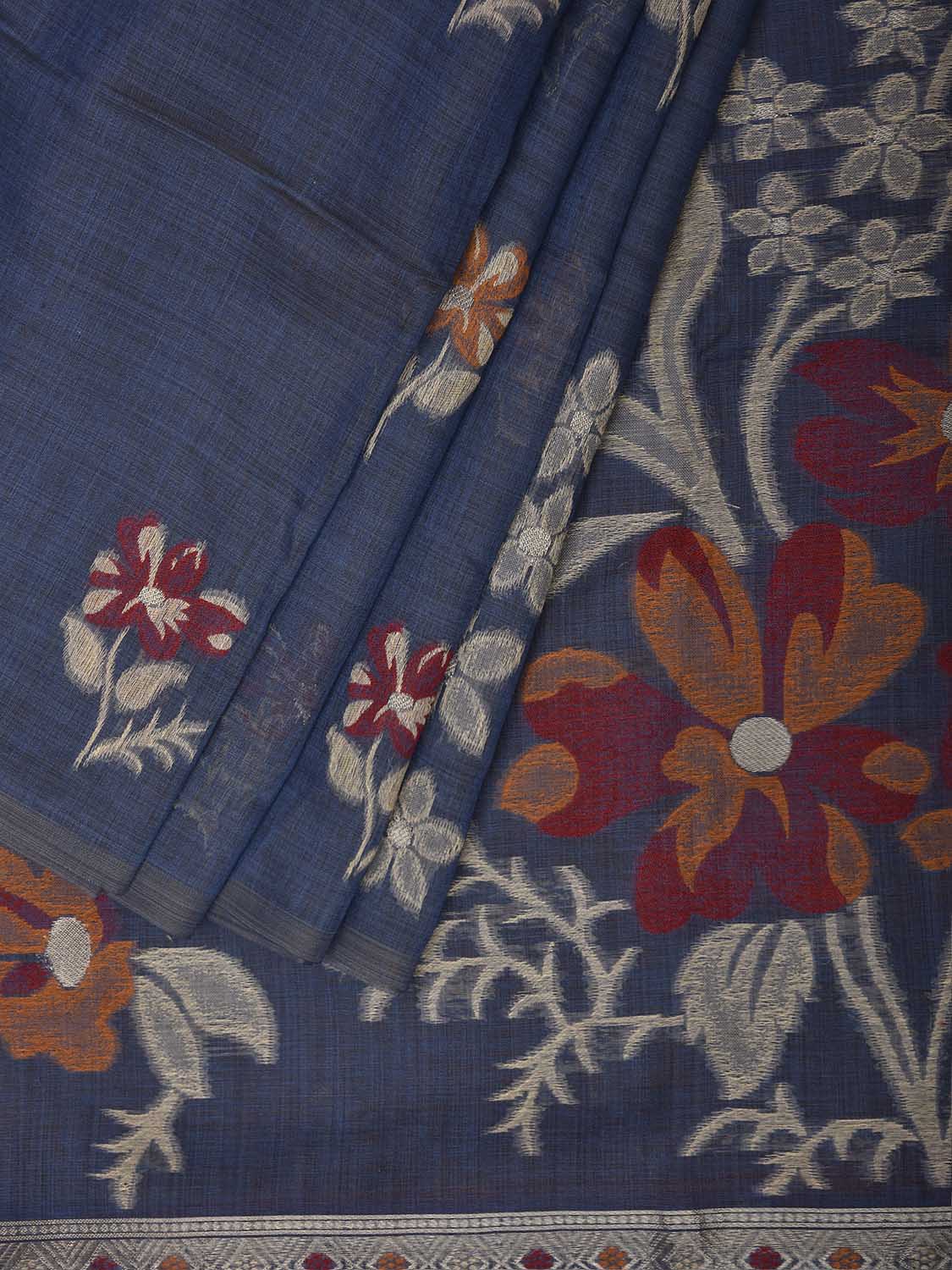 Dark Grey Dhakai Jamdani Cotton Viscose Saree with Body Buta and Floral Design. These are some of the traditional Dhakai Jamdani designs, these sarees have geometric designs and sometimes floral or combination of both. We advice gentle handwash separately for fabric care.