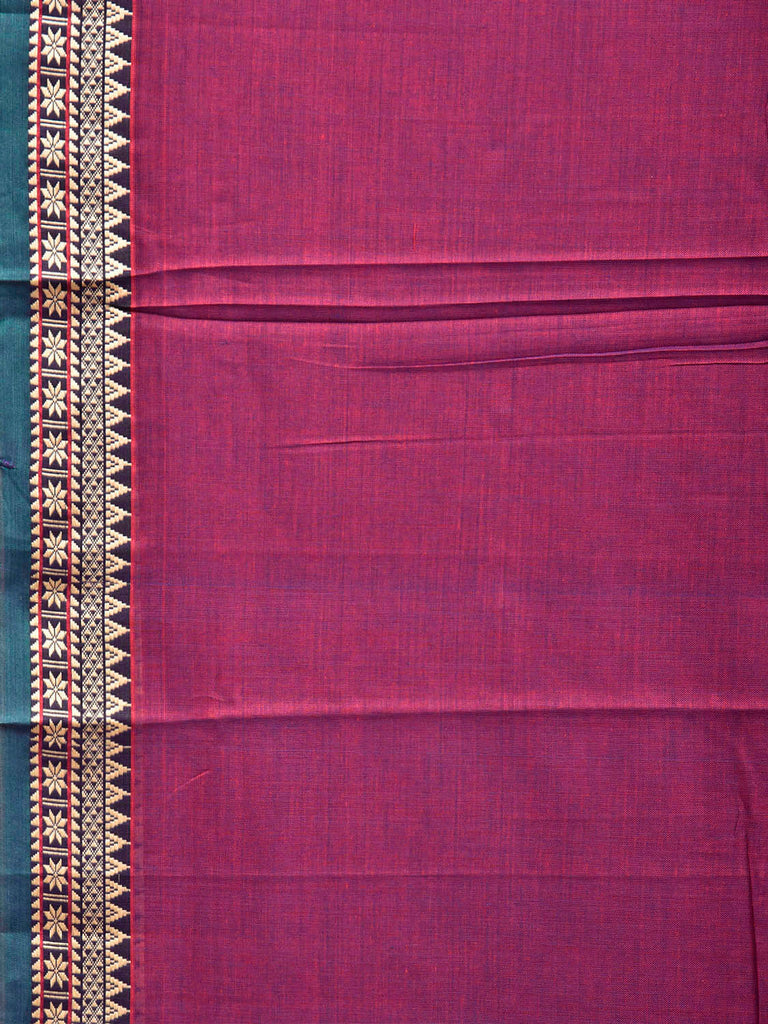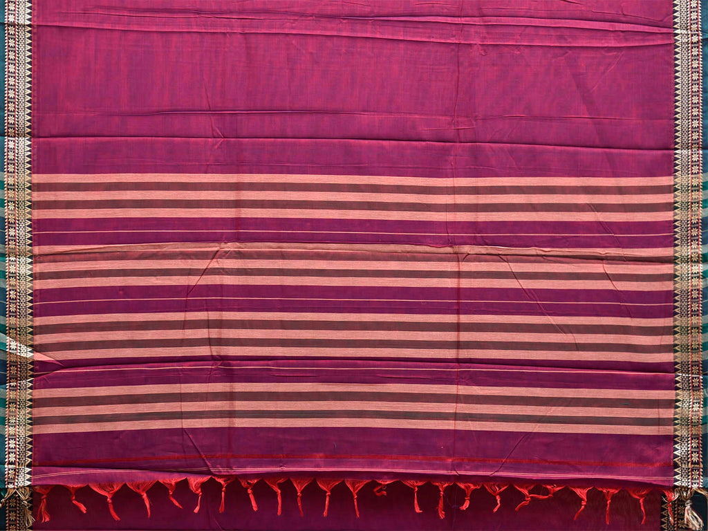Dark Magenta Narayanpet Cotton Plain Saree with Strips Pallu and Border Design No Blouse. This saree has no blouse.