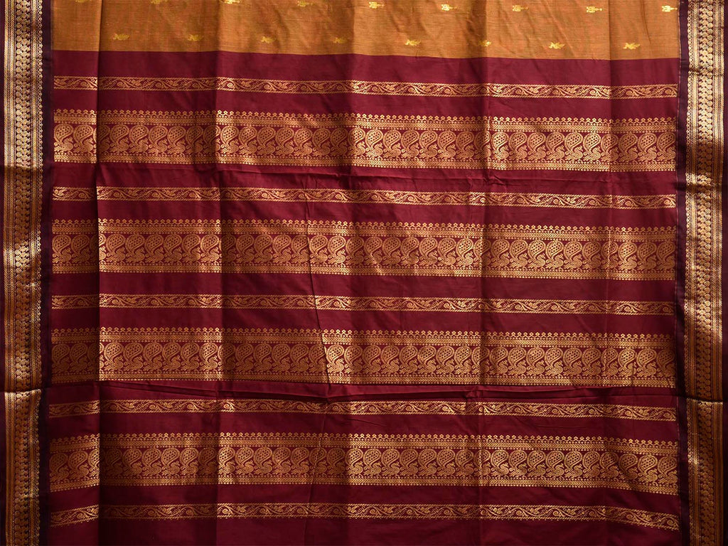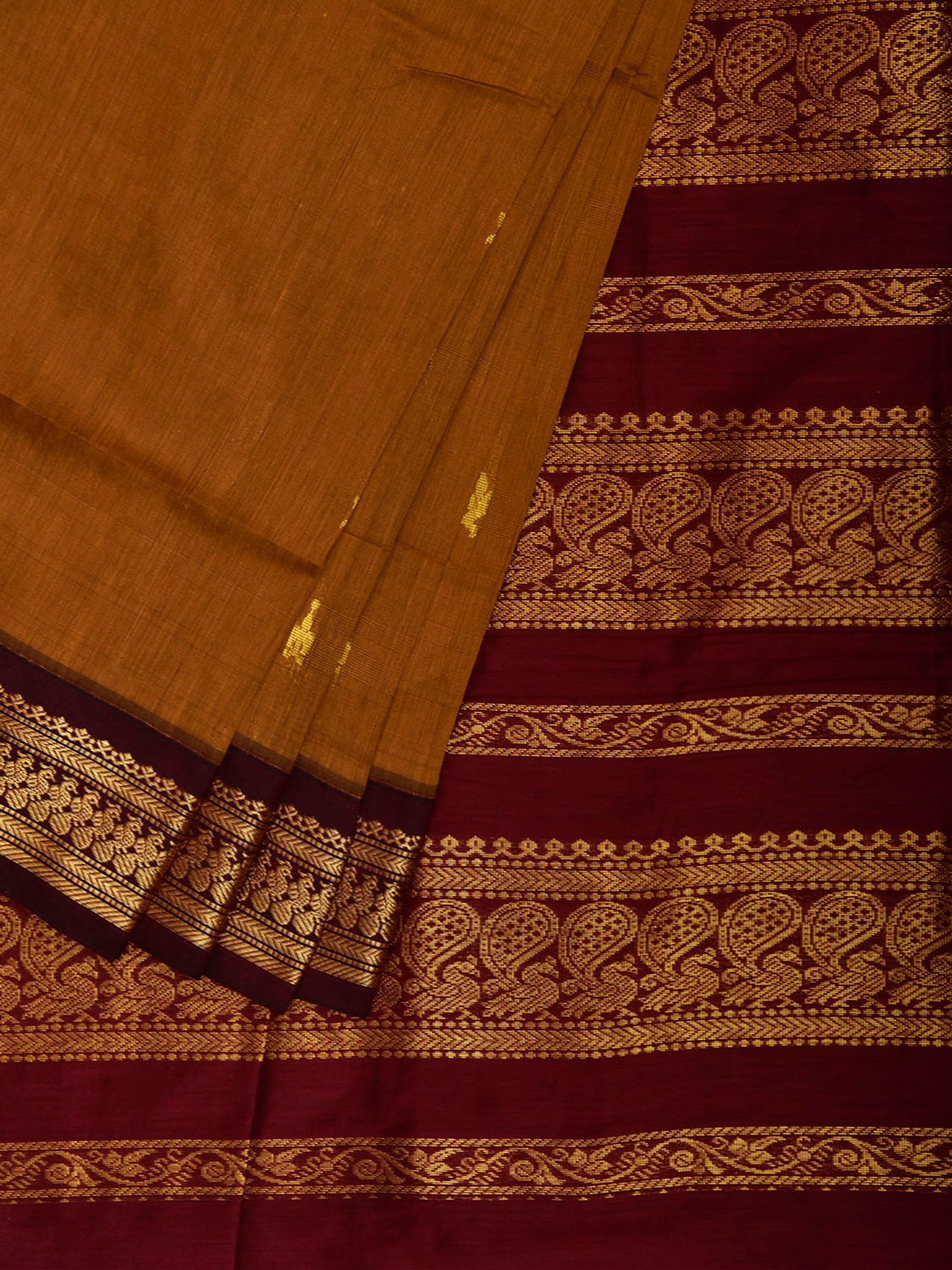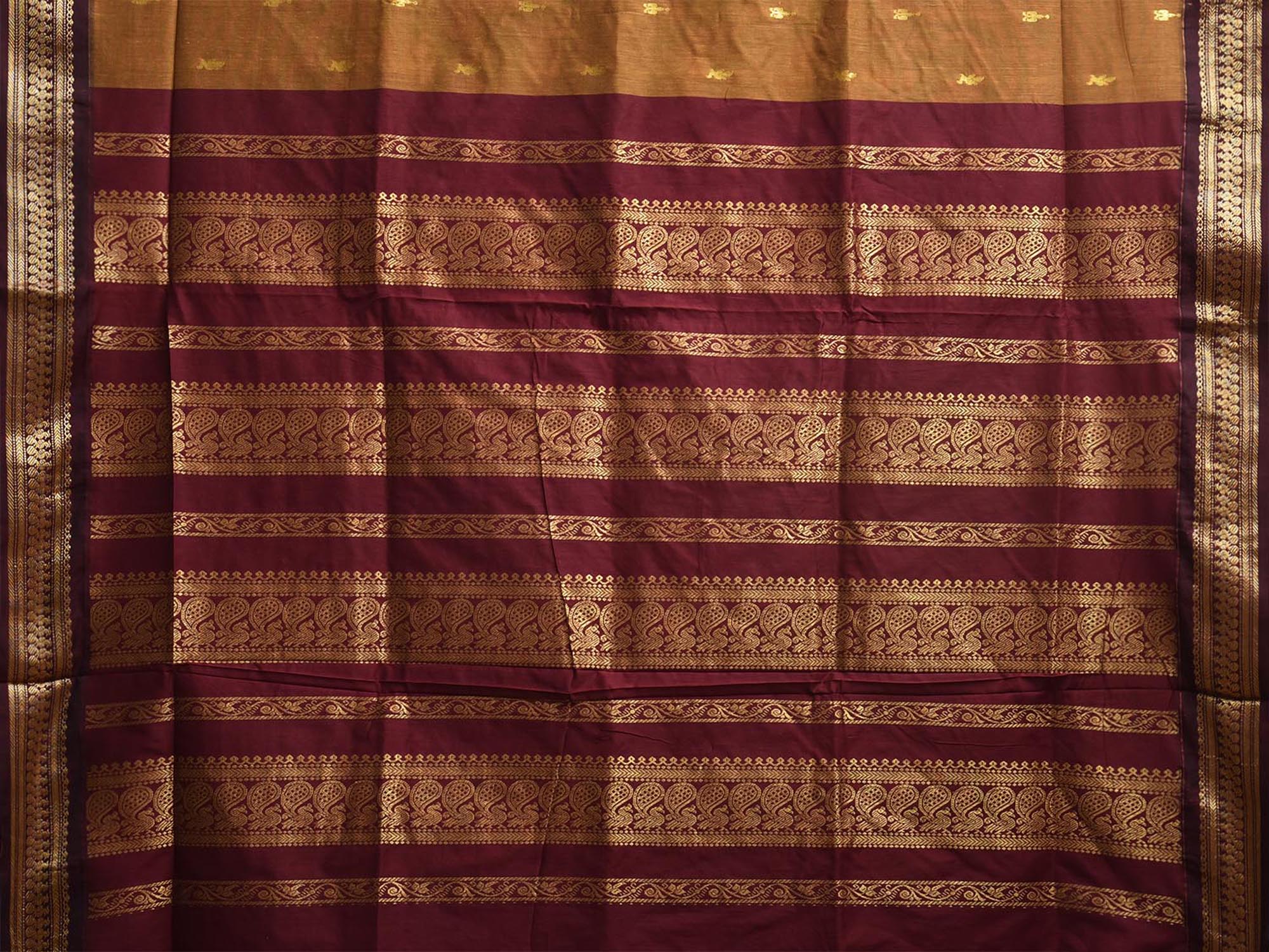 Dark Mustard and Dark Red Gadwal Cotton Viscose Saree with Pallu Design. Gadwal Sarees are known for their traditional design of border and pallu made of silk and body being either cotton or silk. They are known as Sico sarees for border and pallu being silk and body being cotton. We advice dry clean for fabric care.