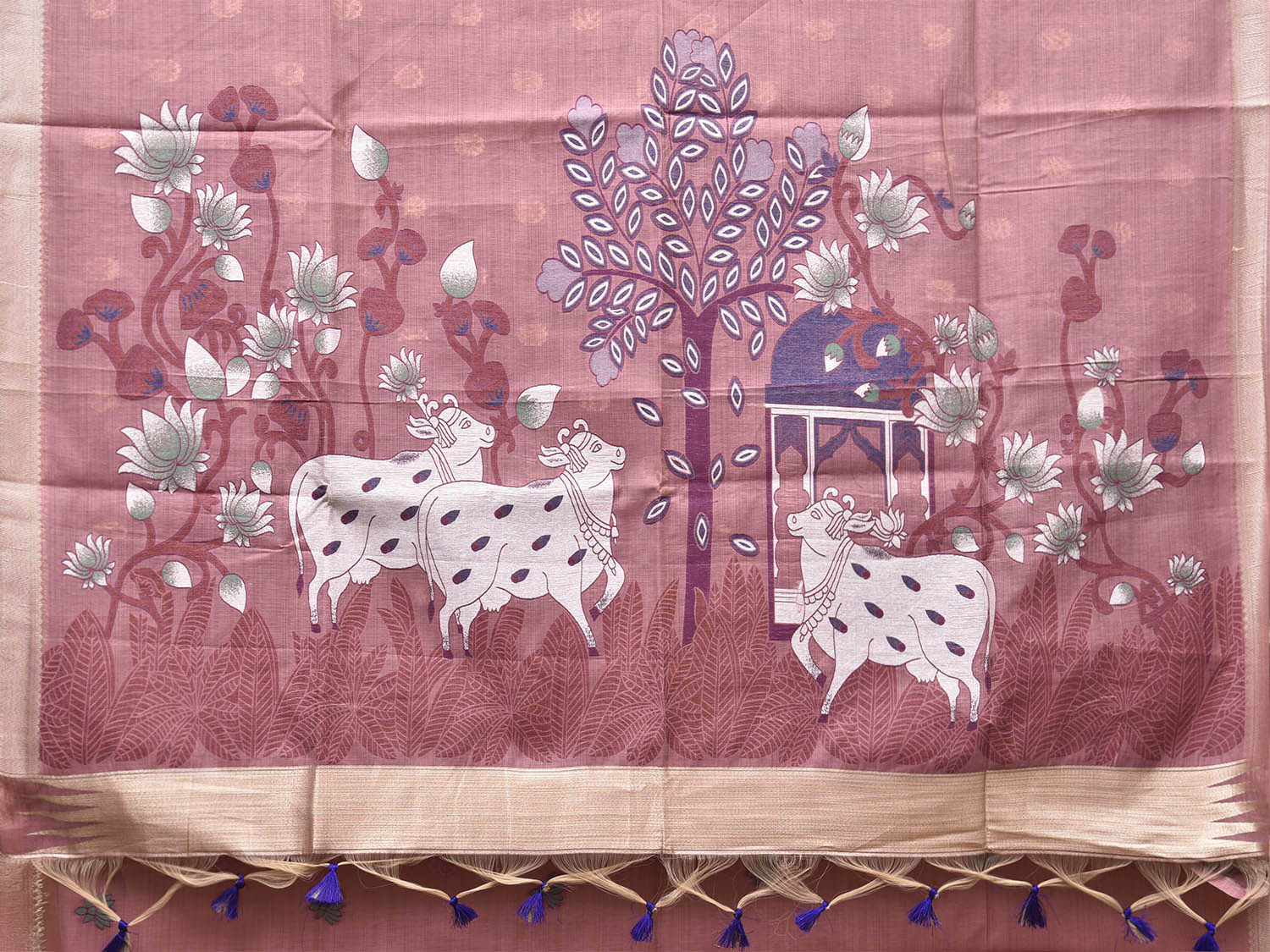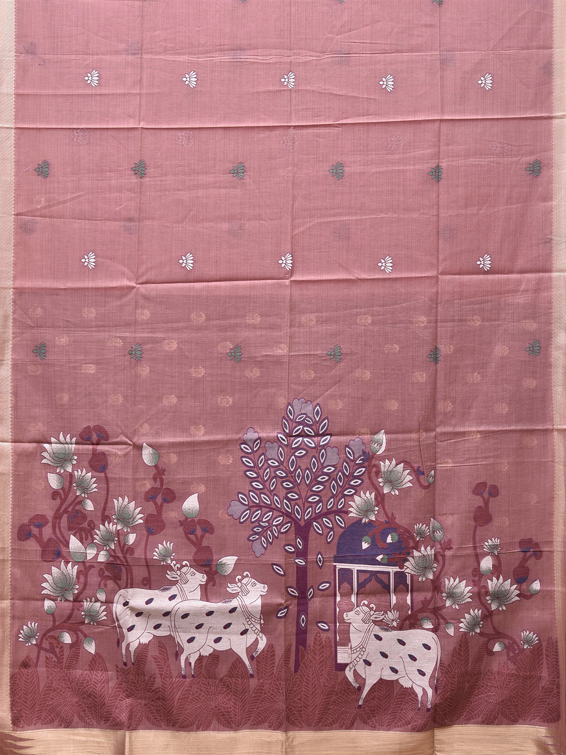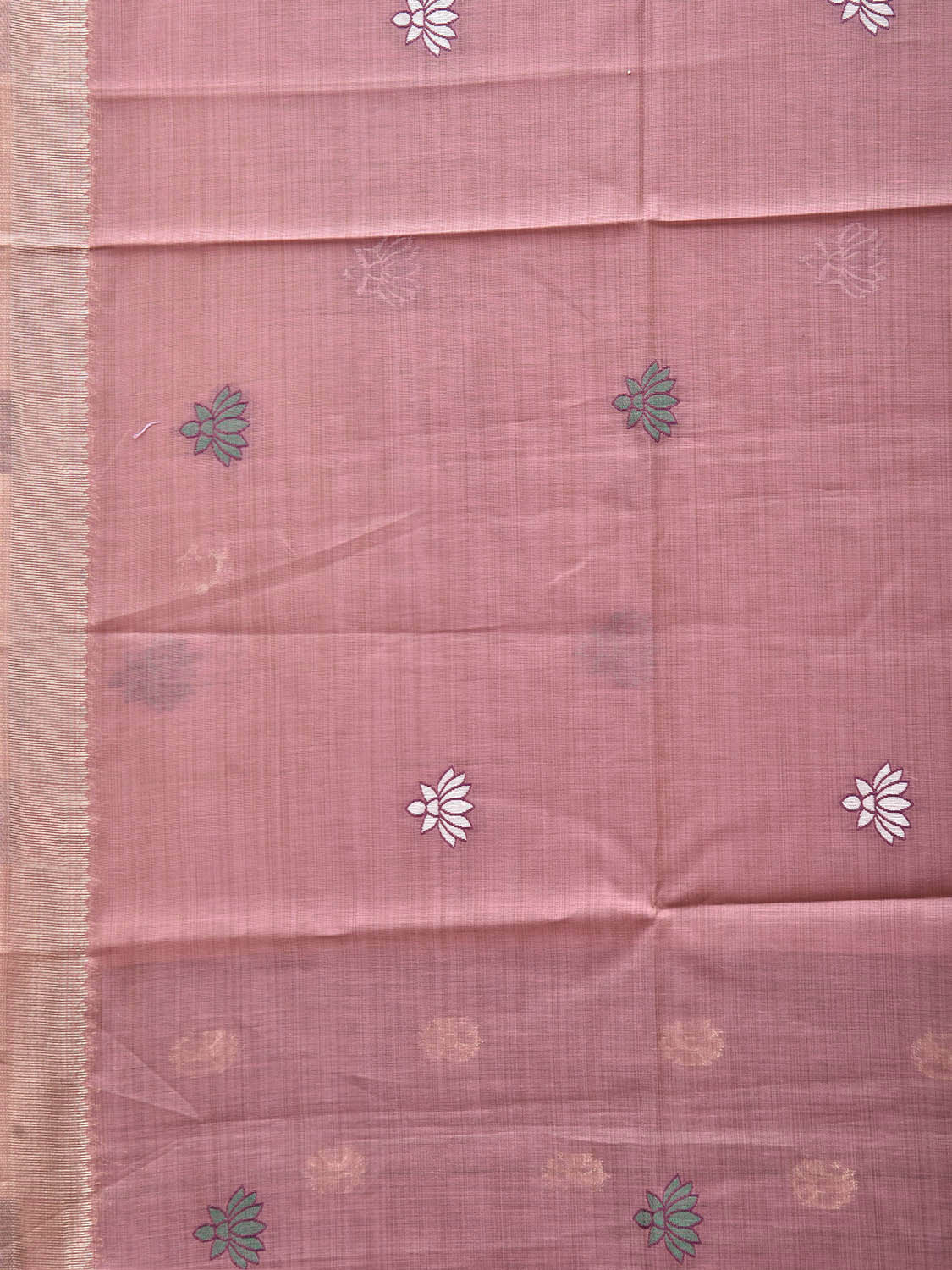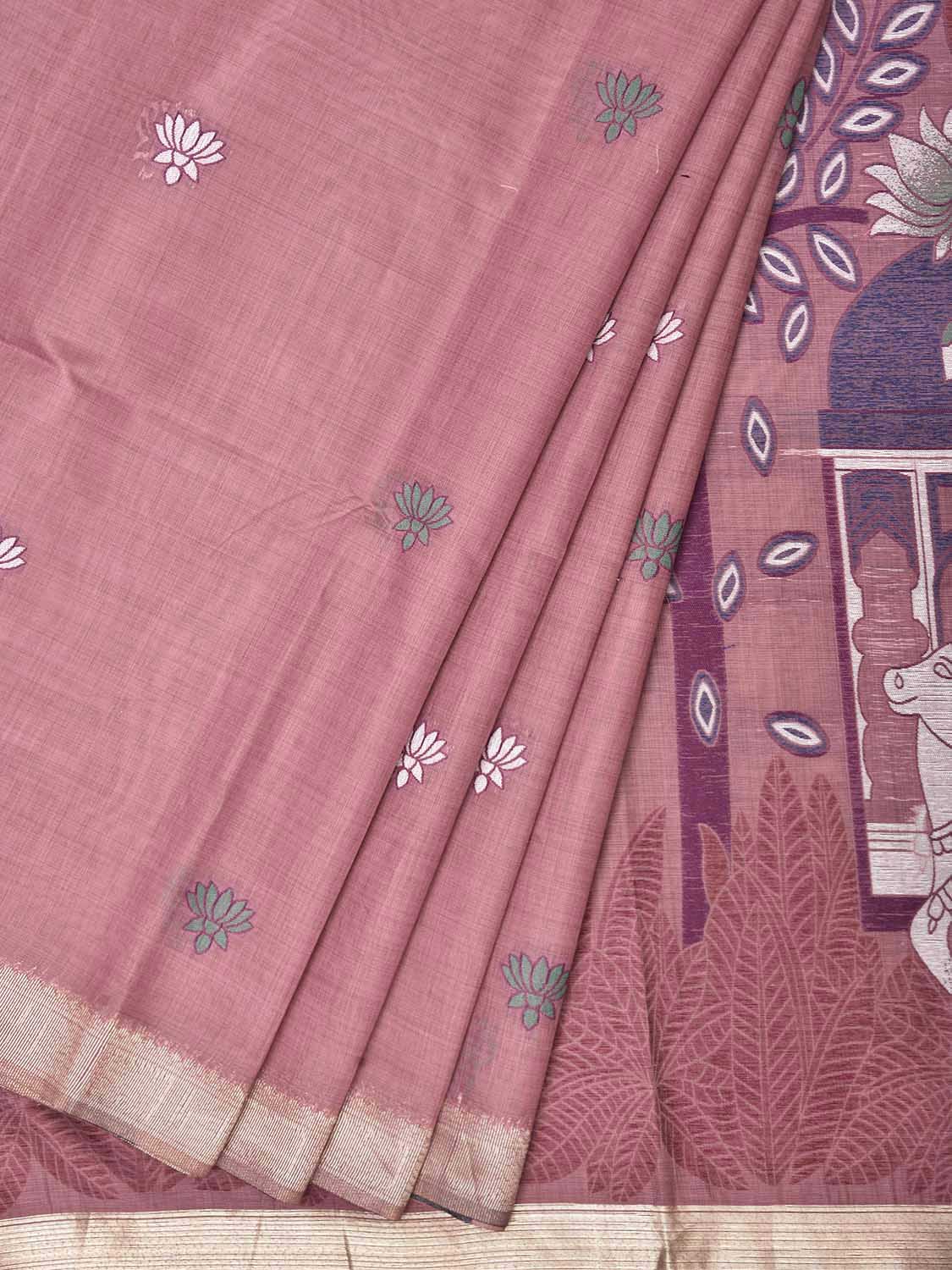 Dark Peach Dhakai Jamdani Cotton Viscose Saree with Cows Pallu Design. These are some of the traditional Dhakai Jamdani designs, these sarees have geometric designs and sometimes floral or combination of both. We advice gentle handwash separately for fabric care.