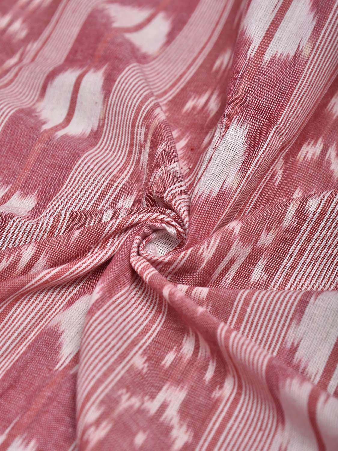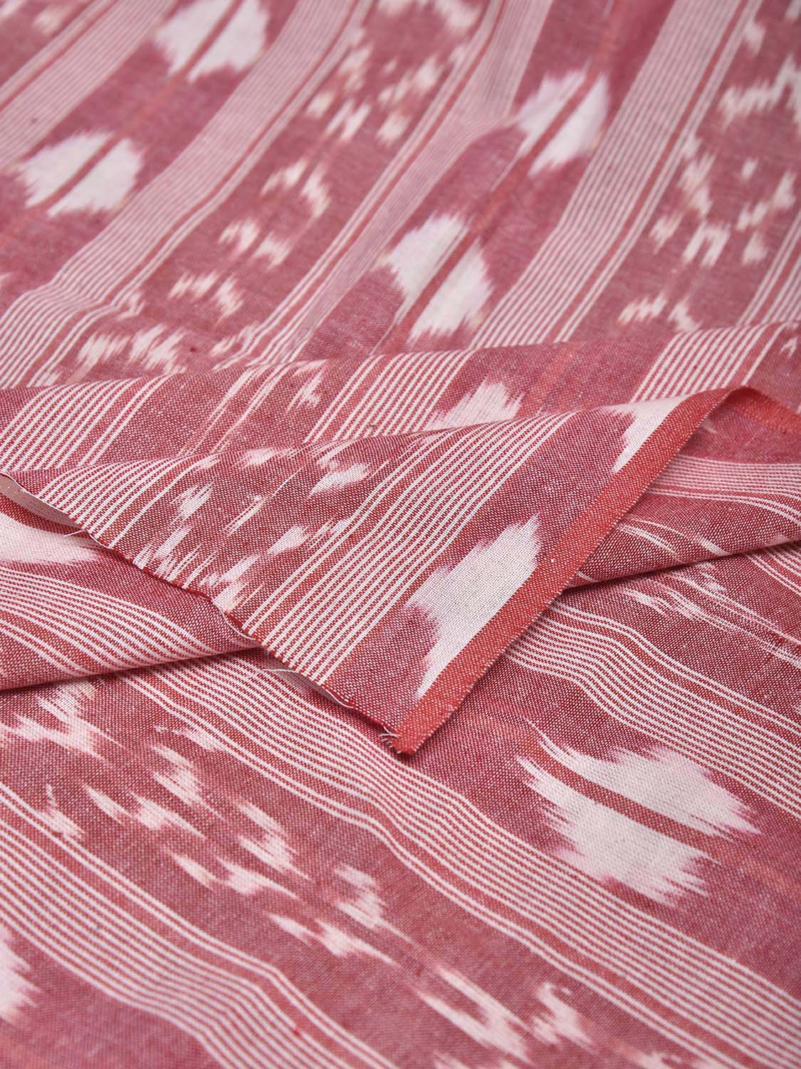 Dark Peach Pochampally Ikat Cotton 3mts Fabric with Strips Design. This Handloom Cotton Fabric from Andhra Pradesh has been woven using the resist-dyeing, which produces the unique patterns adorning the fabric. Fabric is 44 inches in width. The price mentioned is for Quantity 1 = 3 meters. For fabric care we advise gentle handwash separately.