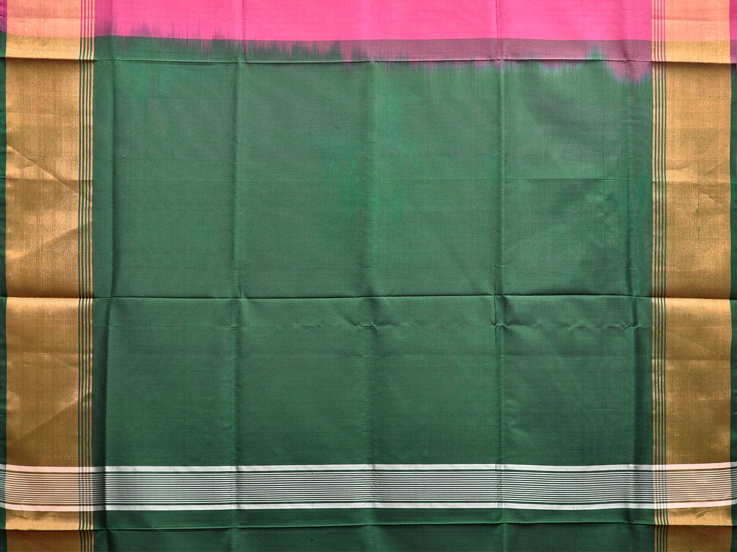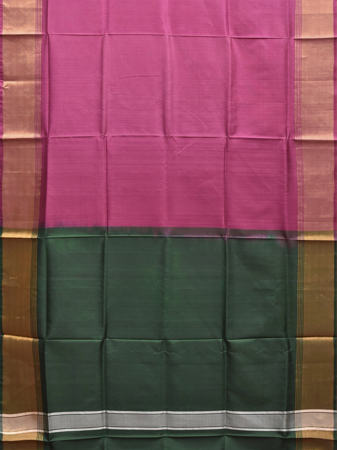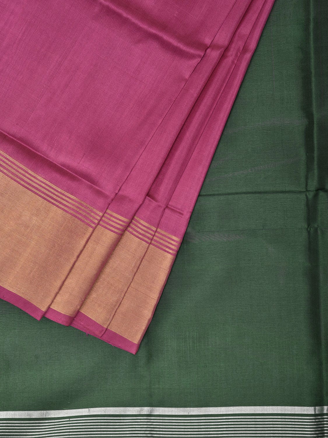 Dark Pink and Green Uppada Pure Silk Plain Handloom Saree with Contrast Pallu Design