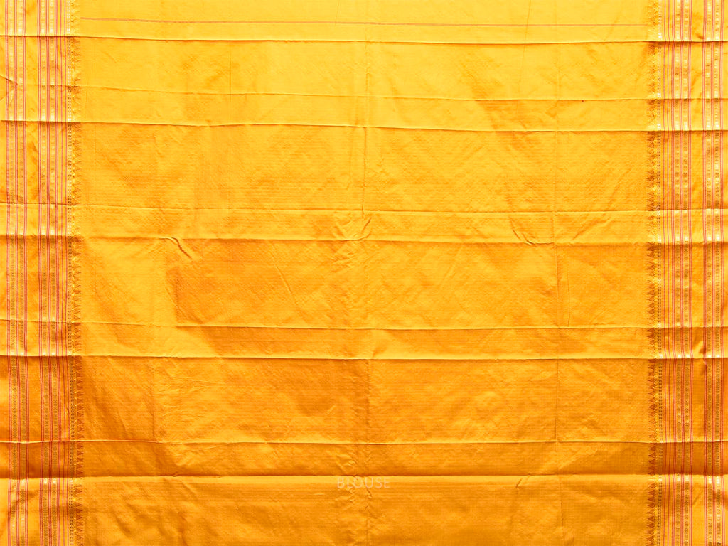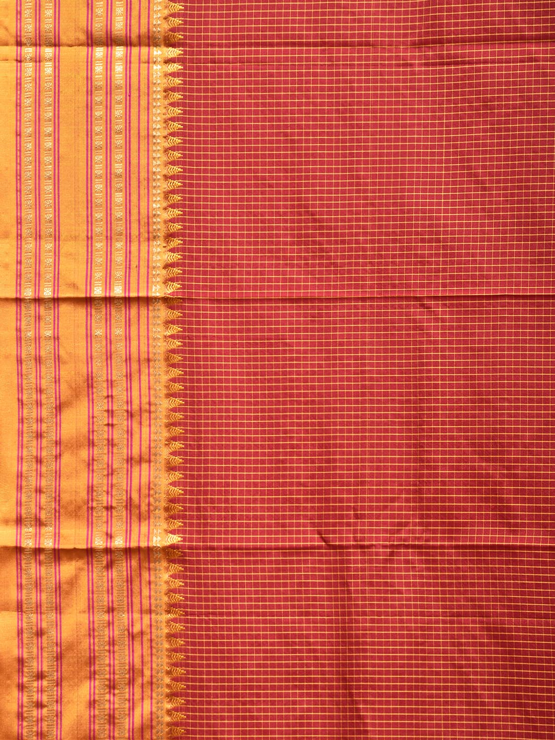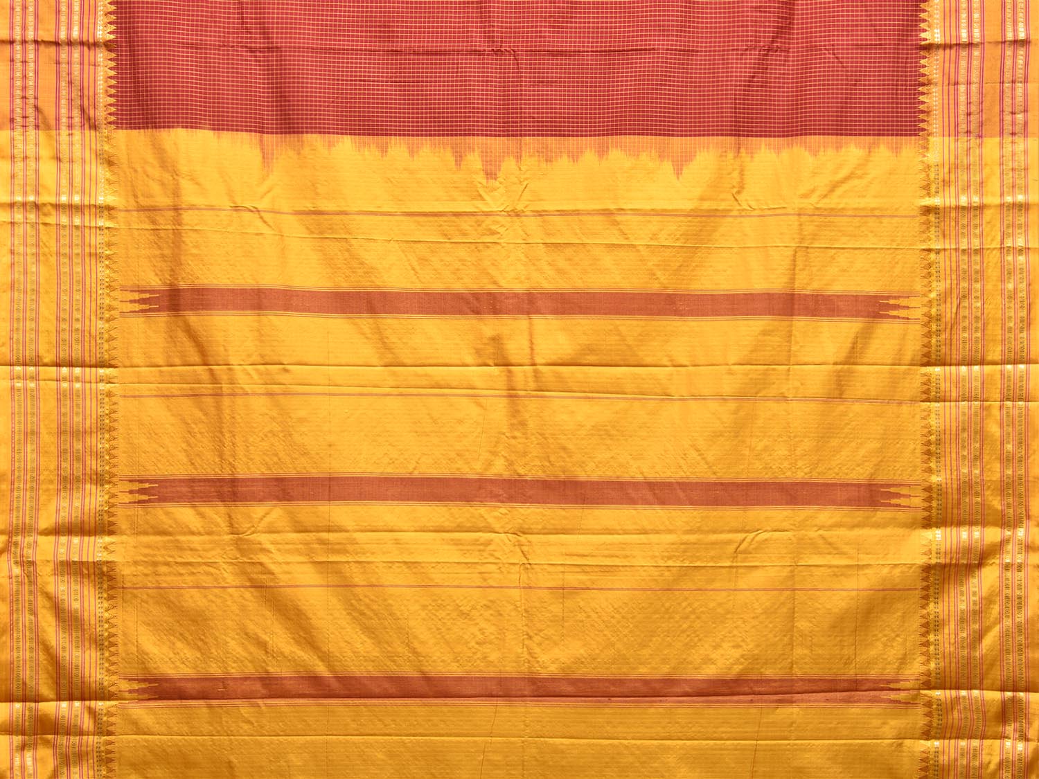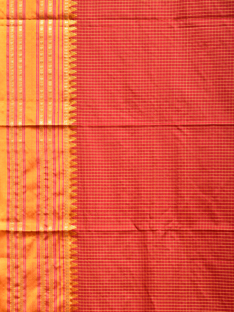 Dark Red and Yellow Narayanpet Cotton Silk Saree with Checks Design No Blouse.