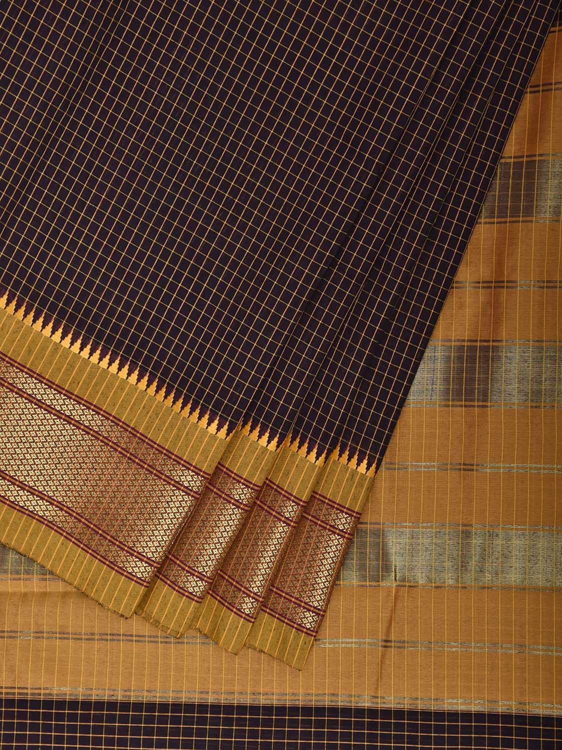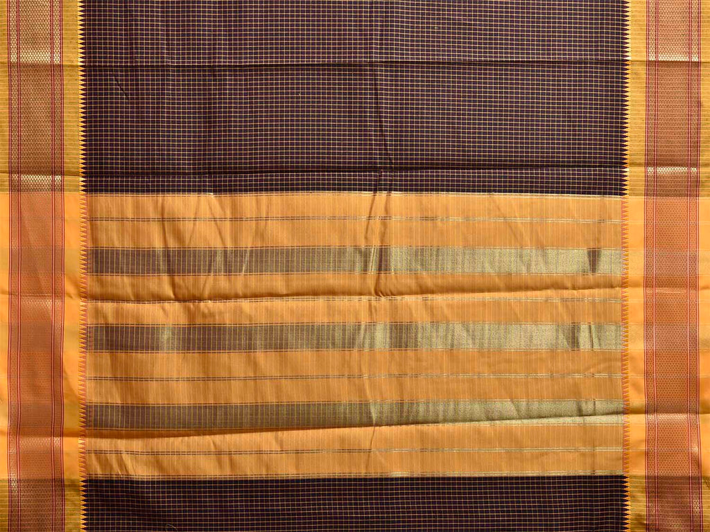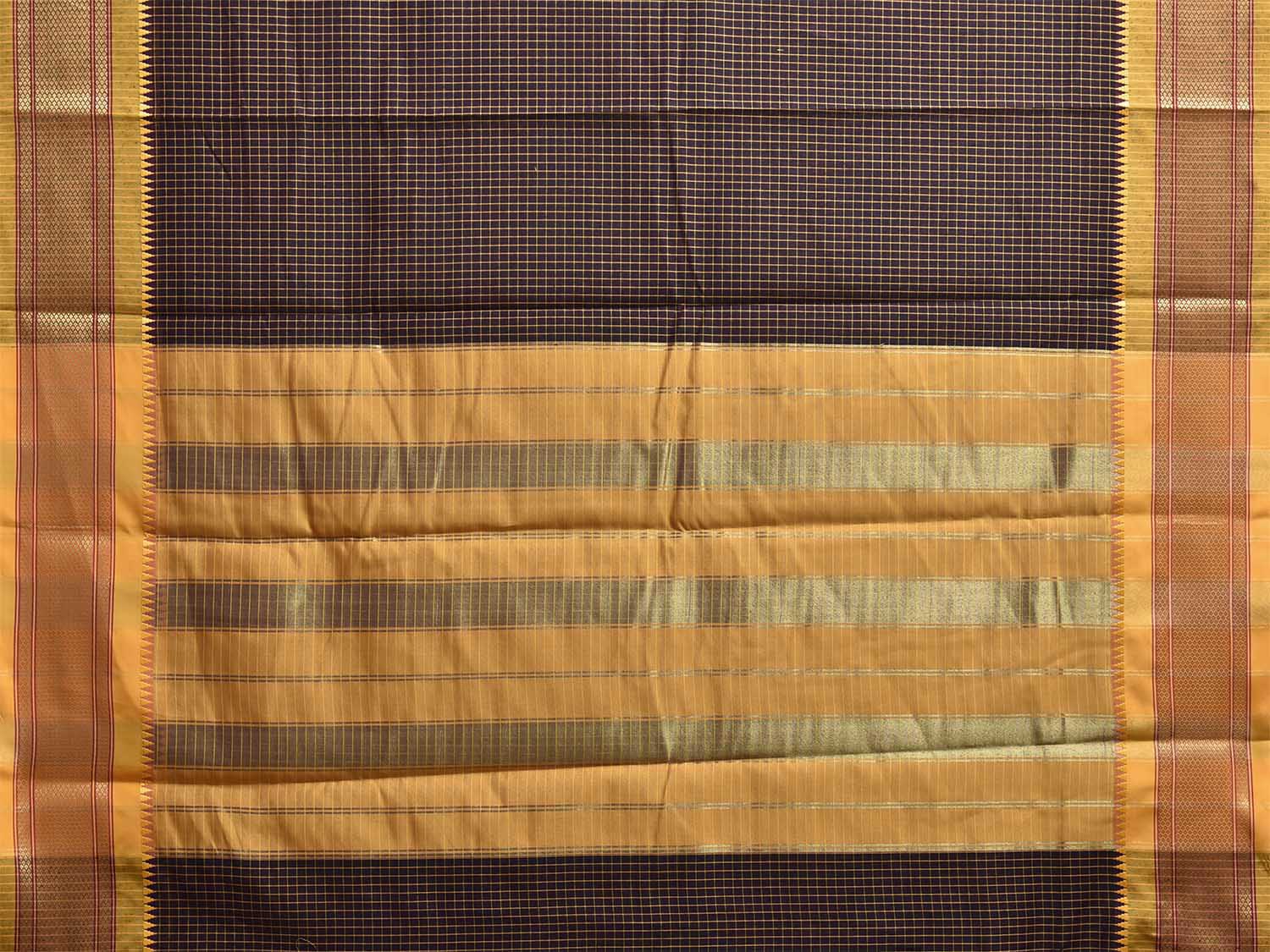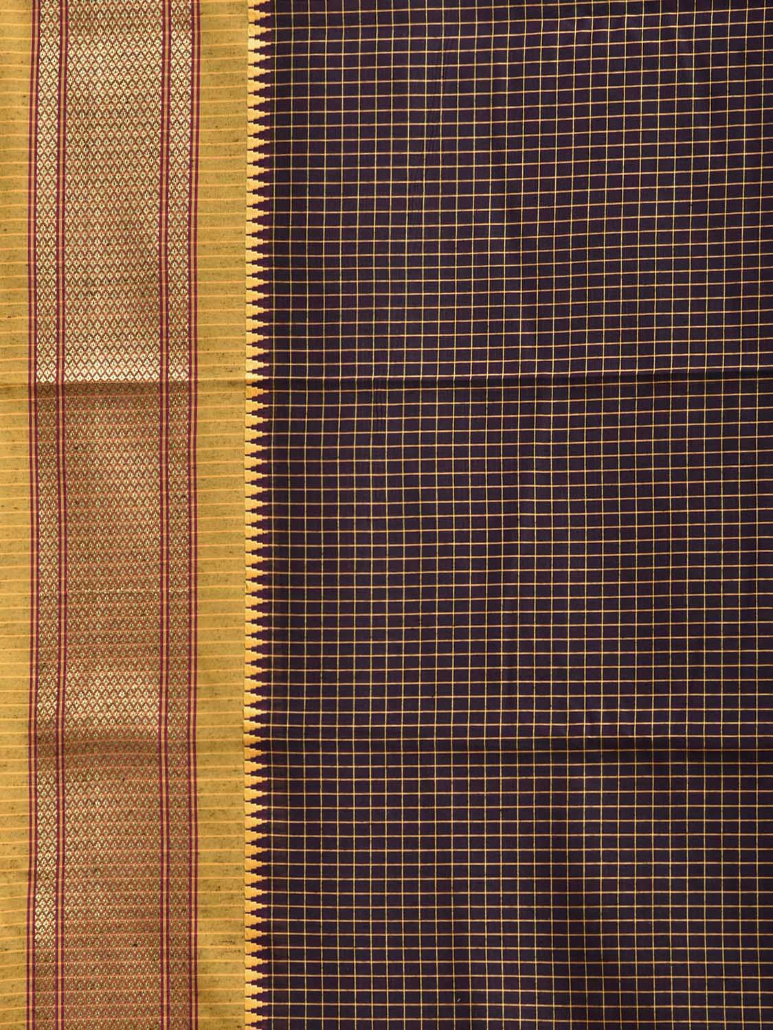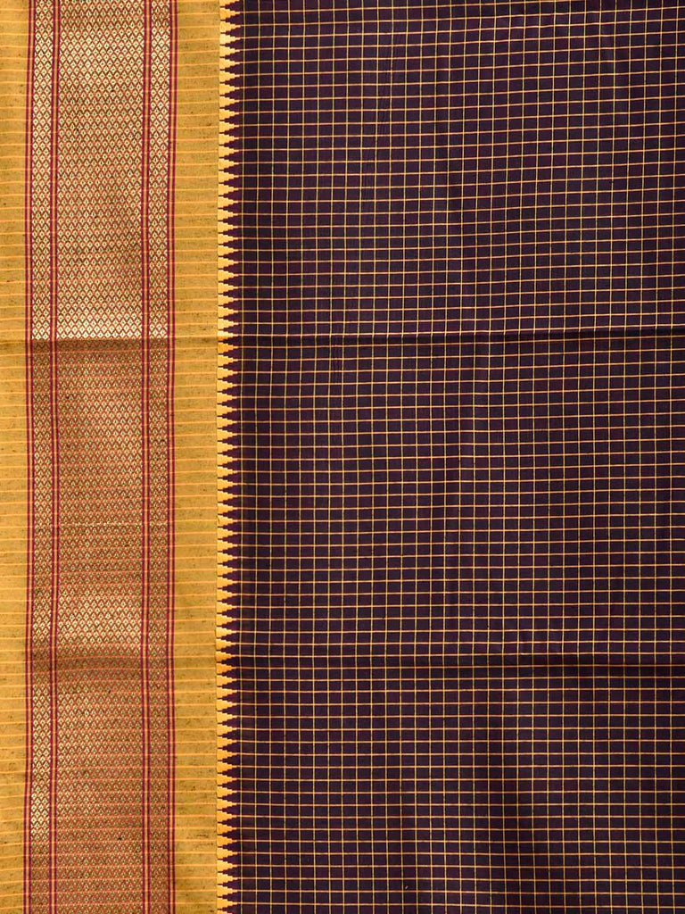 Dark Wine and Mustard Bamboo Cotton Saree with Checks and Paithani Border Design No Blouse. This is a blend of bamboo and cotton fibers, they have characteristics of both bamboo and cotton combined into one fabric. We Advise Gentle Handwash for Fabric Care. This saree has no blouse.