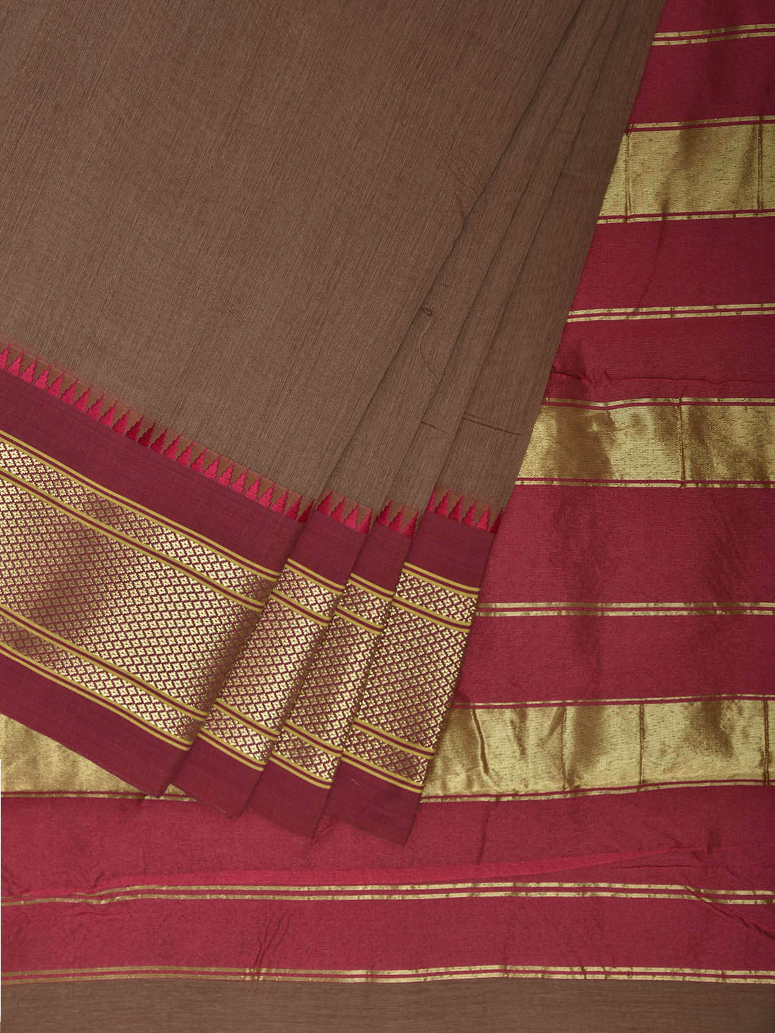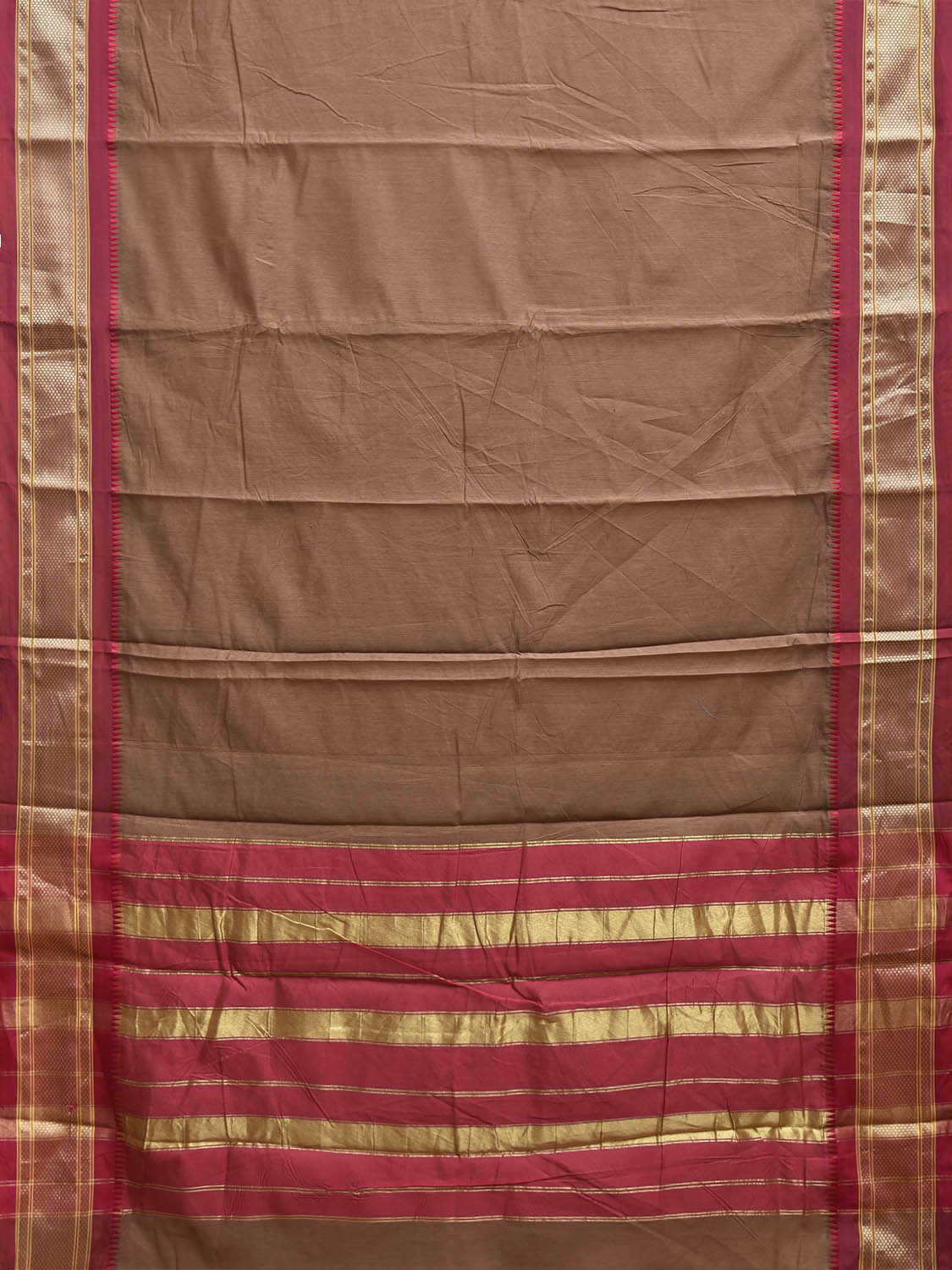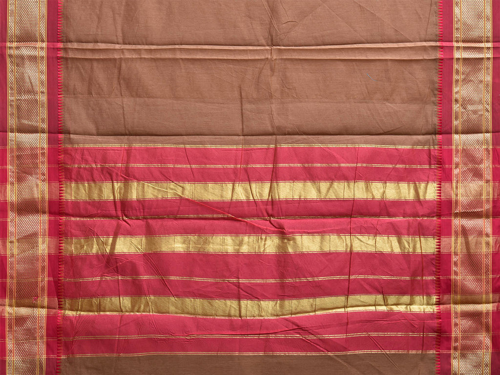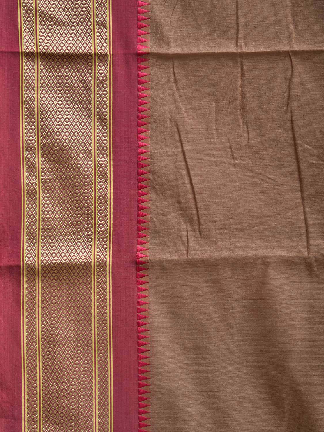 Fawn and Maroon Bamboo Cotton Plain Saree with Contrast Pallu Design No Blouse bc0932