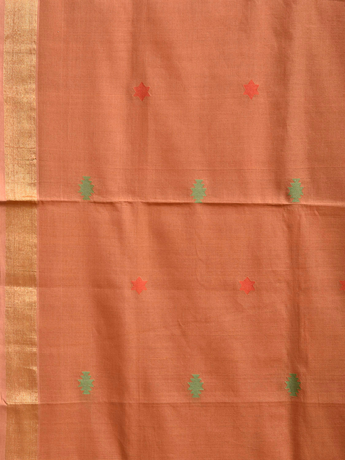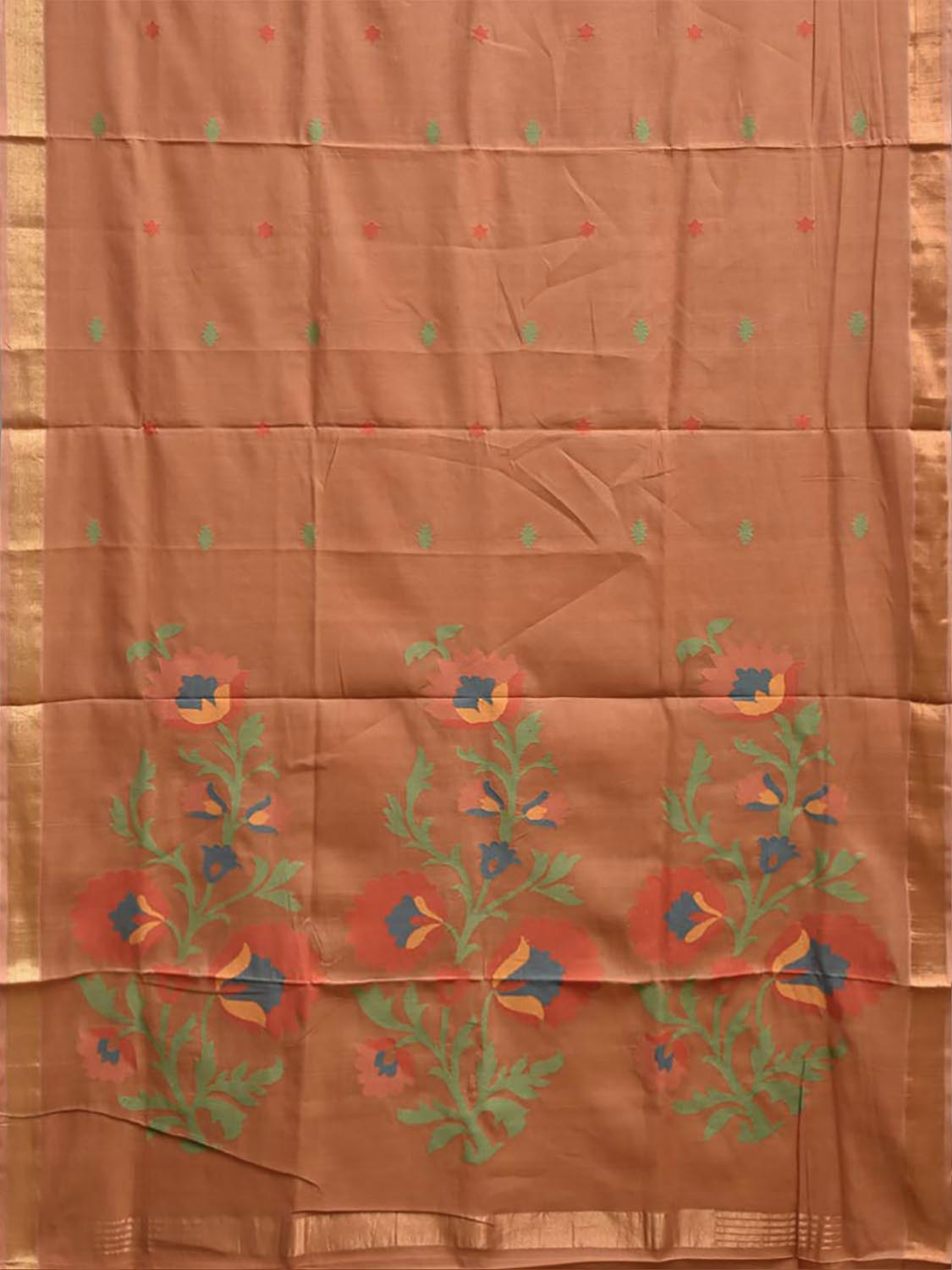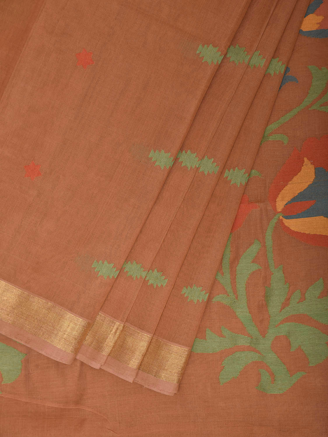 Fawn Khadi Cotton Handloom Saree with Floral Pallu Design. Khadi saree is primarily woven from cotton and may also include silk, or wool. It is a versatile fabric, cool in summer and warm in winter. For fabric care we advise dry clean. This saree has no blouse.