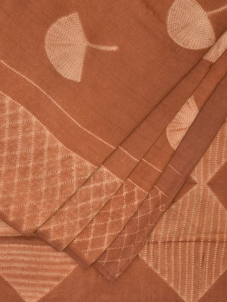 Fawn Shibori Cotton Silk Saree with Floral Buta and Grill Pallu Design No Blouse. Shibori is Japanese a Technique of tie and dye, and resist some parts by clamping or stitching the fabric. The result produced are unique geometric patterns & any other eloborate design. For fabric care we advise gentle handwash separately.