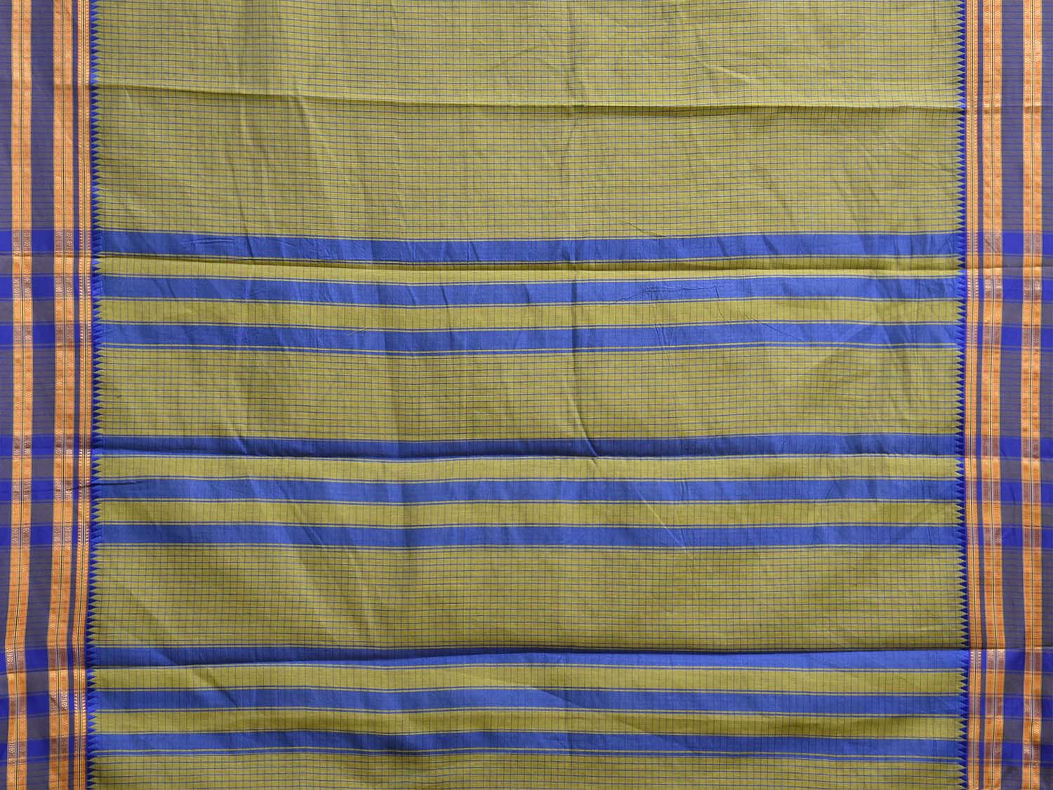 Green and Blue Bamboo Cotton Saree with Checks Design No Blouse. This is a blend of bamboo and cotton fibers, they have characteristics of both bamboo and cotton combined into one fabric. We Advise Gentle Handwash for Fabric Care. This saree has no blouse.
