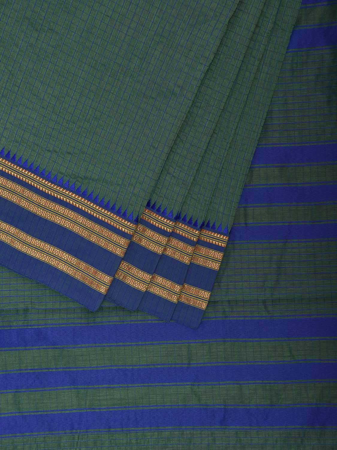 Green and Blue Bamboo Cotton Saree with Checks Design No Blouse. This is a blend of bamboo and cotton fibers, they have characteristics of both bamboo and cotton combined into one fabric. We Advise Gentle Handwash for Fabric Care. This saree has no blouse.