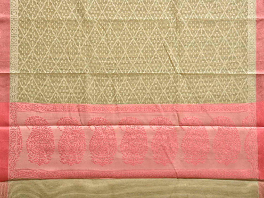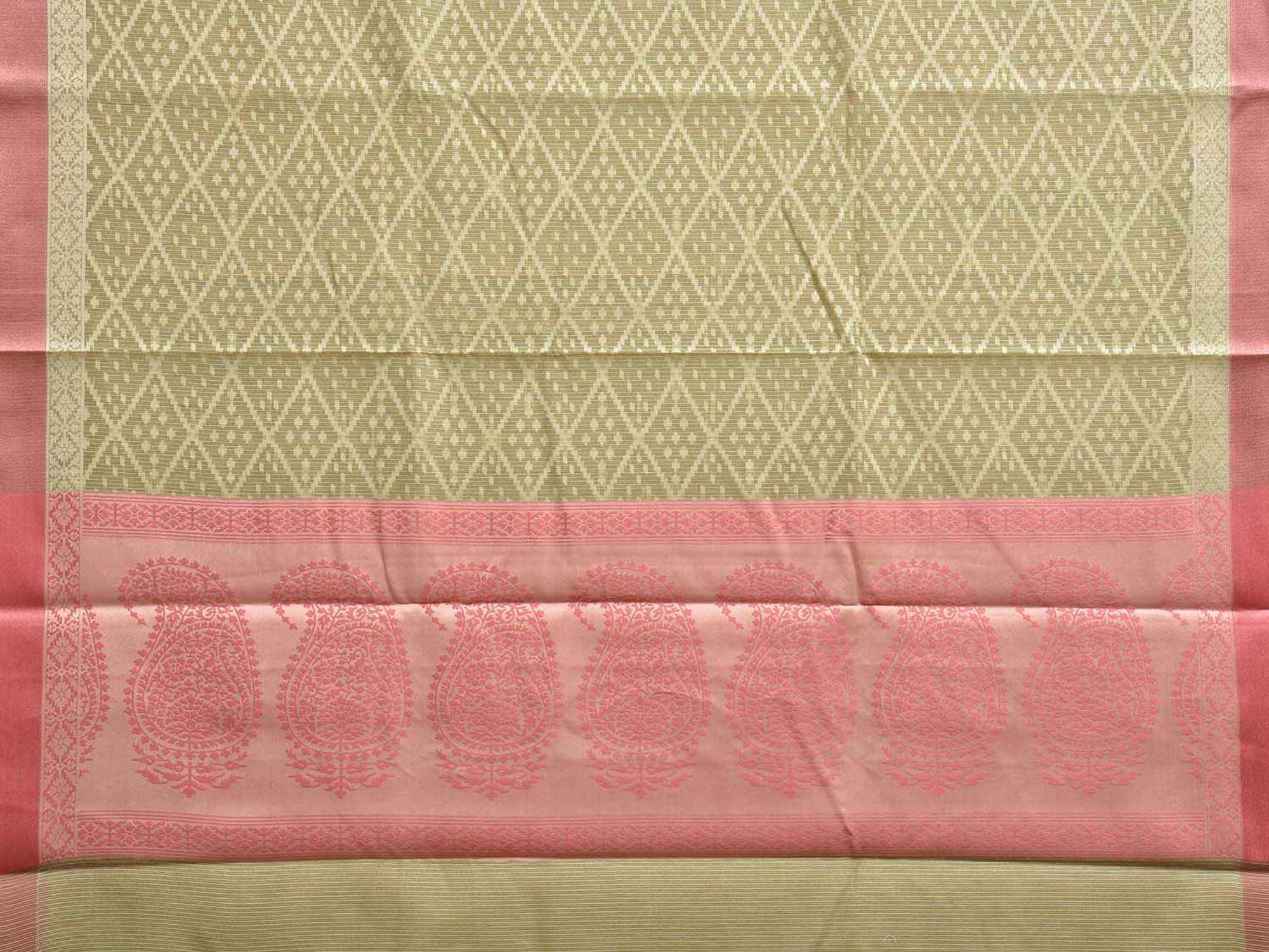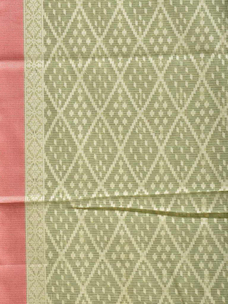 Green and Peach Dhakai Jamdani Cotton Viscose Saree with Grill and Pasley Pallu Design. These are some of the traditional Dhakai Jamdani designs, these sarees have geometric designs and sometimes floral or combination of both. We advice gentle handwash separately for fabric care.