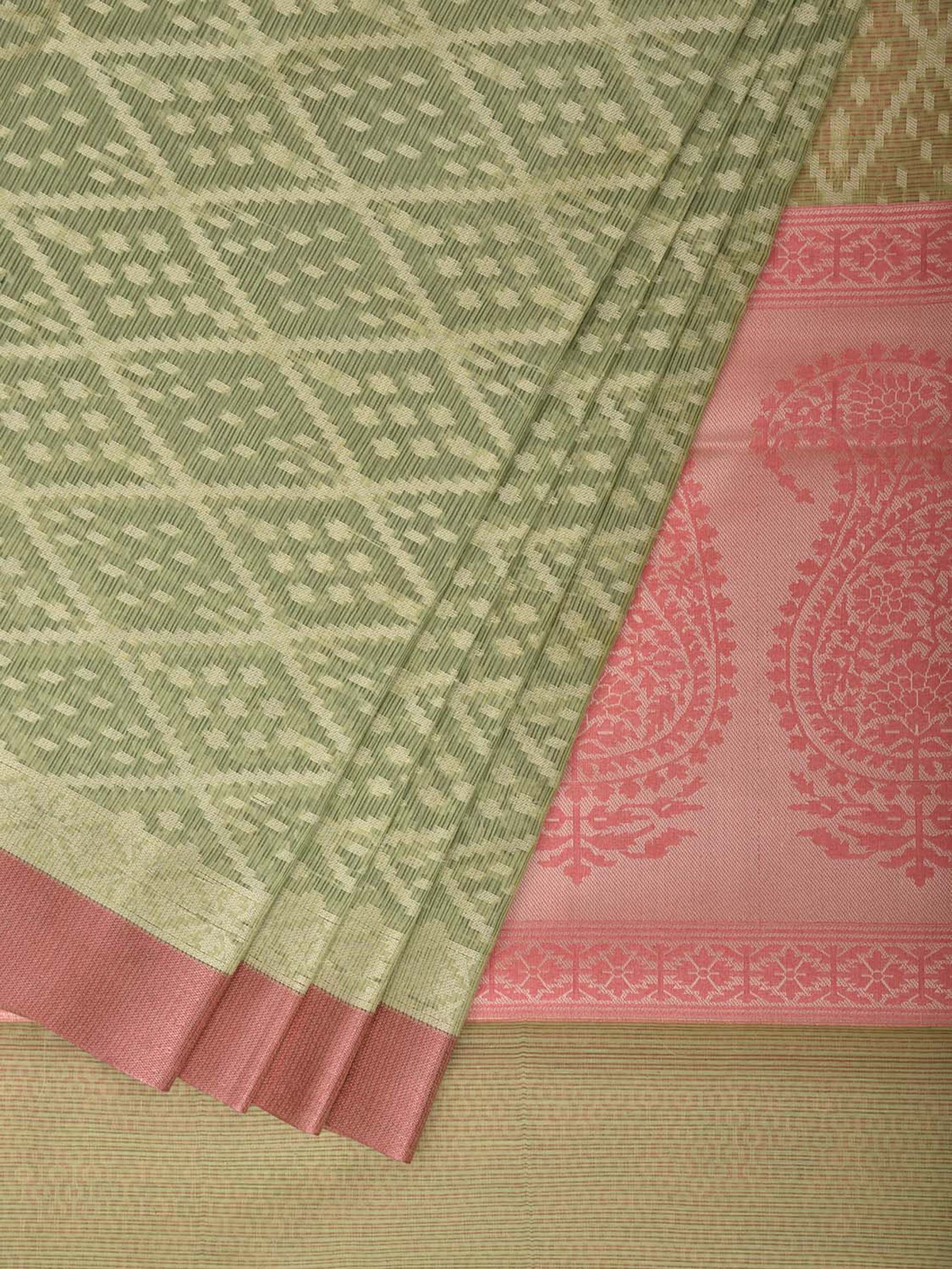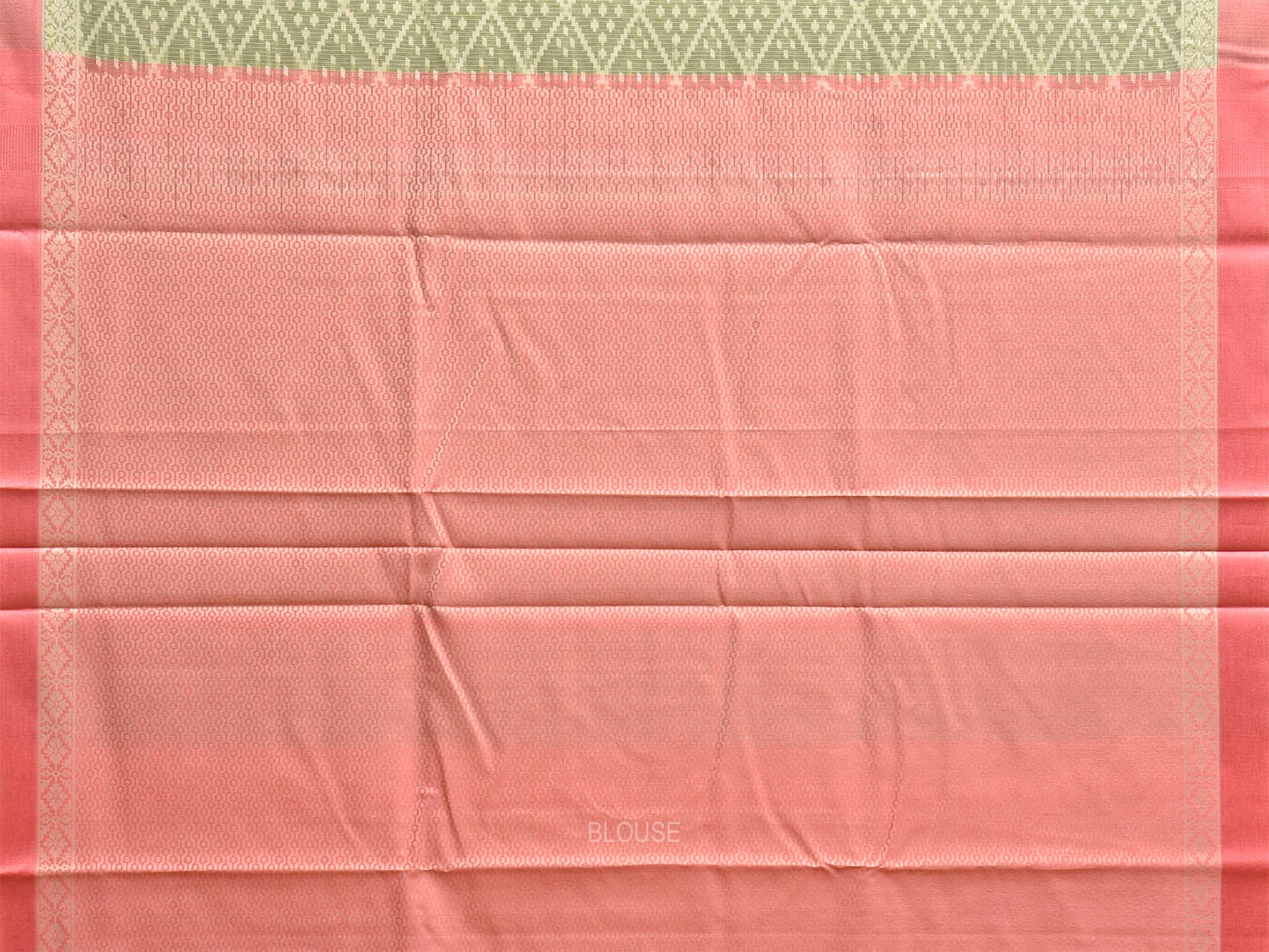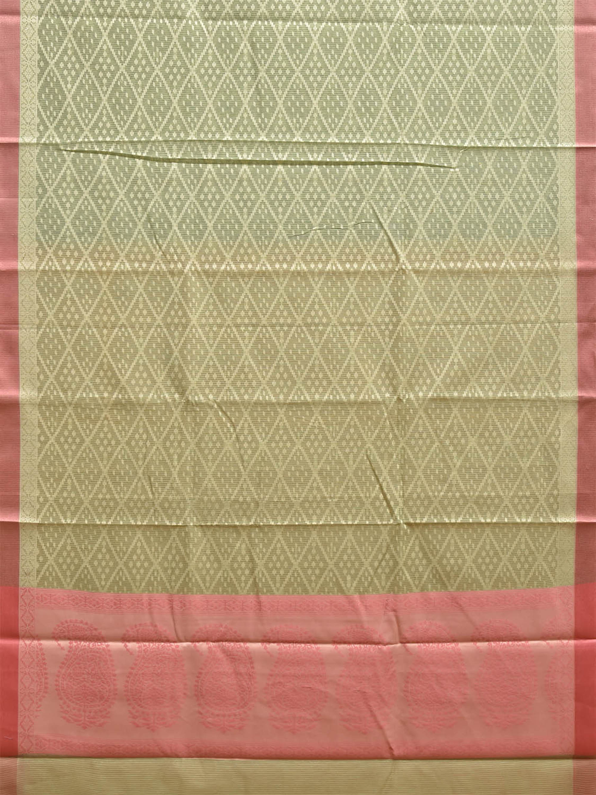 Green and Peach Dhakai Jamdani Cotton Viscose Saree with Grill and Pasley Pallu Design. These are some of the traditional Dhakai Jamdani designs, these sarees have geometric designs and sometimes floral or combination of both. We advice gentle handwash separately for fabric care.