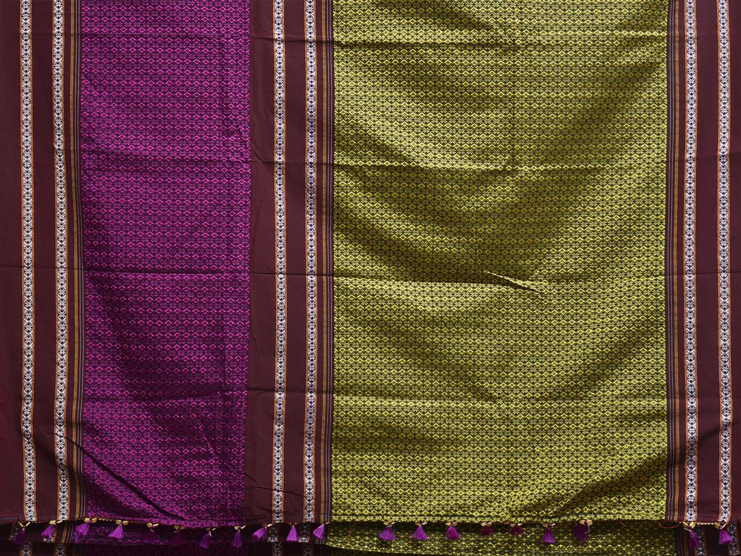 Green and Purple ilkal Jacquard Viscose Saree with Big Border Design No Blouse. For fabric care we advise gentle handwash separately. This saree has no blouse.