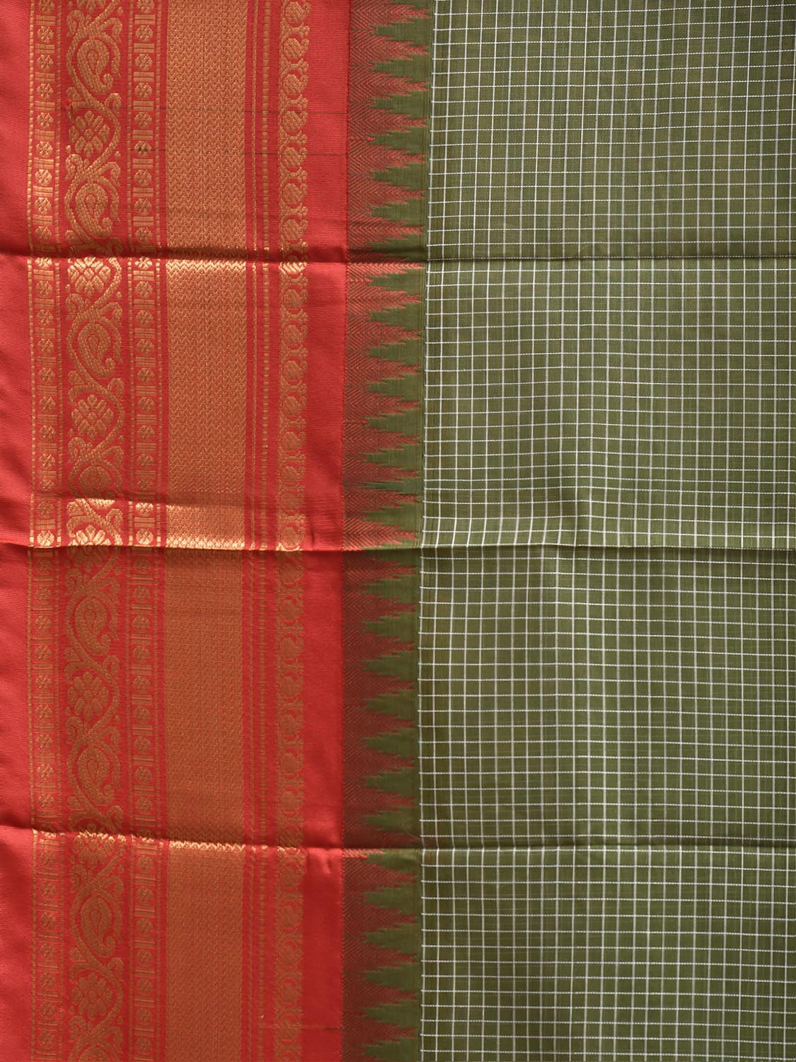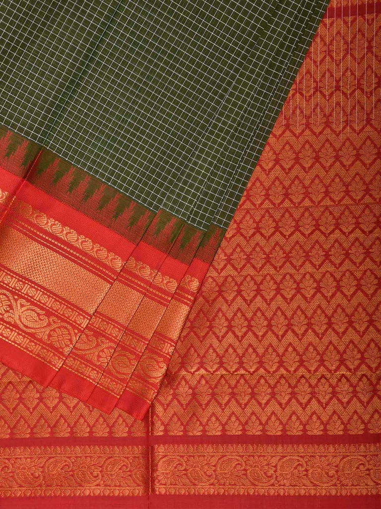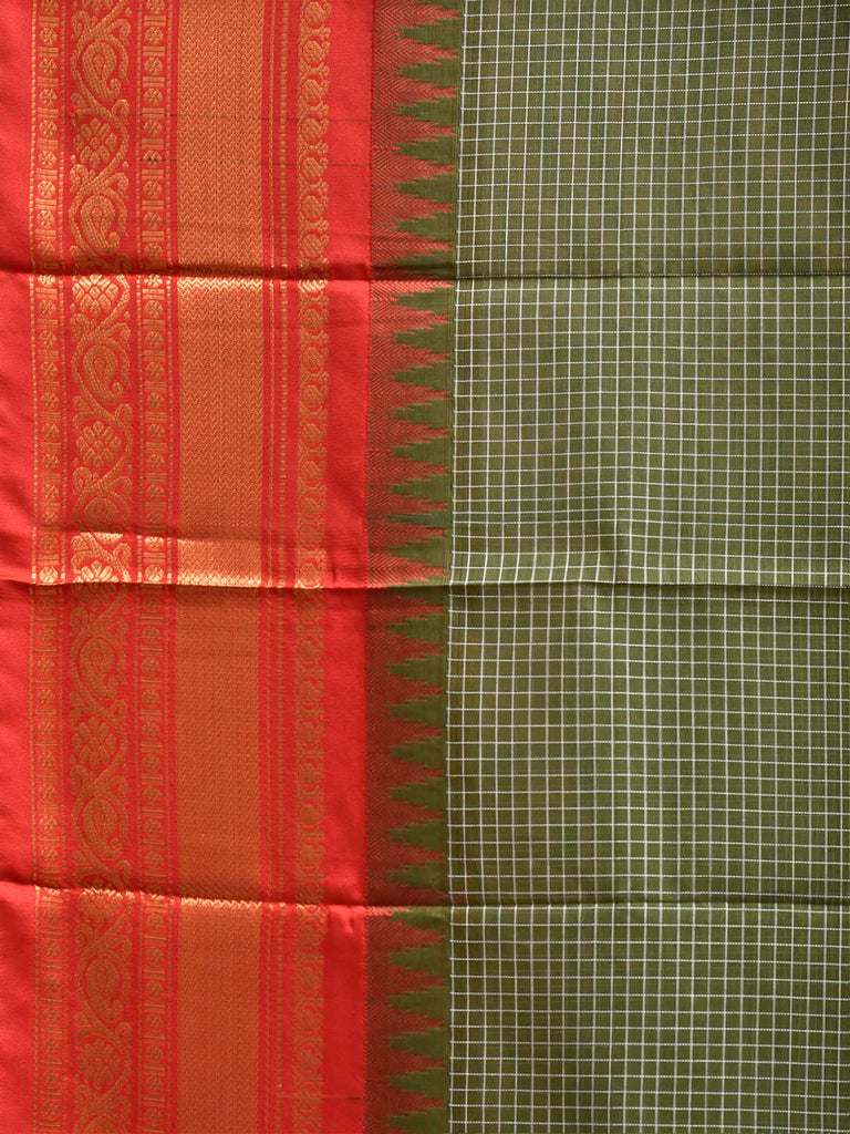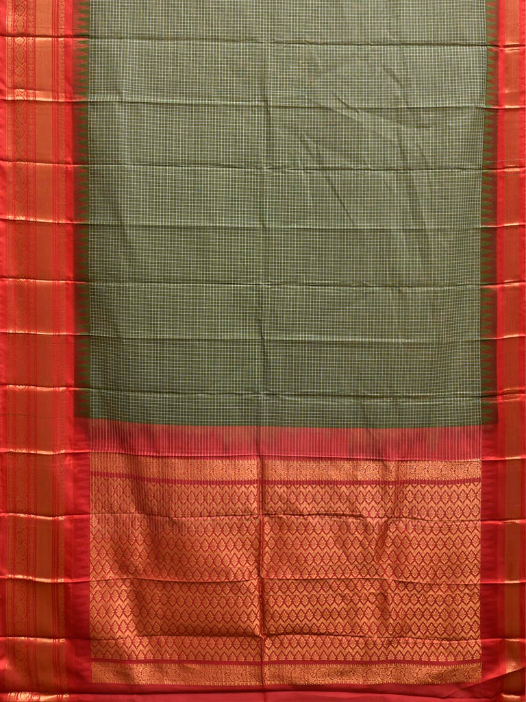 Green and Red Gadwal Body Cotton Viscose Pallu Saree with Checks and Border-Pallu Design No Blouse. Gadwal Sarees are known for their traditional design of border and pallu made of silk and body being either cotton or silk. They are known as Sico sarees for border and pallu being silk and body being cotton. We advice dry clean for fabric care. This saree has no blouse.