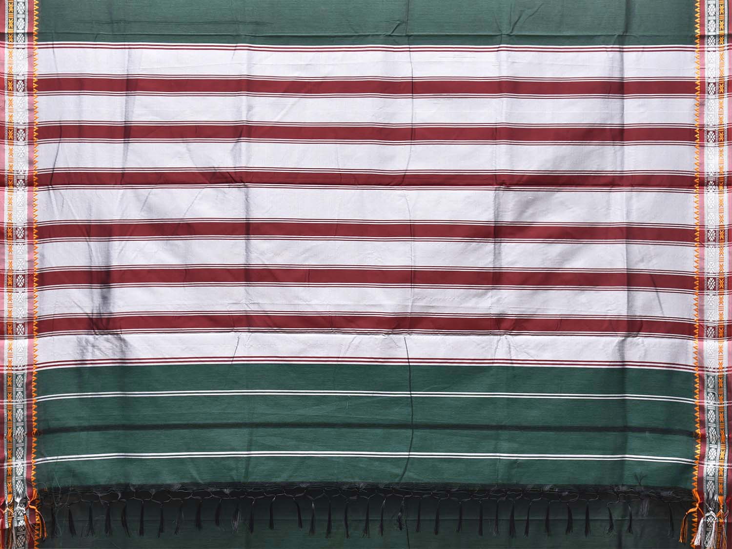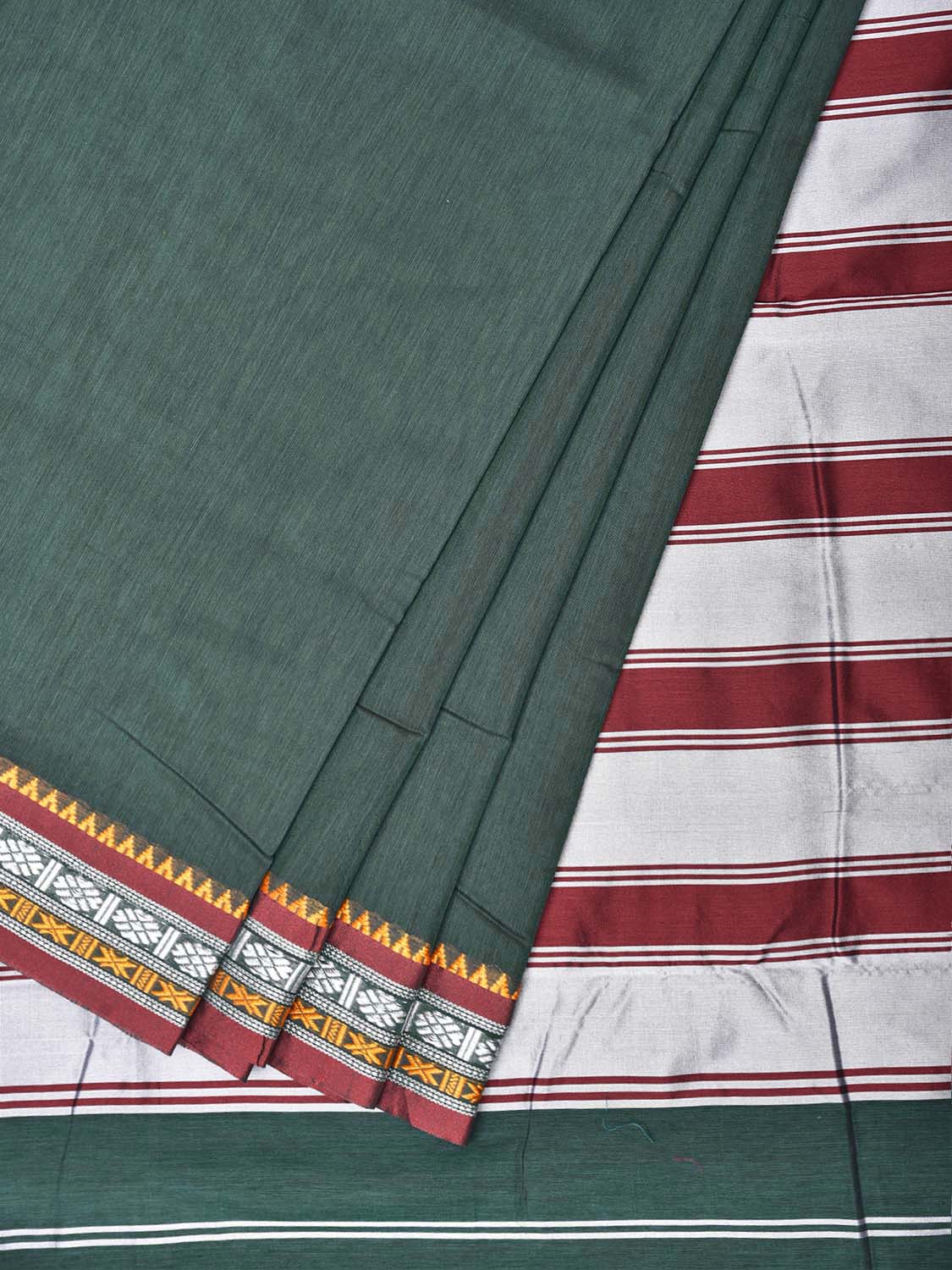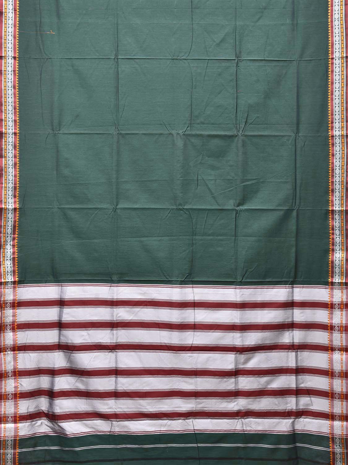Green and Red ilkal Cotton Viscose Plain Saree with Strips Pallu Design No Blouse. For fabric care we advise gentle handwash separately. This saree has no blouse.