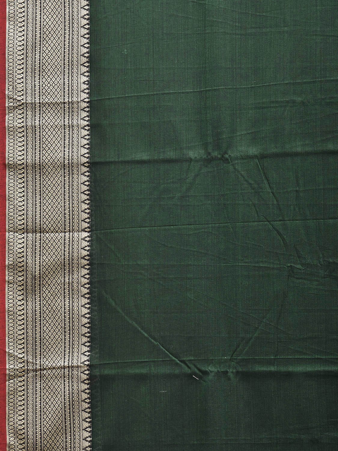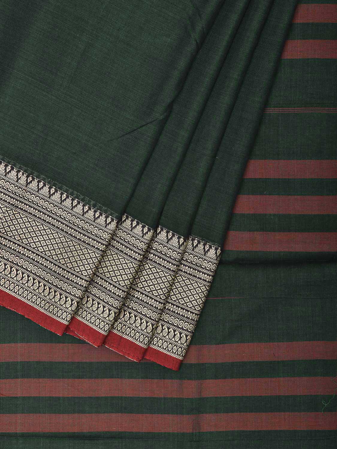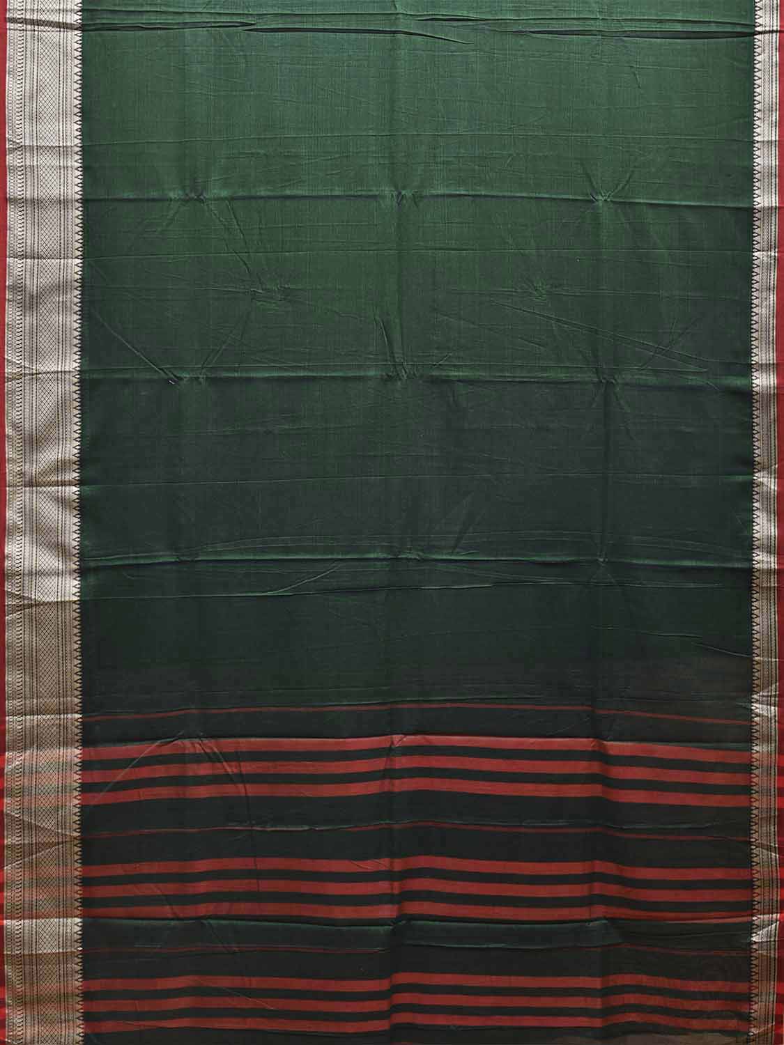 Green and Red Kanchipuram Cotton Plain Saree with Strips Pallu and Border Design No Blouse. Traditional South Indian Attire Saree for any Special Occasions. For fabric care we advice dry clean. This saree has no blouse.